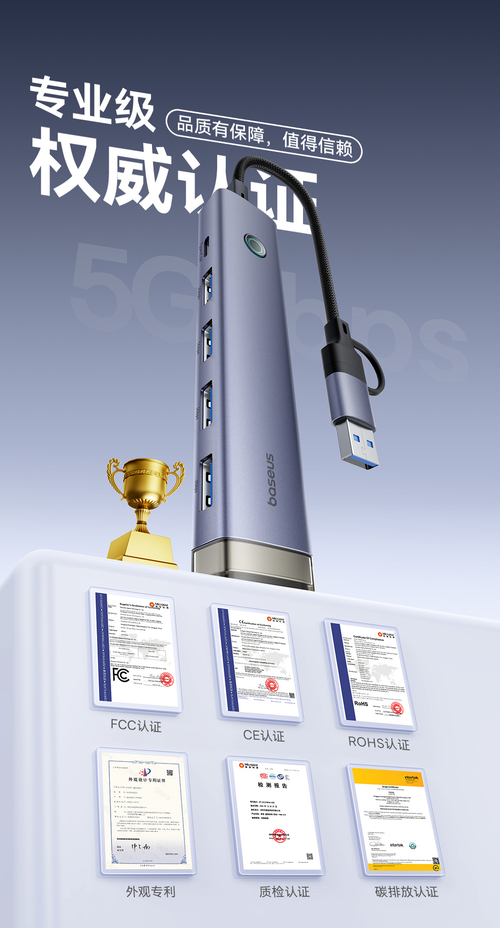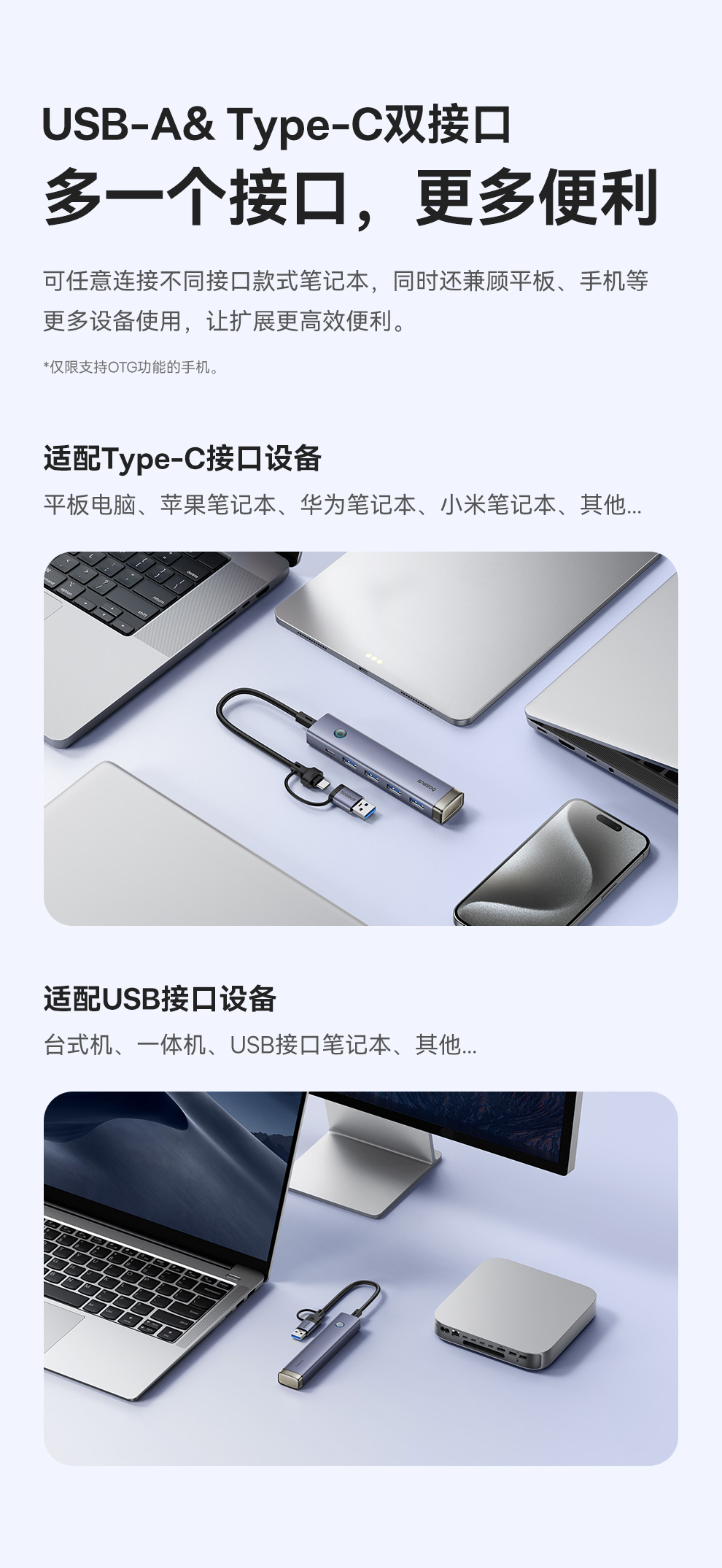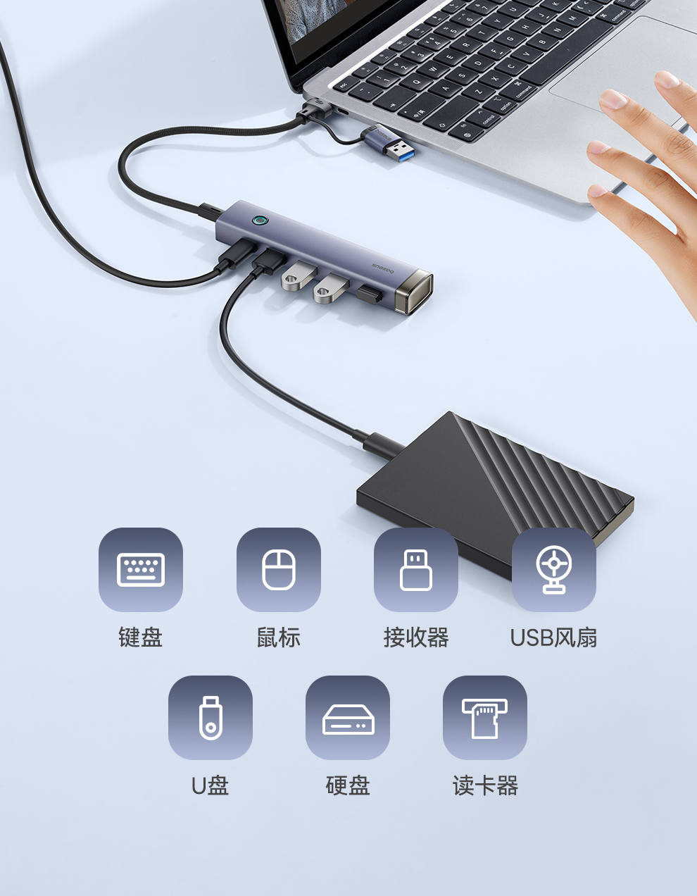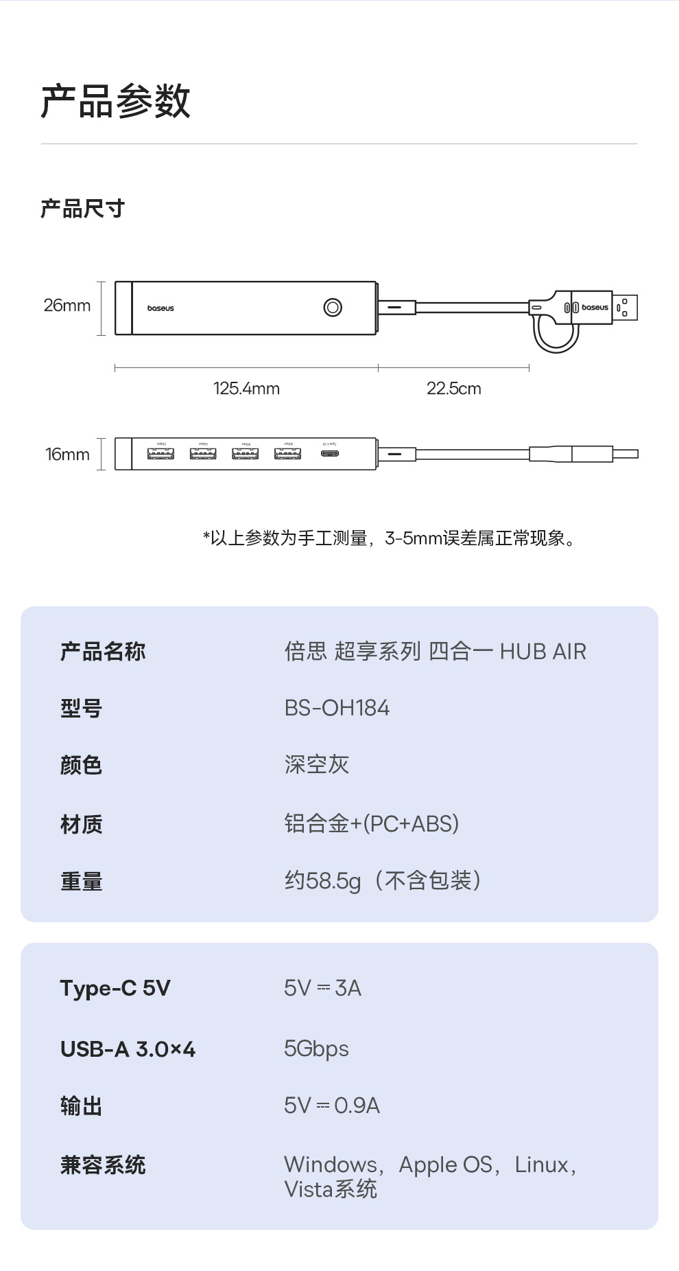 【69元3件】倍思 超享系列 四合一 HUB Lite USBA to USB3.0*4