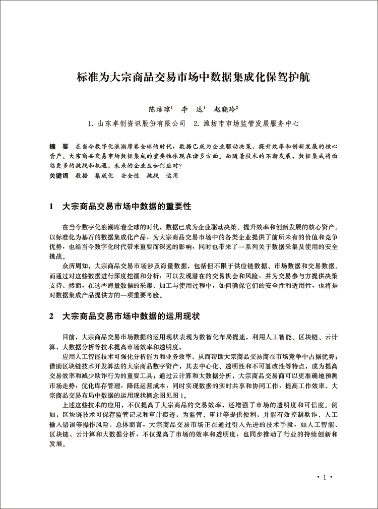 标准为大宗商品交易市场中数据集成化保驾护航 陈洁琼 李达 赵晓玲