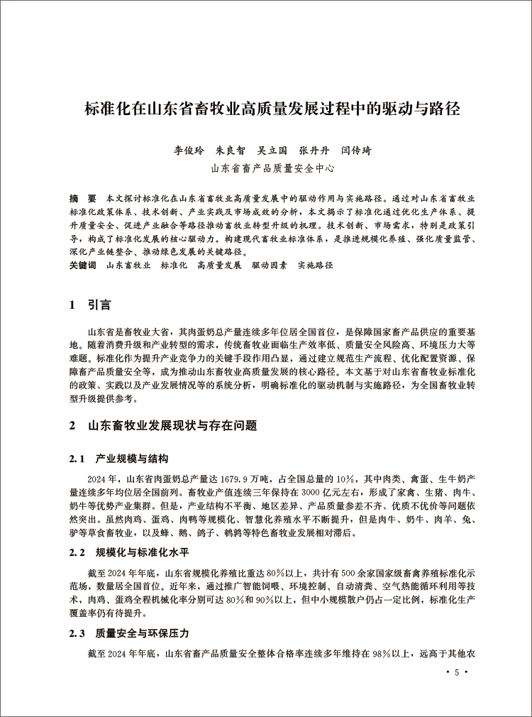 标准化在山东省畜牧业高质量发展过程中的驱动与路径 李俊玲 朱良智 吴立国 张丹丹 闫传琦