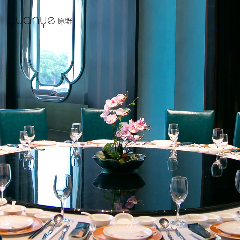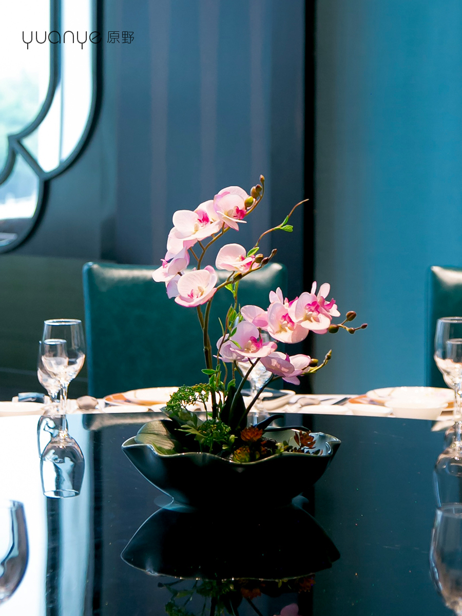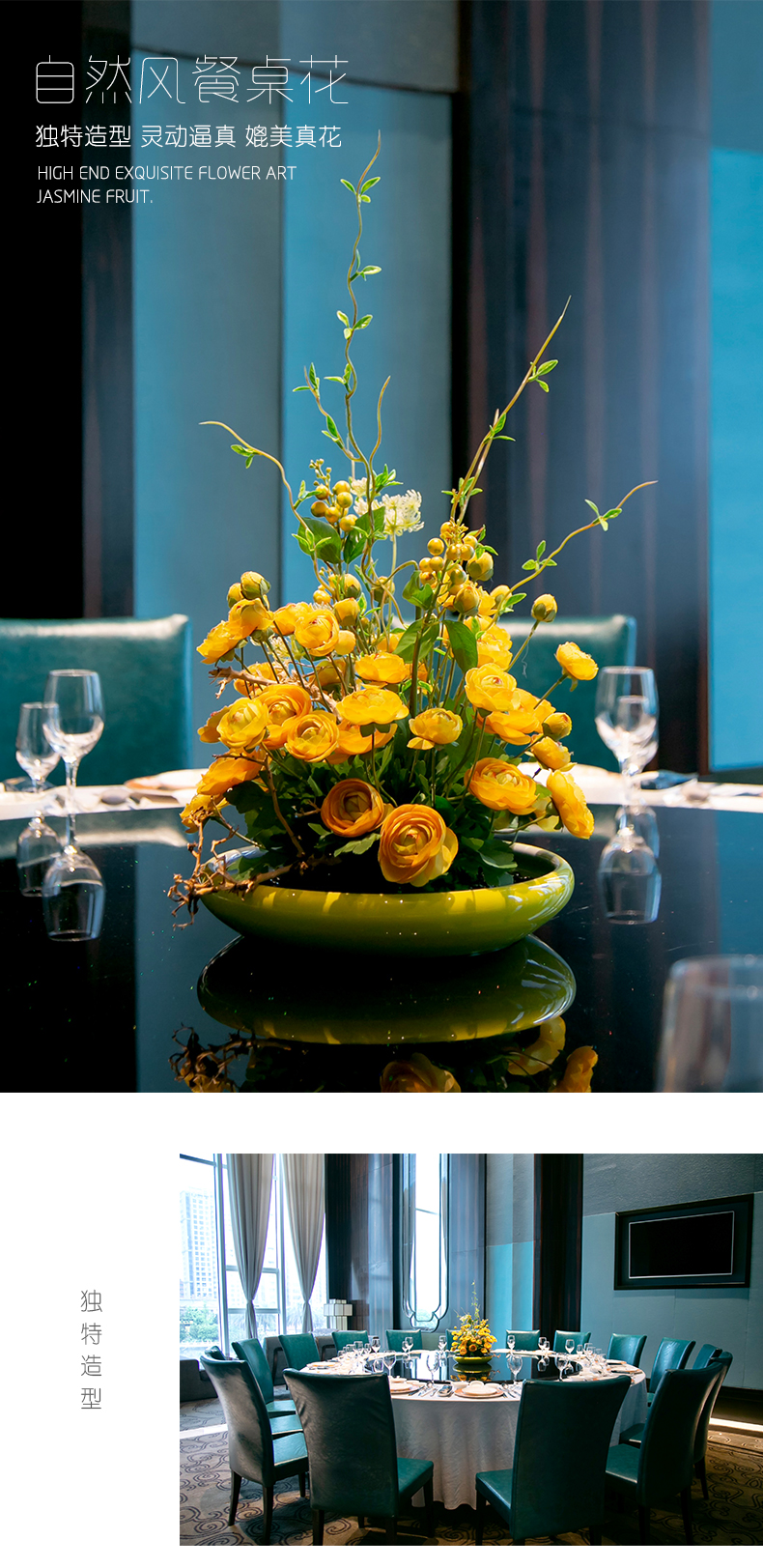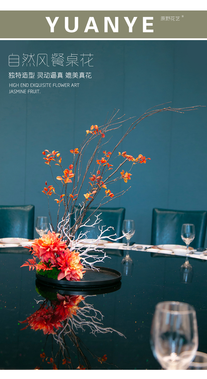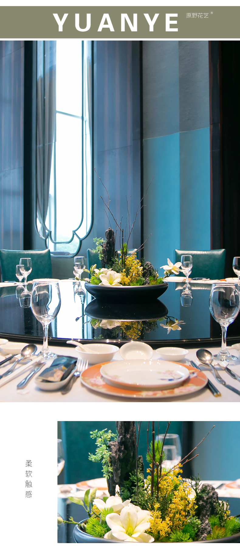 酒店餐桌花摆花圆桌转盘中间高端仿真花摆件餐厅包厢桌面装饰花艺