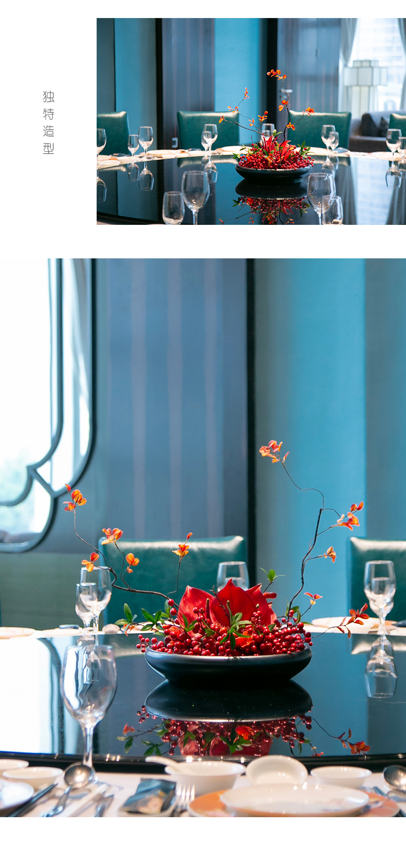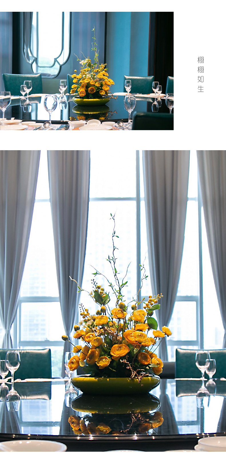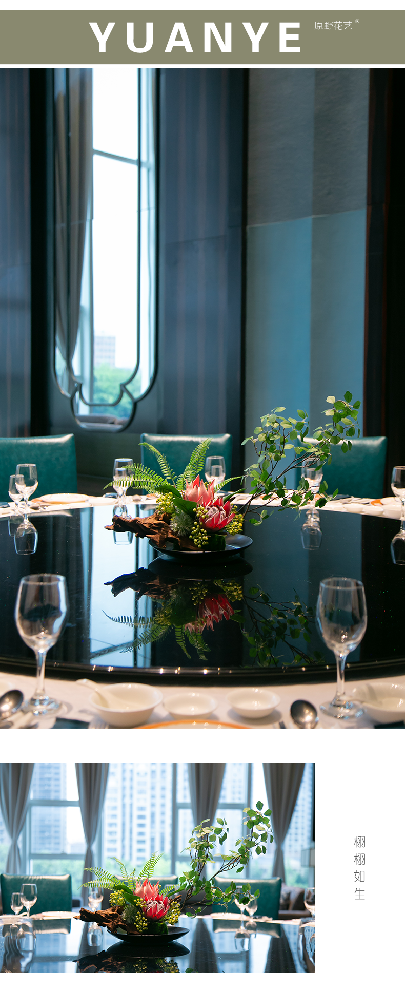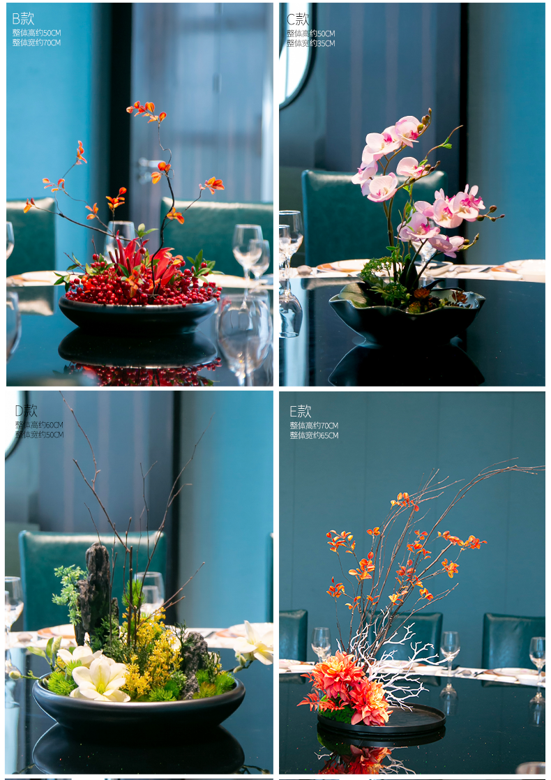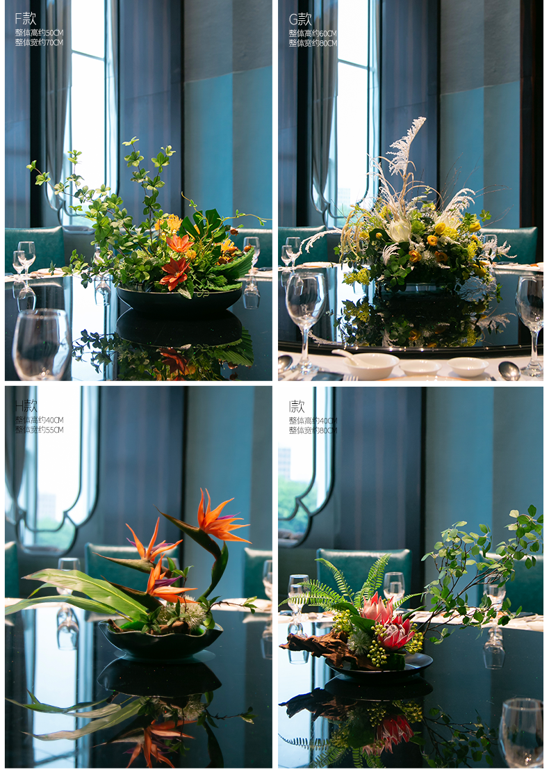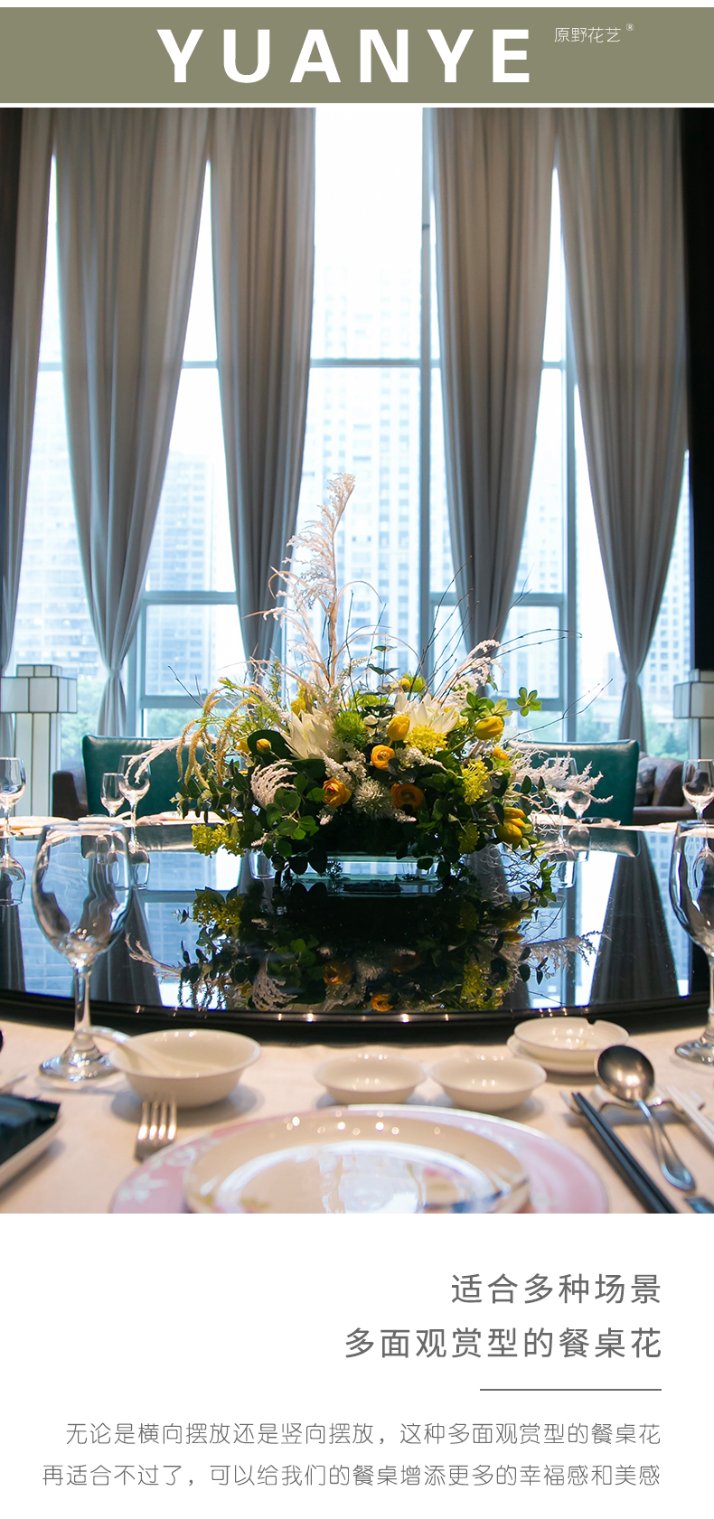 酒店餐桌花摆花圆桌转盘中间高端仿真花摆件餐厅包厢桌面装饰花艺