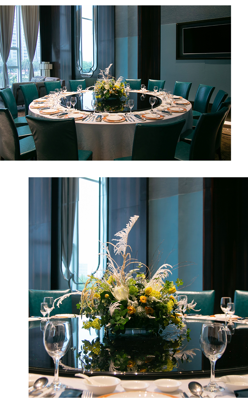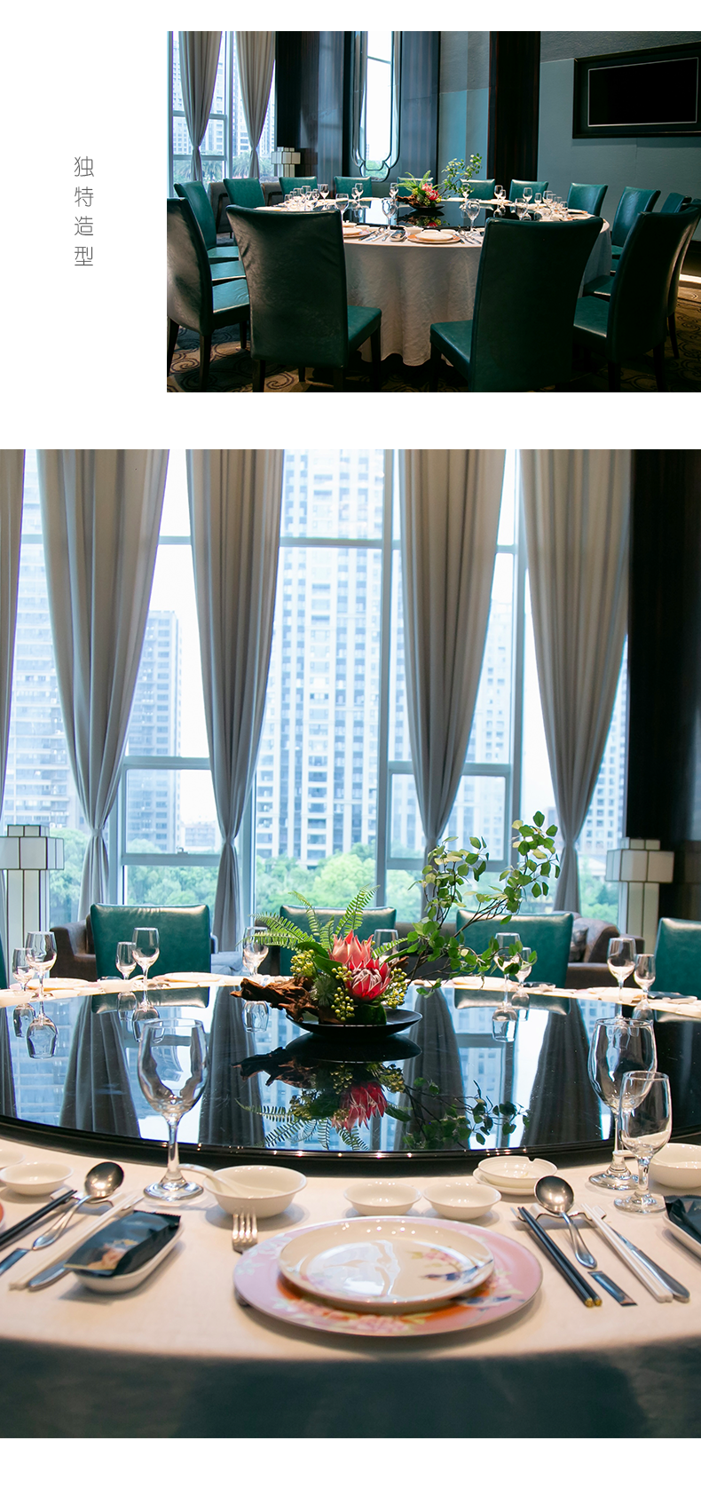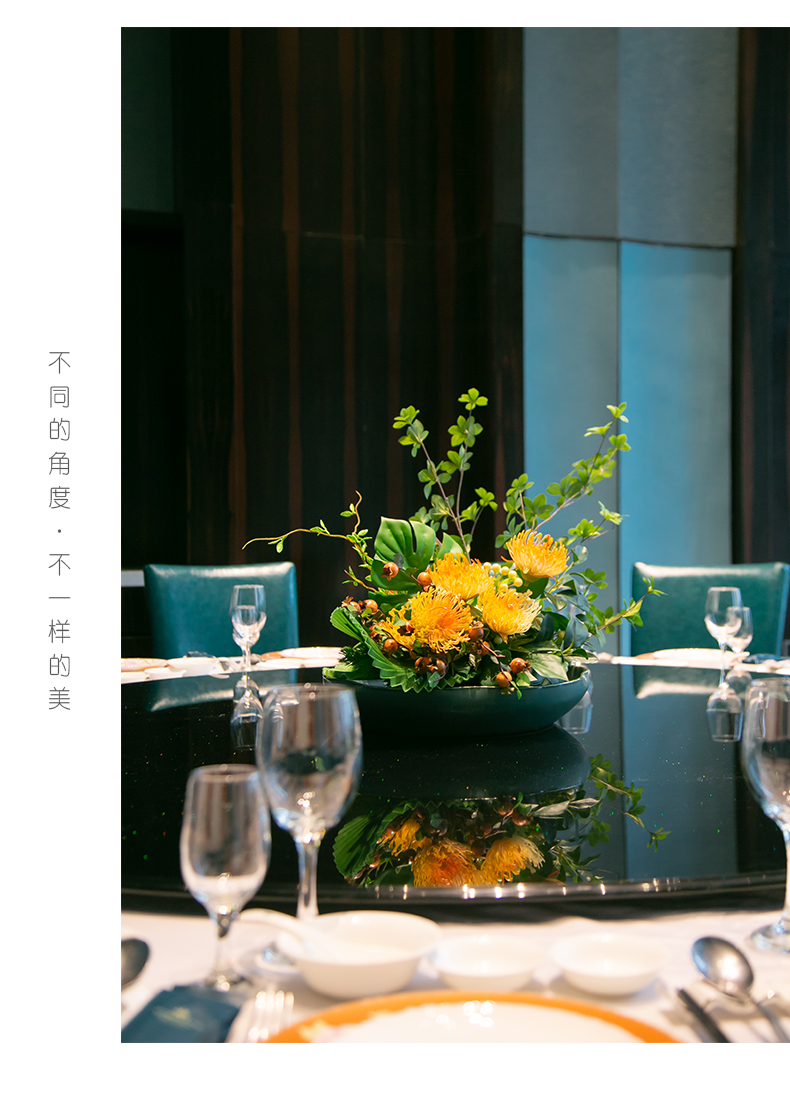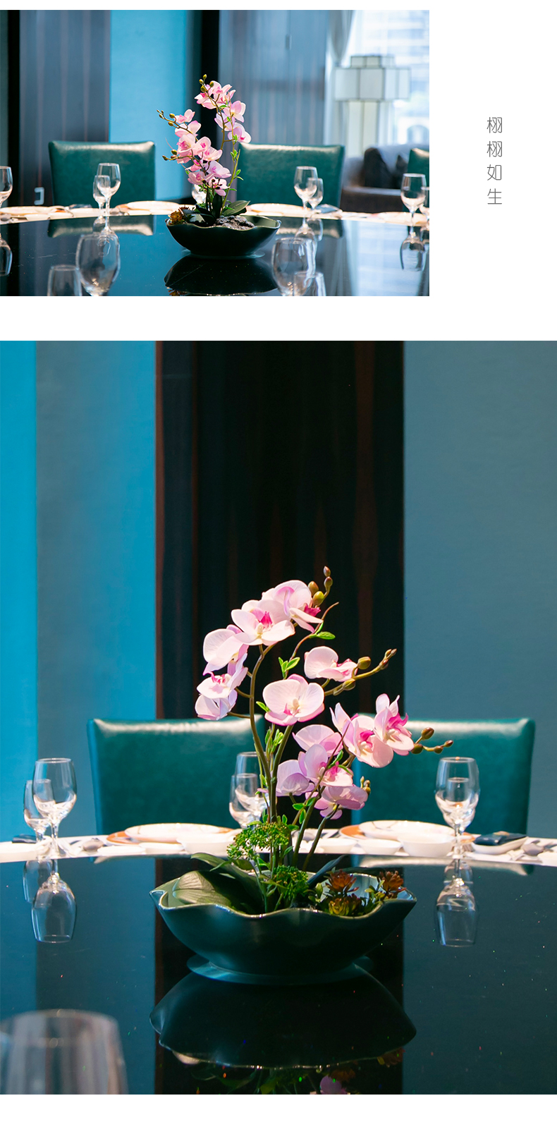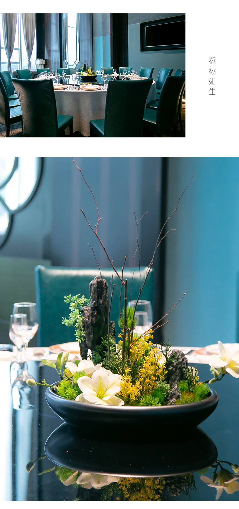 酒店餐桌花摆花圆桌转盘中间高端仿真花摆件餐厅包厢桌面装饰花艺