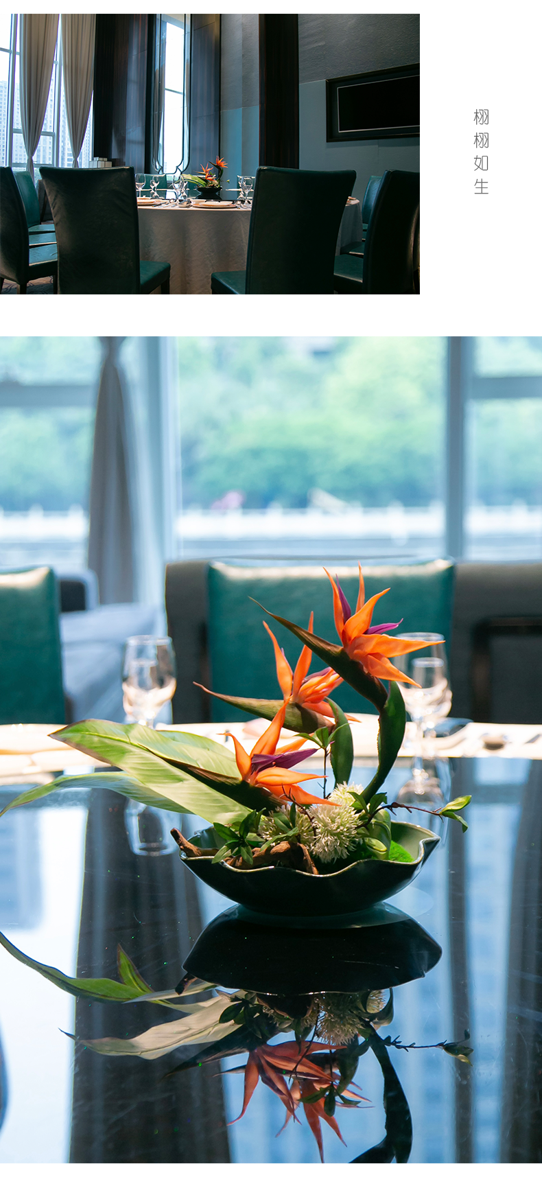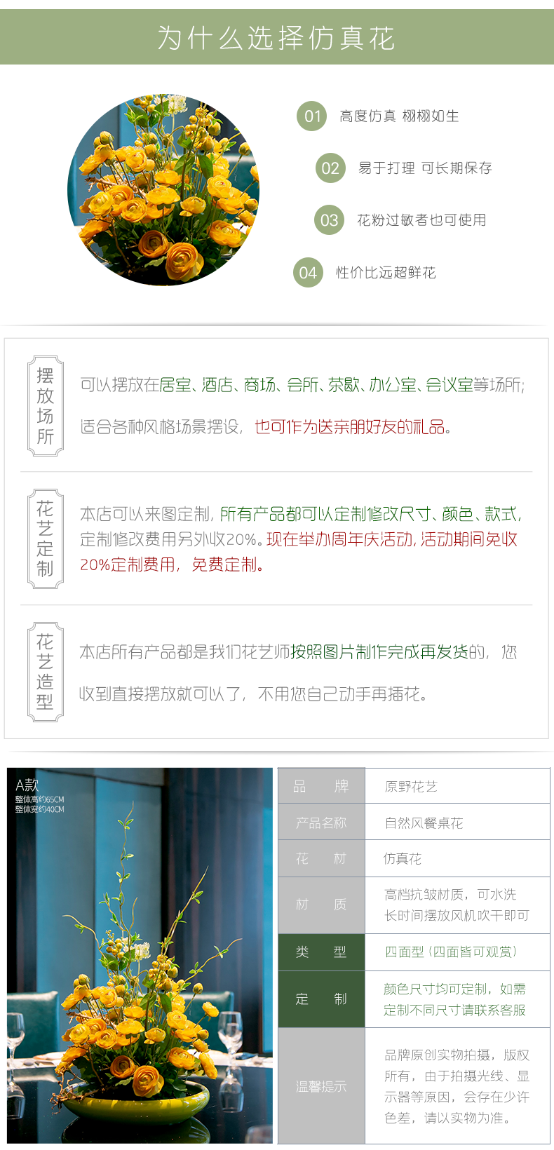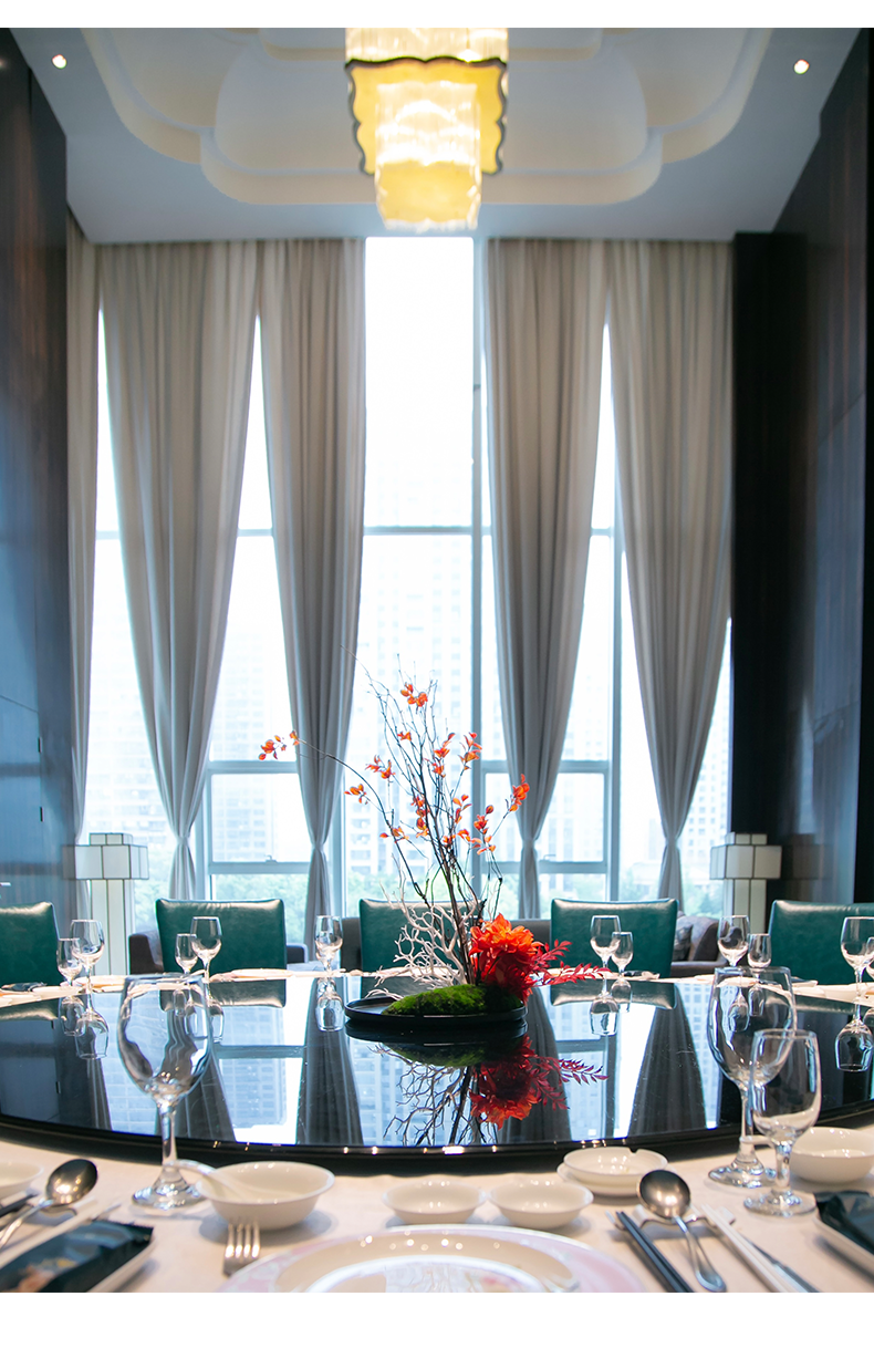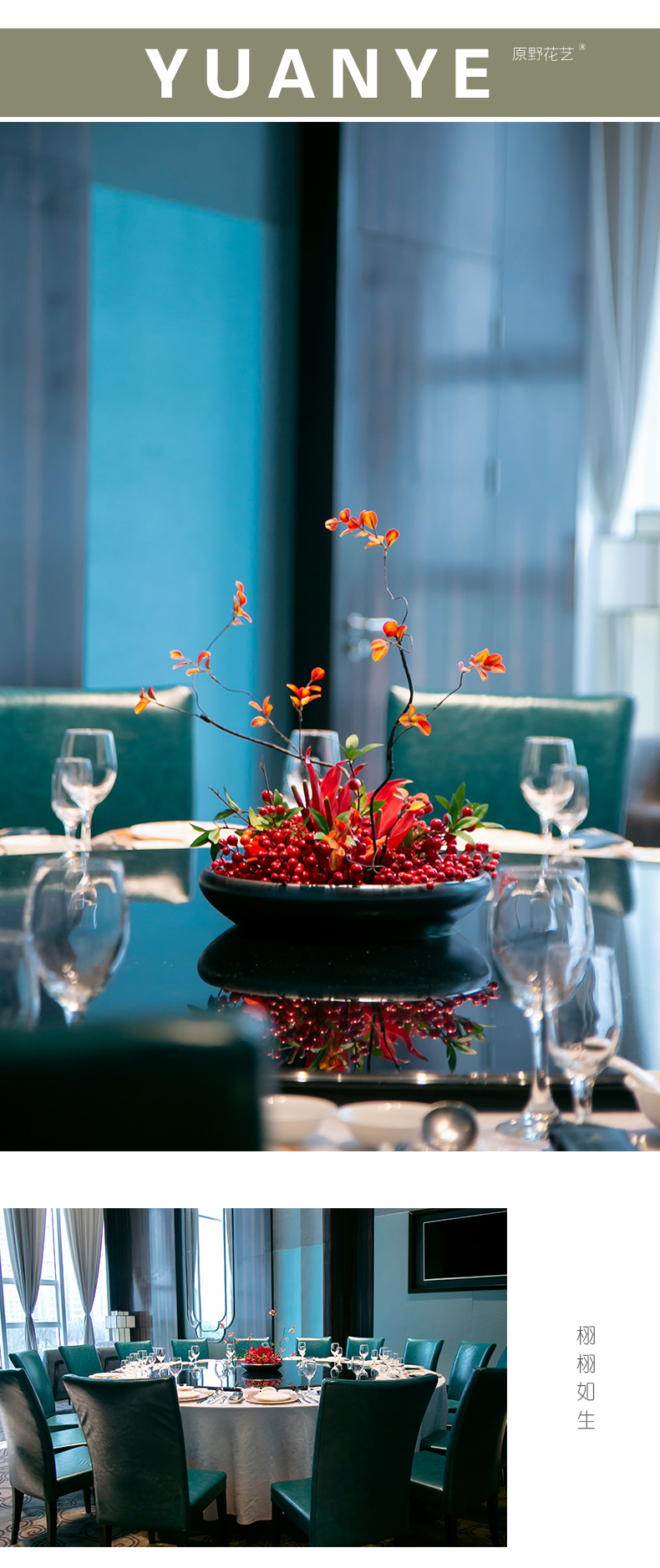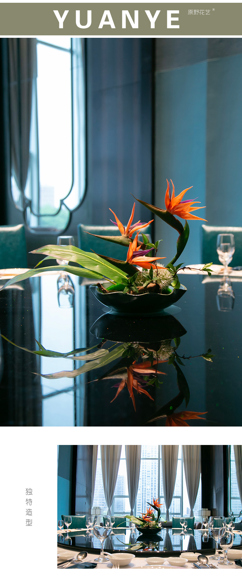 酒店餐桌花摆花圆桌转盘中间高端仿真花摆件餐厅包厢桌面装饰花艺