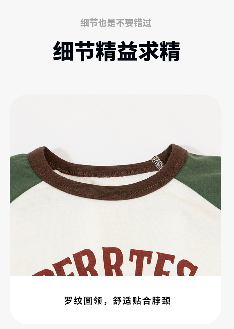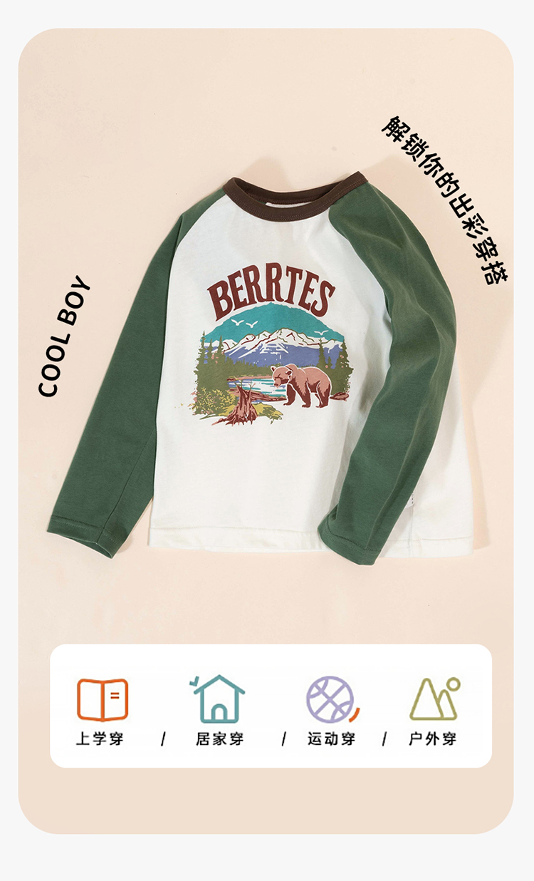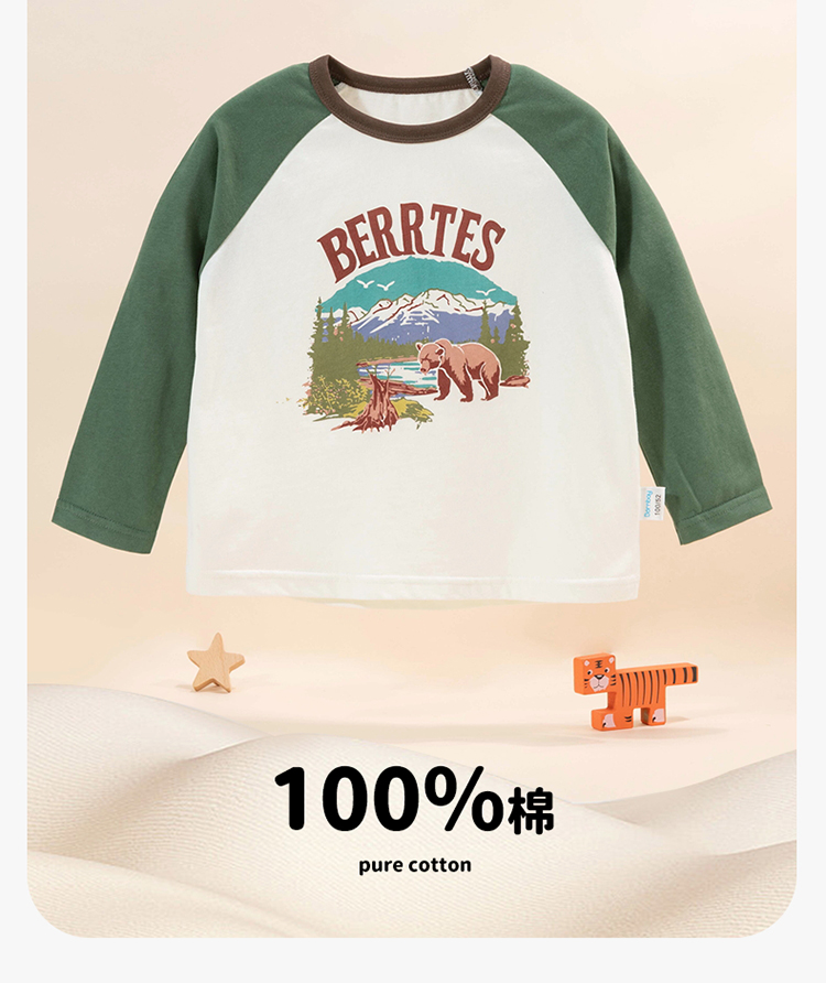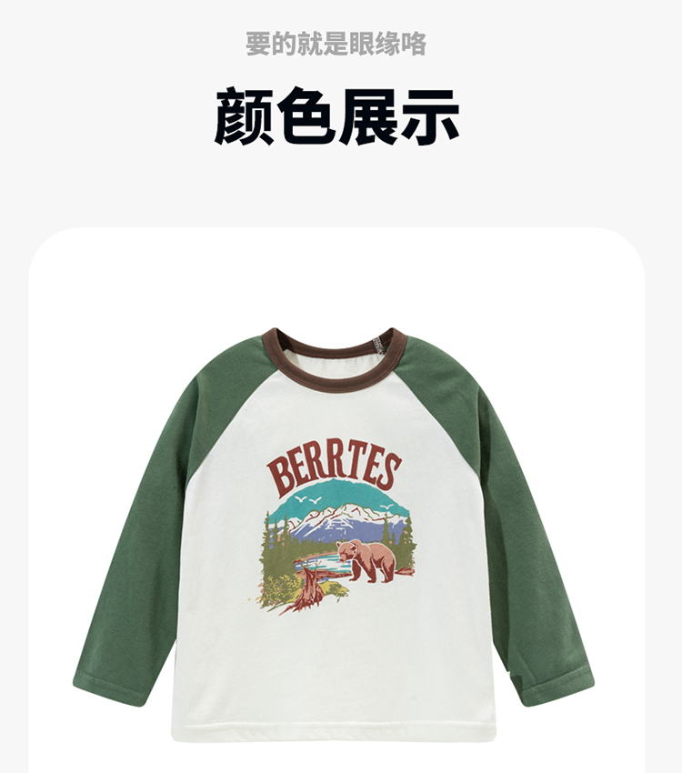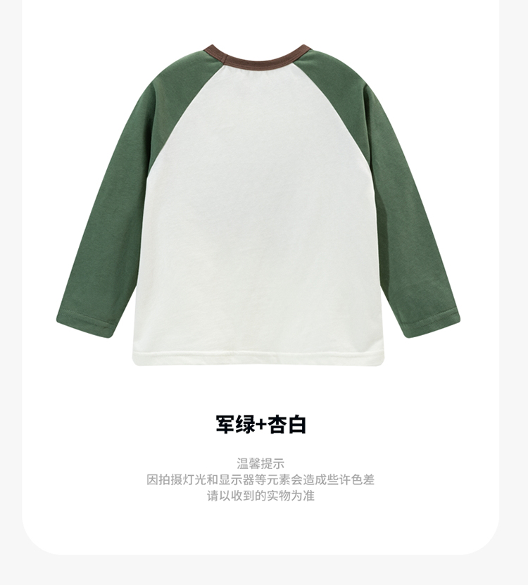 贝贝怡童装男童全棉长袖T恤2024秋新品撞色插肩袖打底衫柔软舒适ZB3DS009