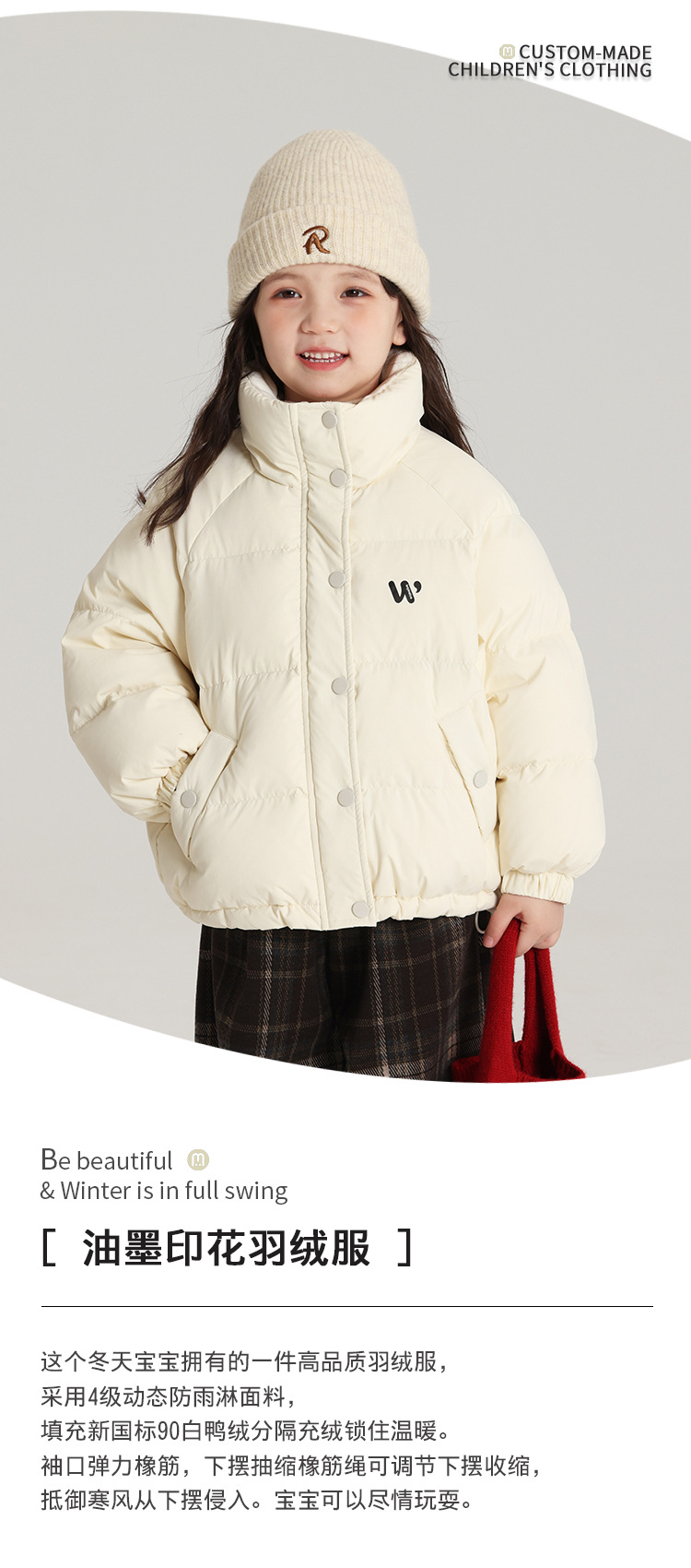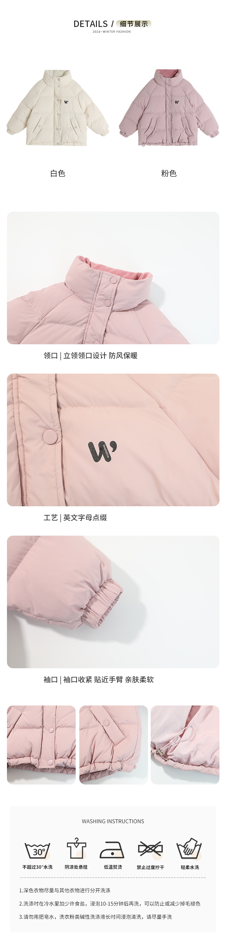 国标90白鸭绒女宝宝羽绒服!2024冬季新款女童短款羽绒服四级防水!