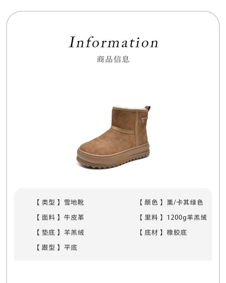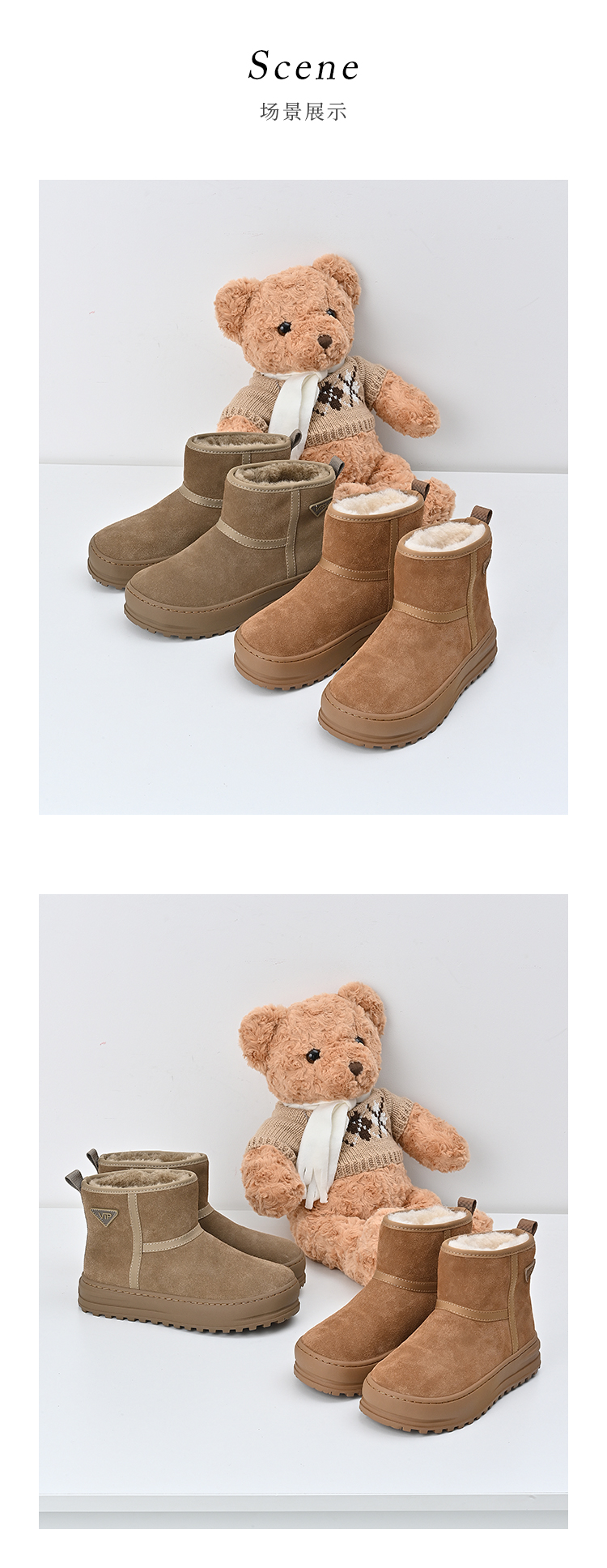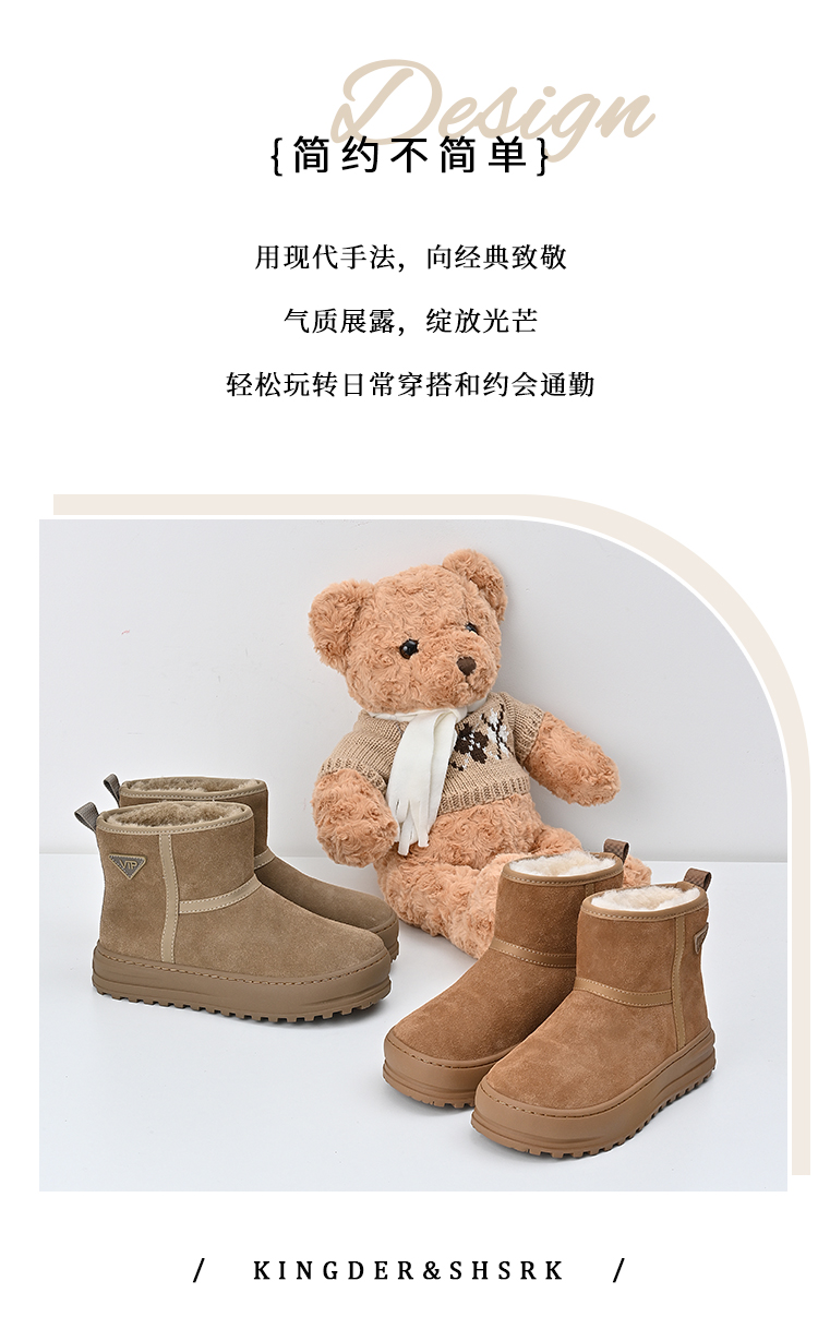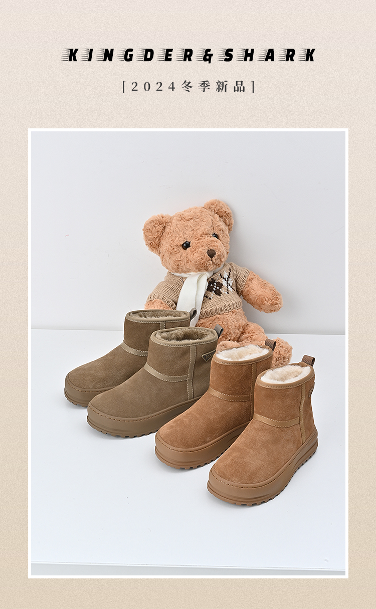 经典鲨2024冬季新款时尚百搭圆头加绒加厚保暖御寒雪地靴女KW133-D58011