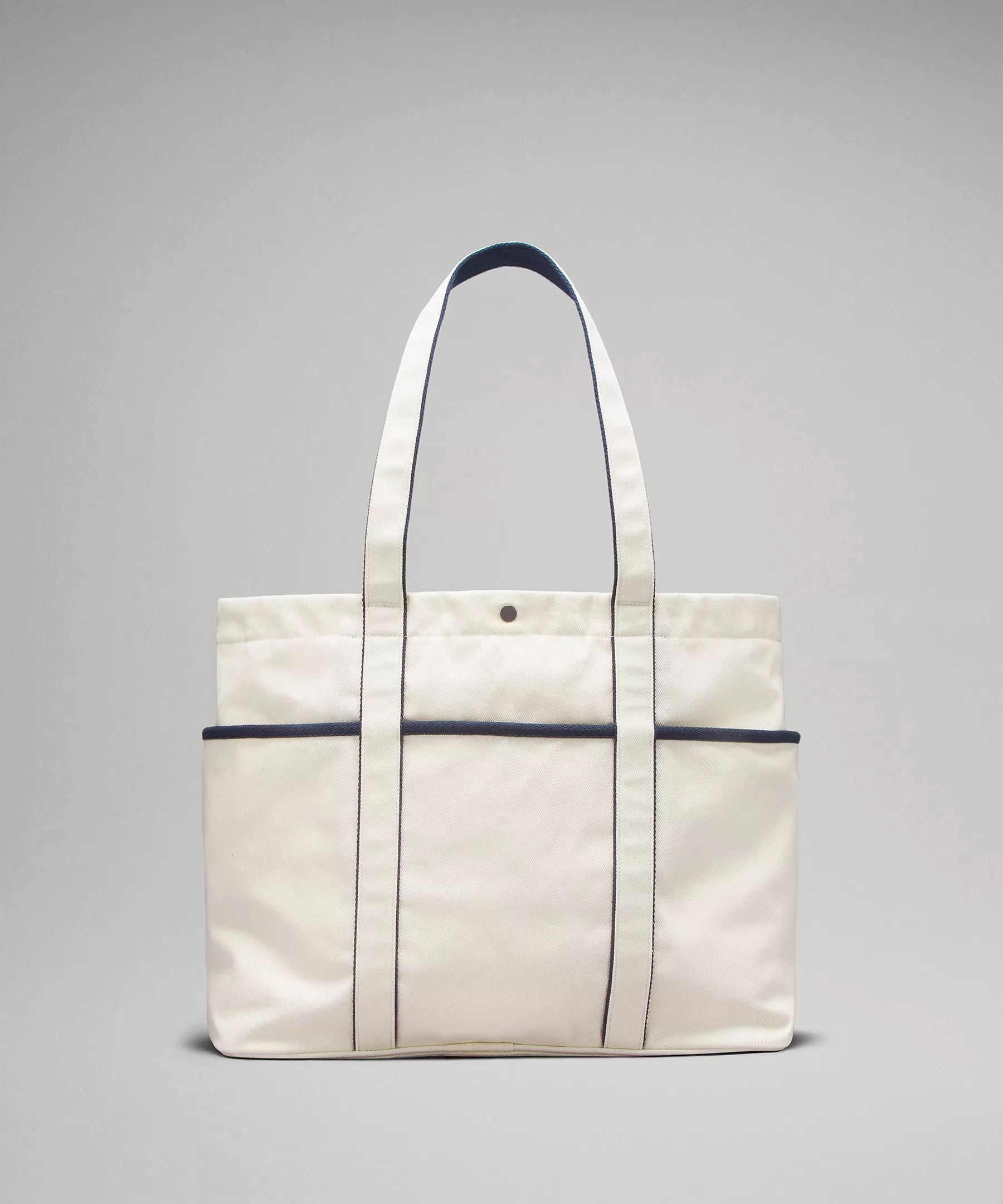 这个帆布袋可以装各种市场购物到野餐必备的所有物品。额外的好处是它有各种独立口袋,使你更容易找到自己的东西。设计用于在移动中使用,采用防水棉帆布面料。