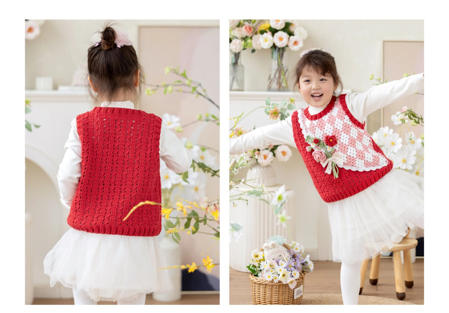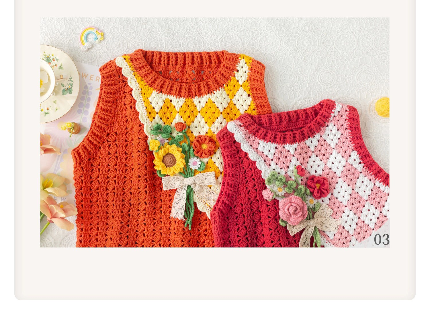 苏苏姐家花束背心手工diy编织钩针4股唯棉毛线团亲子衣服材料包