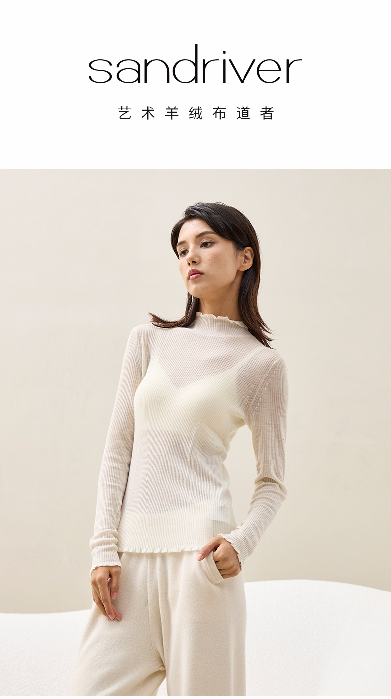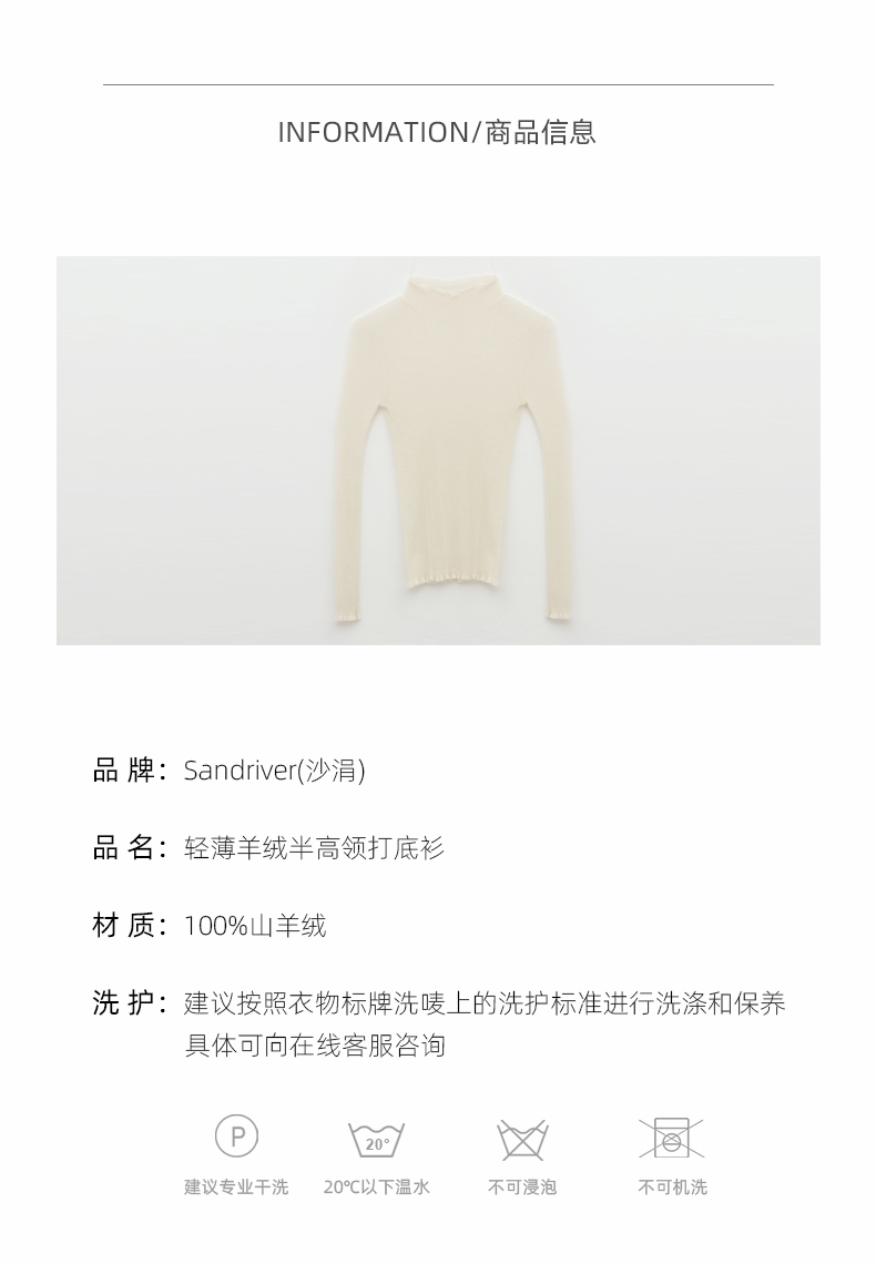 超轻薄羊绒半高领打底衫 SJF97W246N