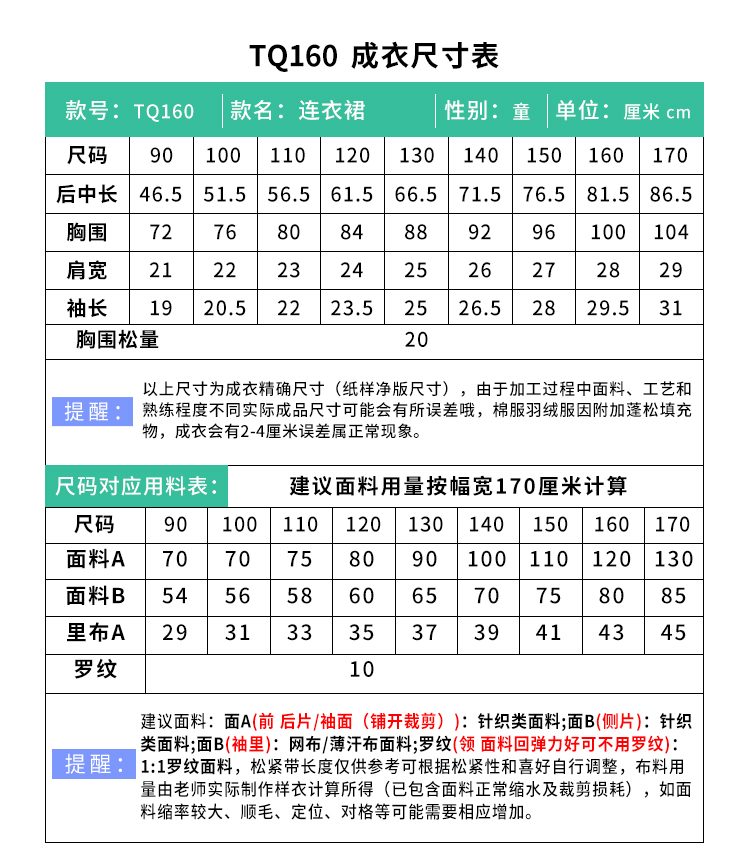 裁缝学苑TQ160女童连衣裙纸样儿童新款拼接裙子短袖公主裙童装样板