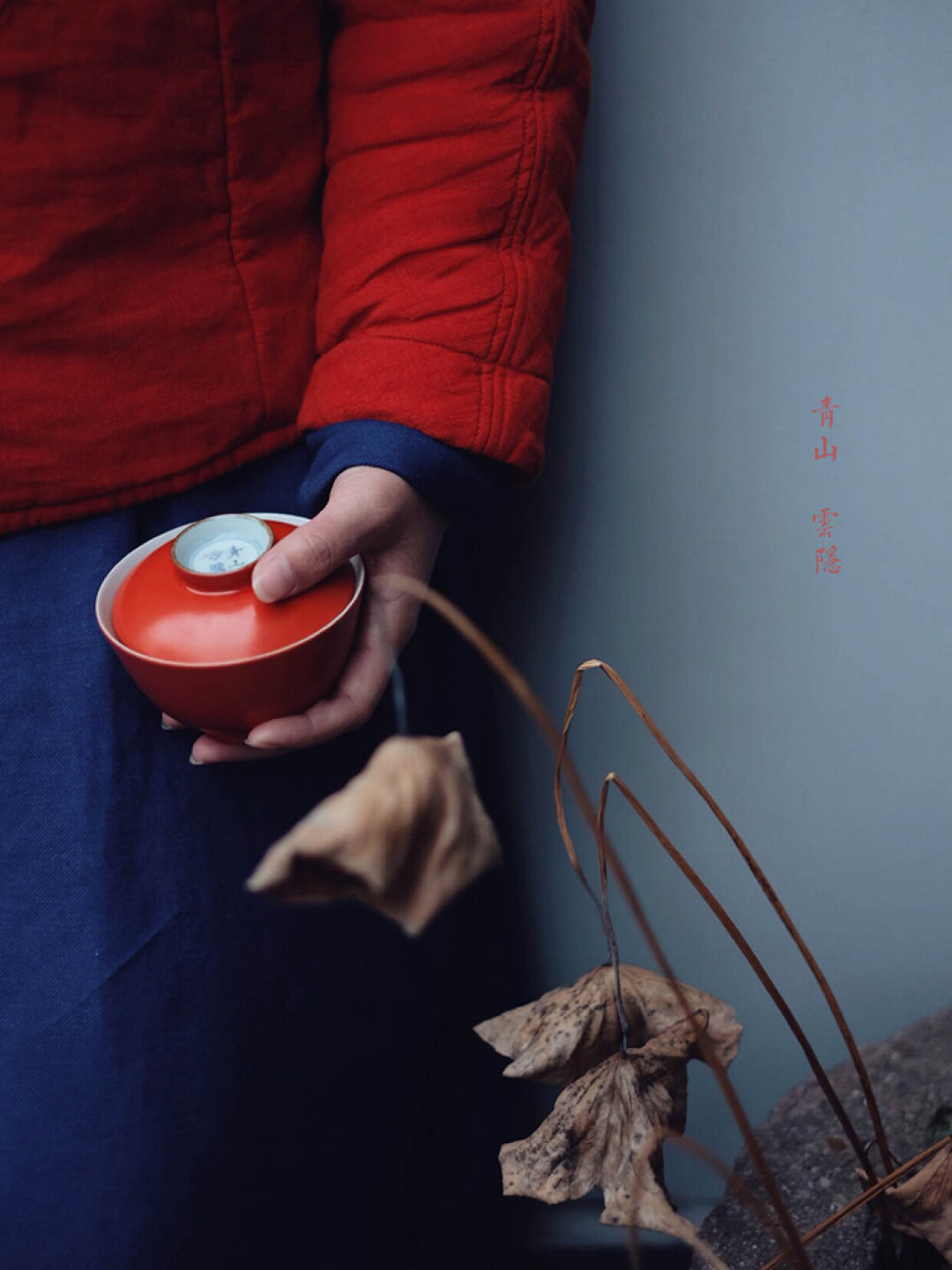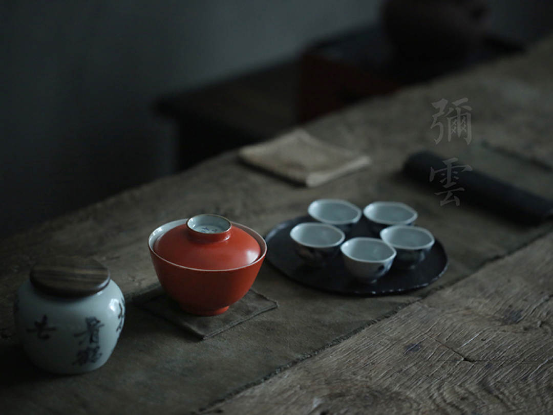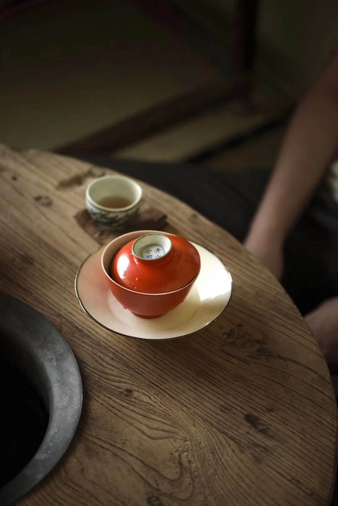 工艺:仿古泥胎、青花手写款,珊瑚红釉