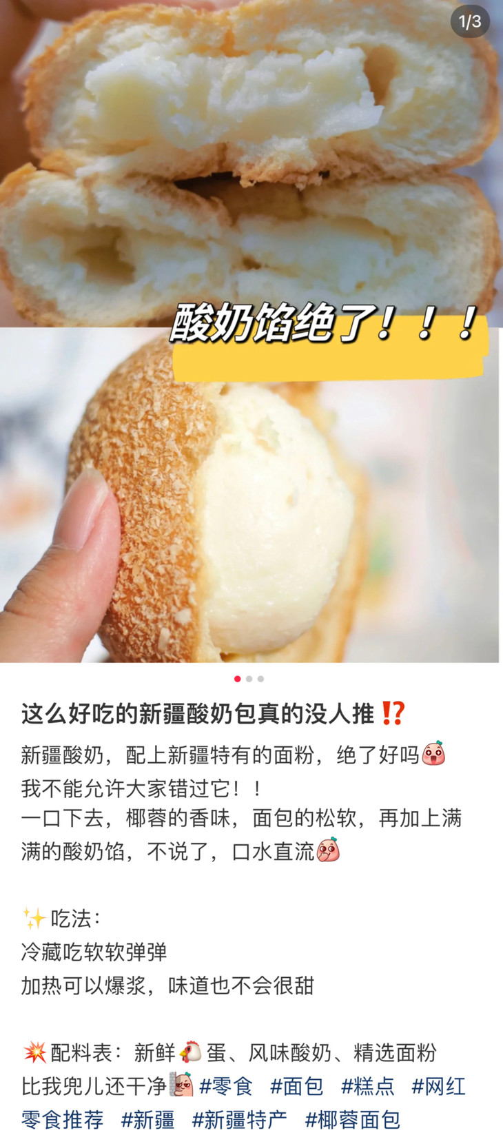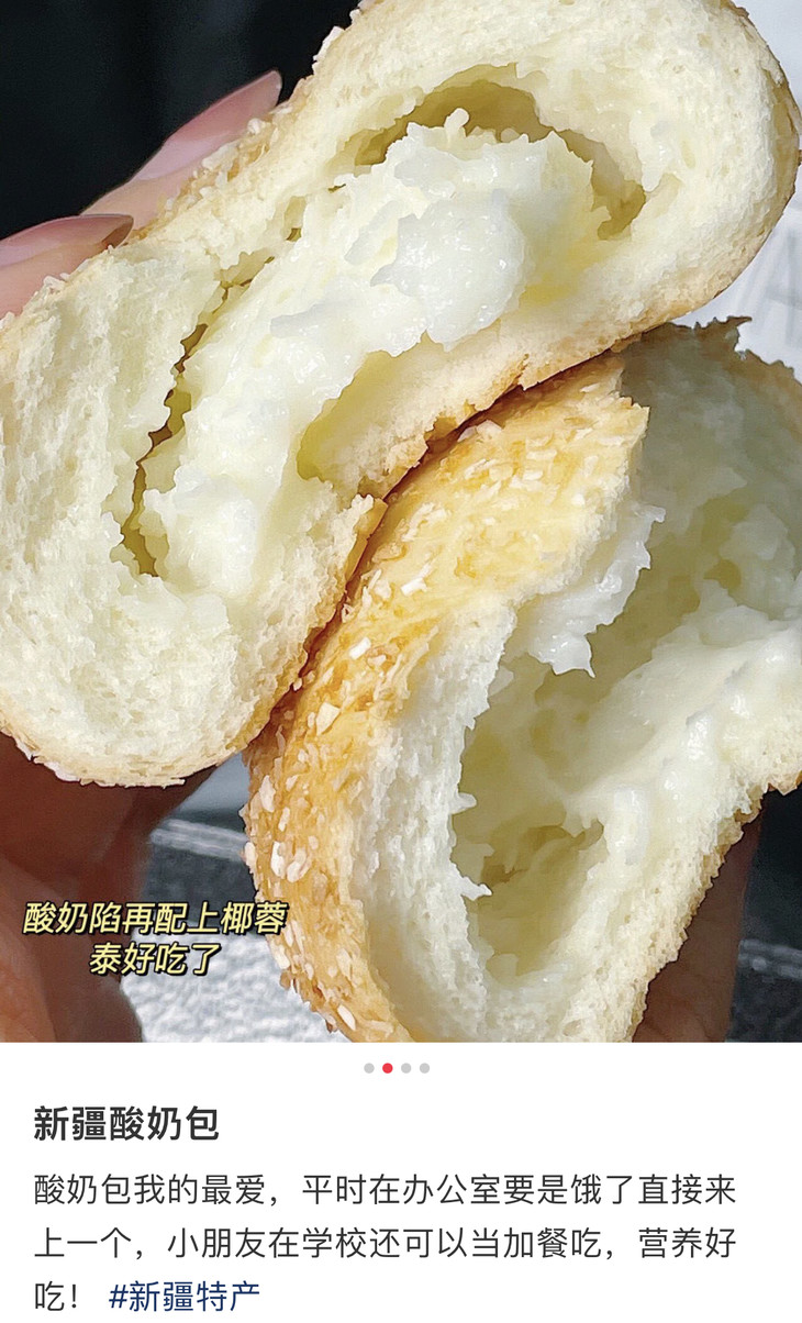 前一段上的塔城包一不小心成了店内热榜第二,看来大家都很爱大新疆啊!所以马上试起酸奶包,也不错吃,虽然看上去普通,包装也一般,但酸奶馅真的占了快一半,超好吃,尤其是空气炸锅5分钟后!