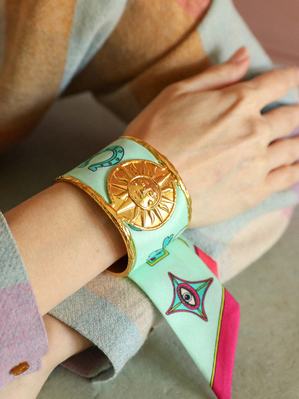 订购14周到|AN-NEE-SOLEIL-薄荷绿 幸运予你 4cm 丝巾手镯[法国设计师]