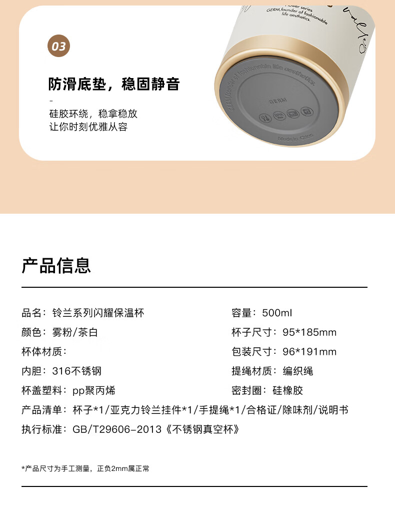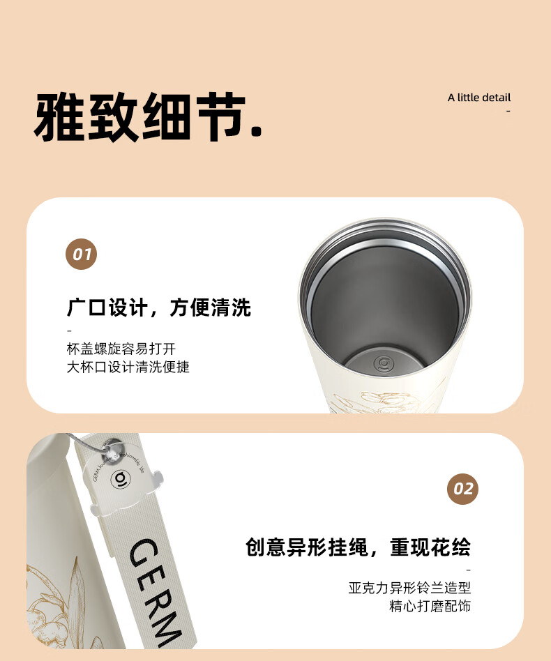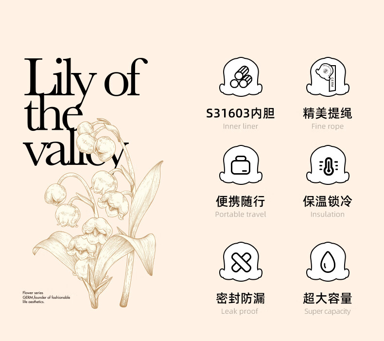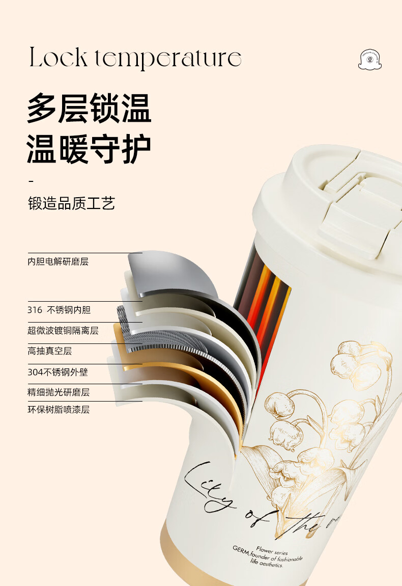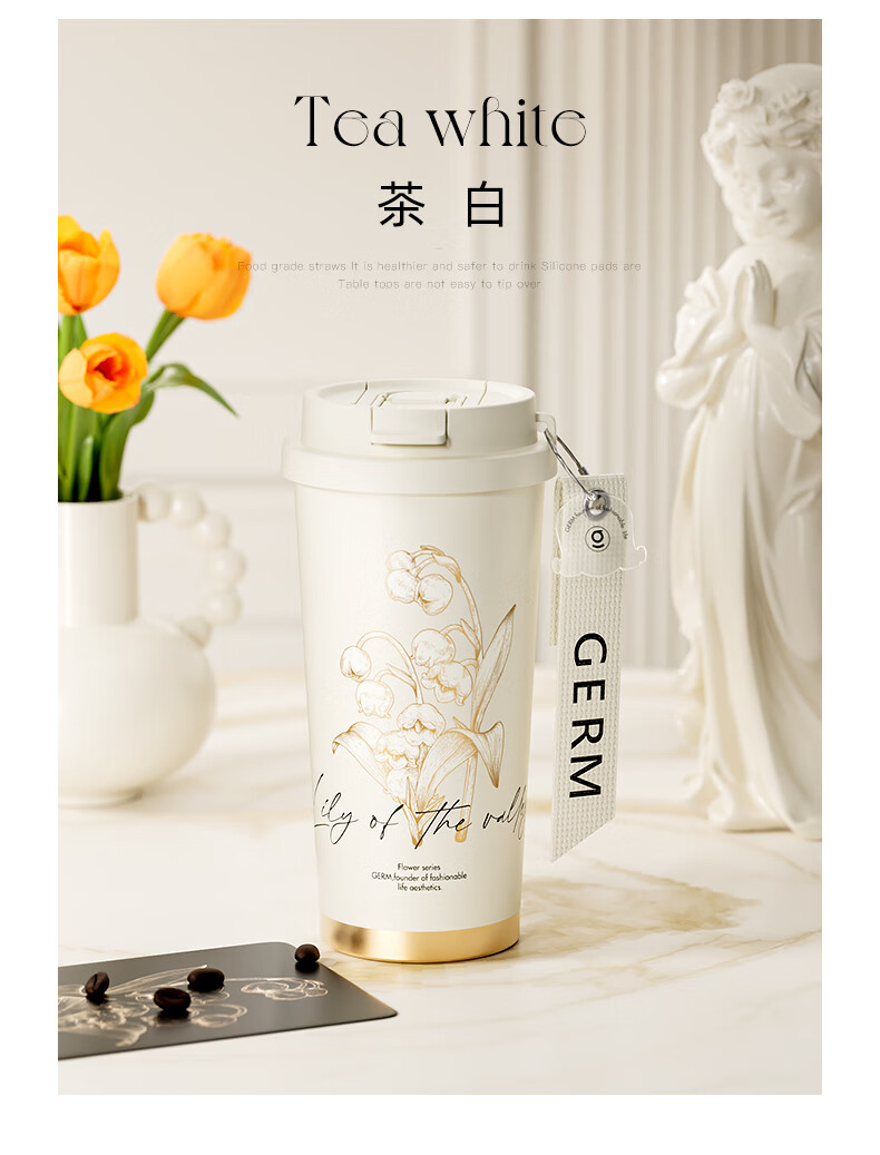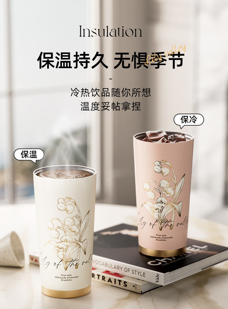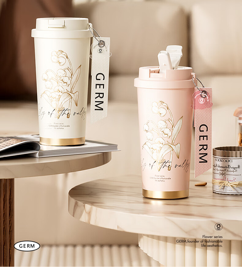 【6F】多样屋格沵(germ)铃兰双饮保温杯带吸管水杯直饮随行学生杯子女神礼物杯500ML茶白