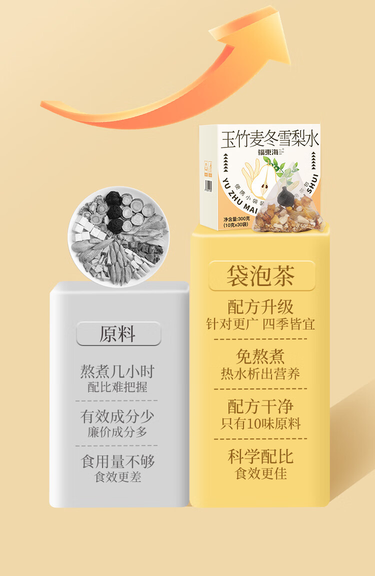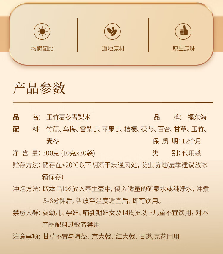 福东海 玉竹麦冬雪梨水300克 【无添加】30袋 麦冬百合茯苓雪梨饮养生茶煲汤材料