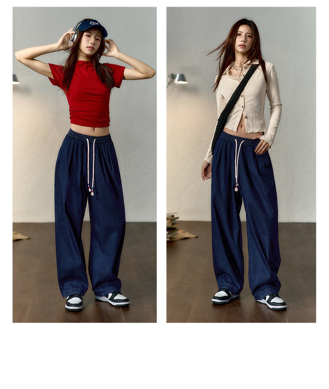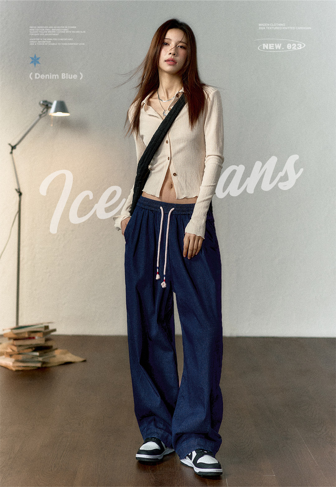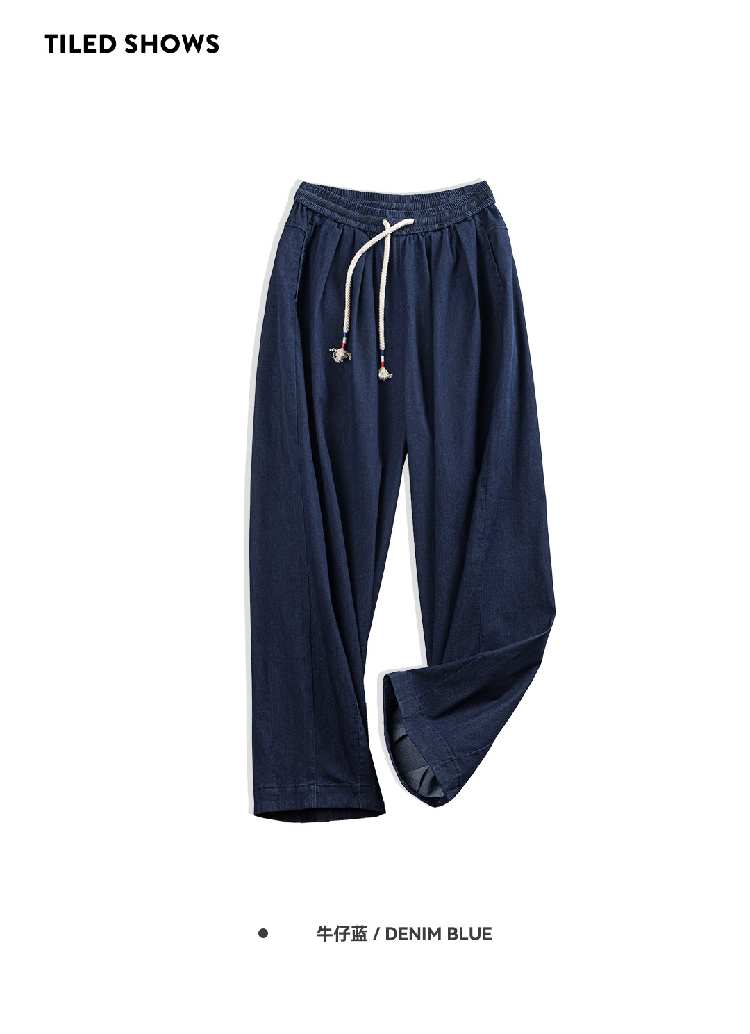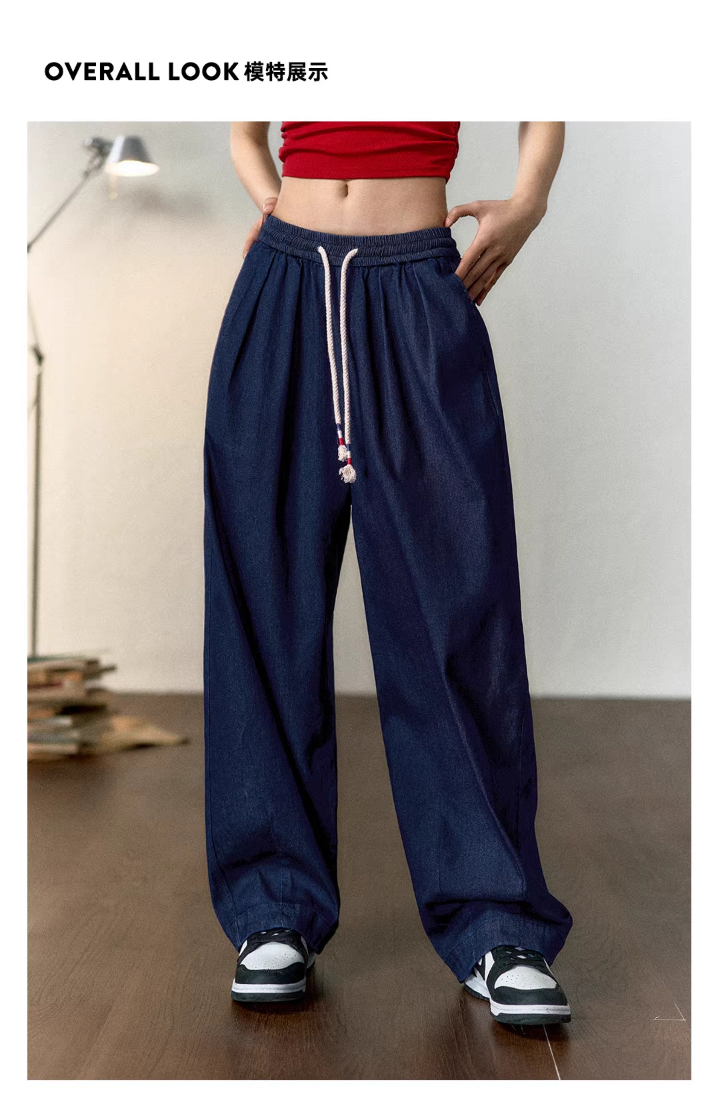 马登冰丝牛仔裤凉感薄款直筒裤小个子松紧腰抽绳天丝宽松春长裤女