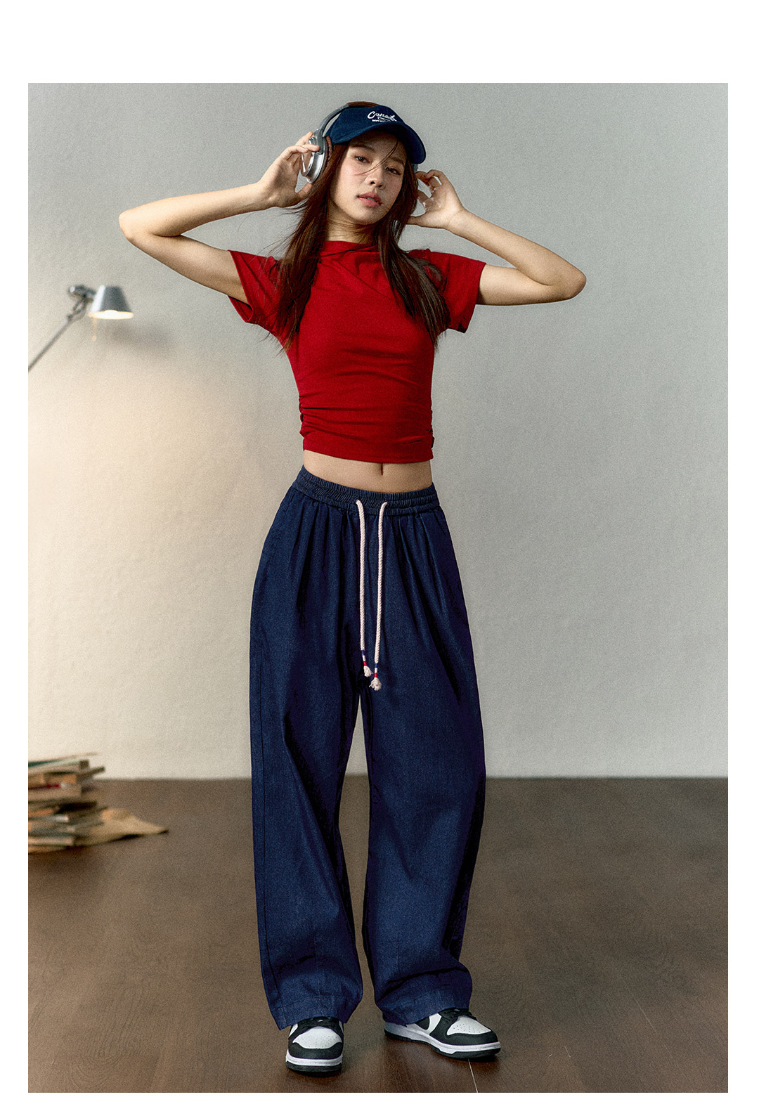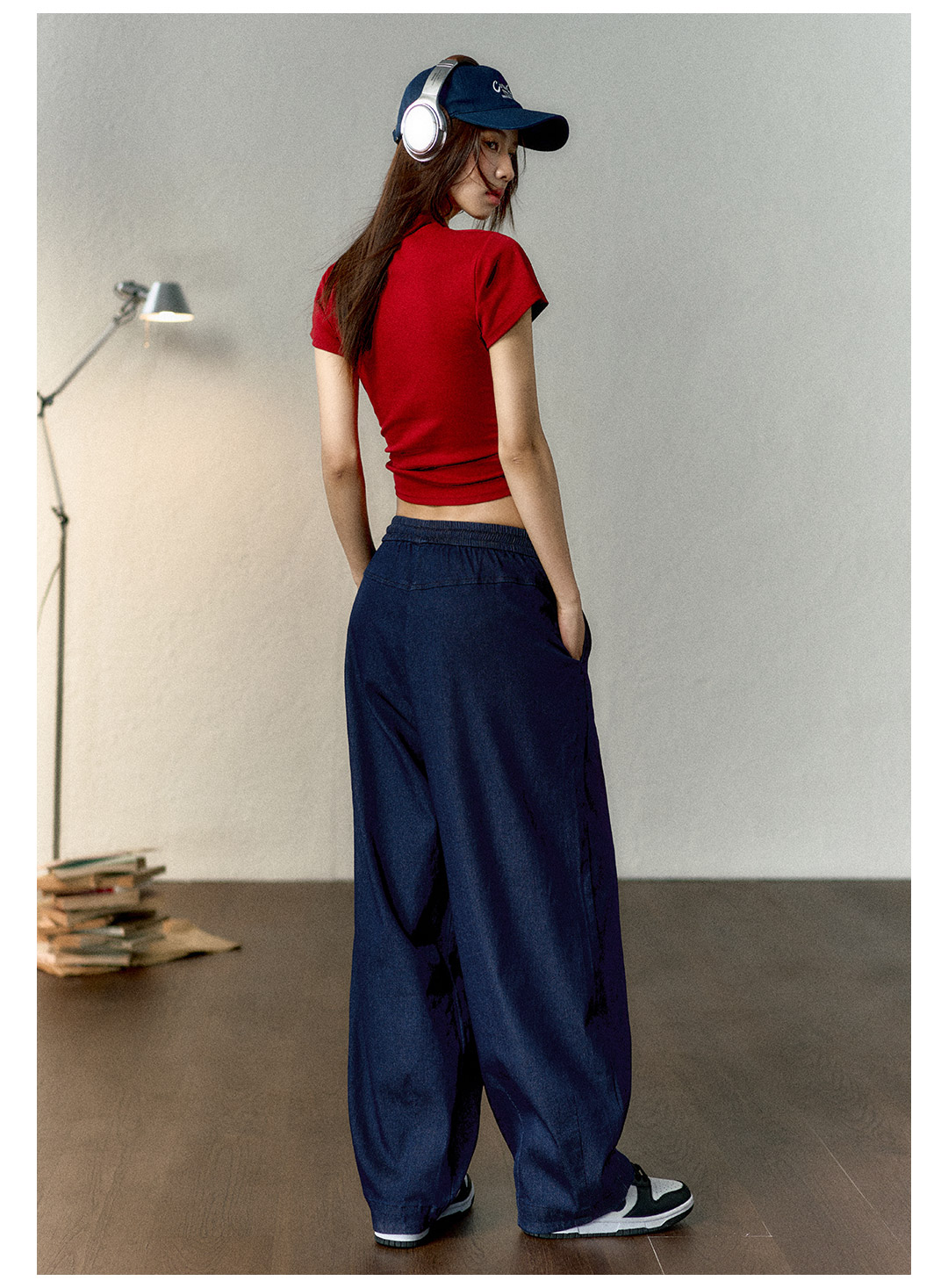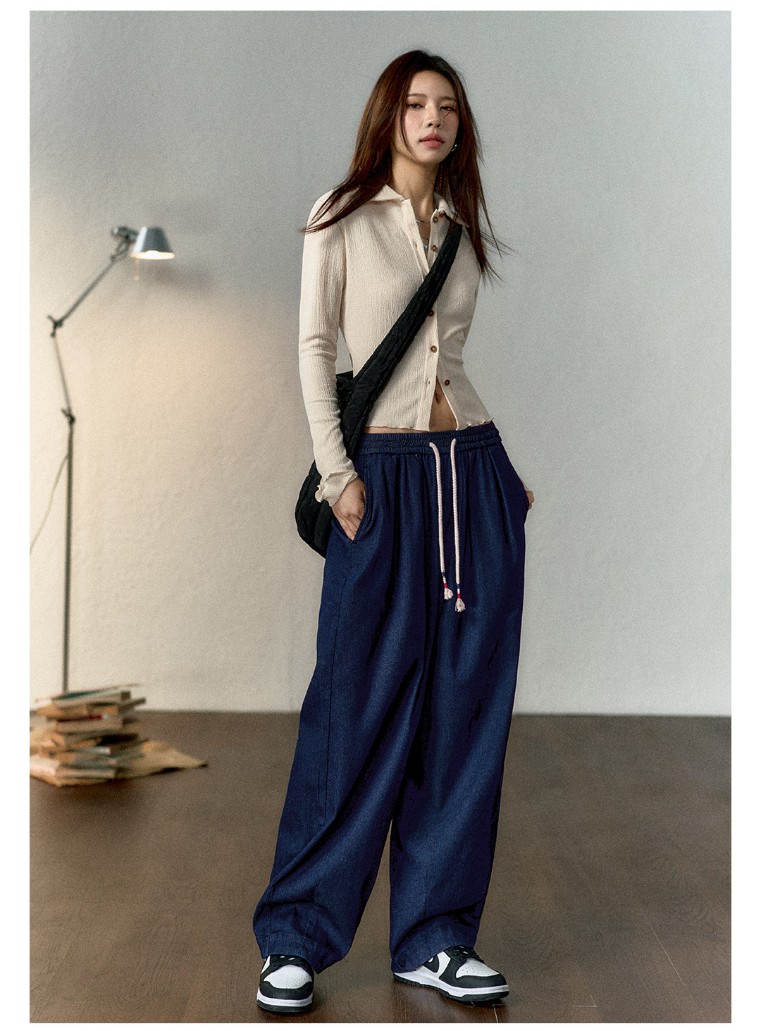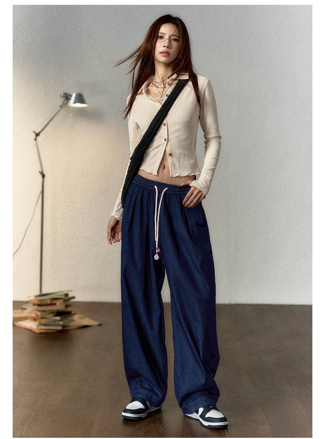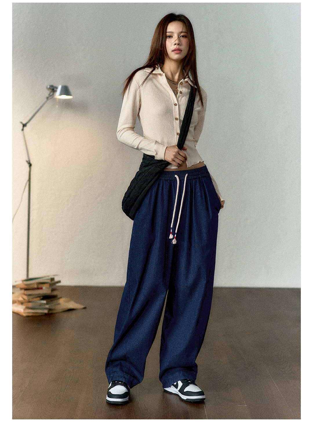 马登冰丝牛仔裤凉感薄款直筒裤小个子松紧腰抽绳天丝宽松春长裤女