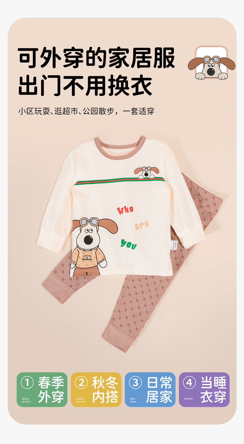 贝贝怡童装男童家居服两件套2024春秋新款可爱卡通套头套装莱卡棉ZB3DT004