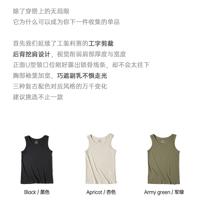 工装优选复古白色棉健身背心运动老头汗衫跨栏重磅螺纹坎肩打底男