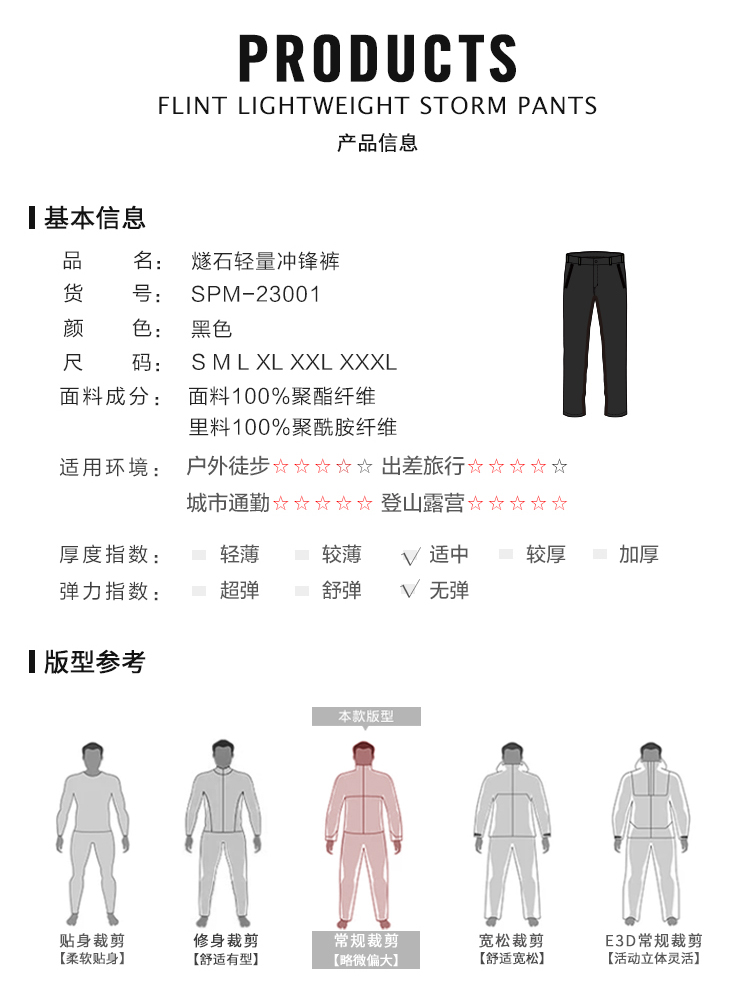 SANFO PLUS SPM-23001 燧石多功能冲锋裤 男
