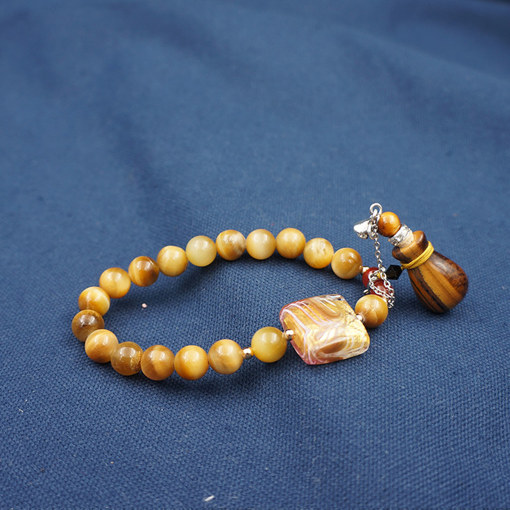 天然金色虎眼石 如意净水瓶造型 单圈扩香手链