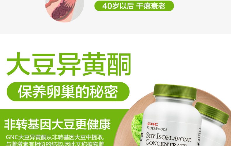 【香港直邮】美国健安喜GNC浓缩大豆异黄酮胶囊90粒 平衡更年期