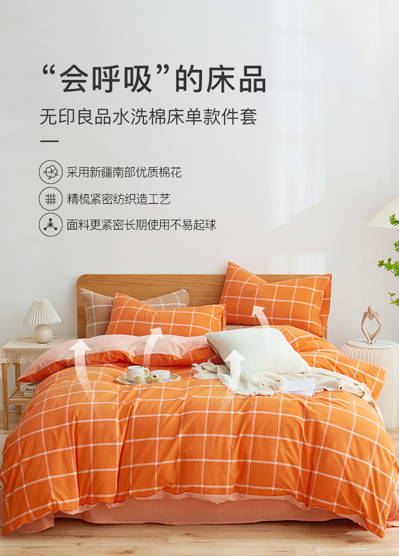 午后阳光四件套纯棉家用亲肤四件套 被罩+床单+枕套 无印良品