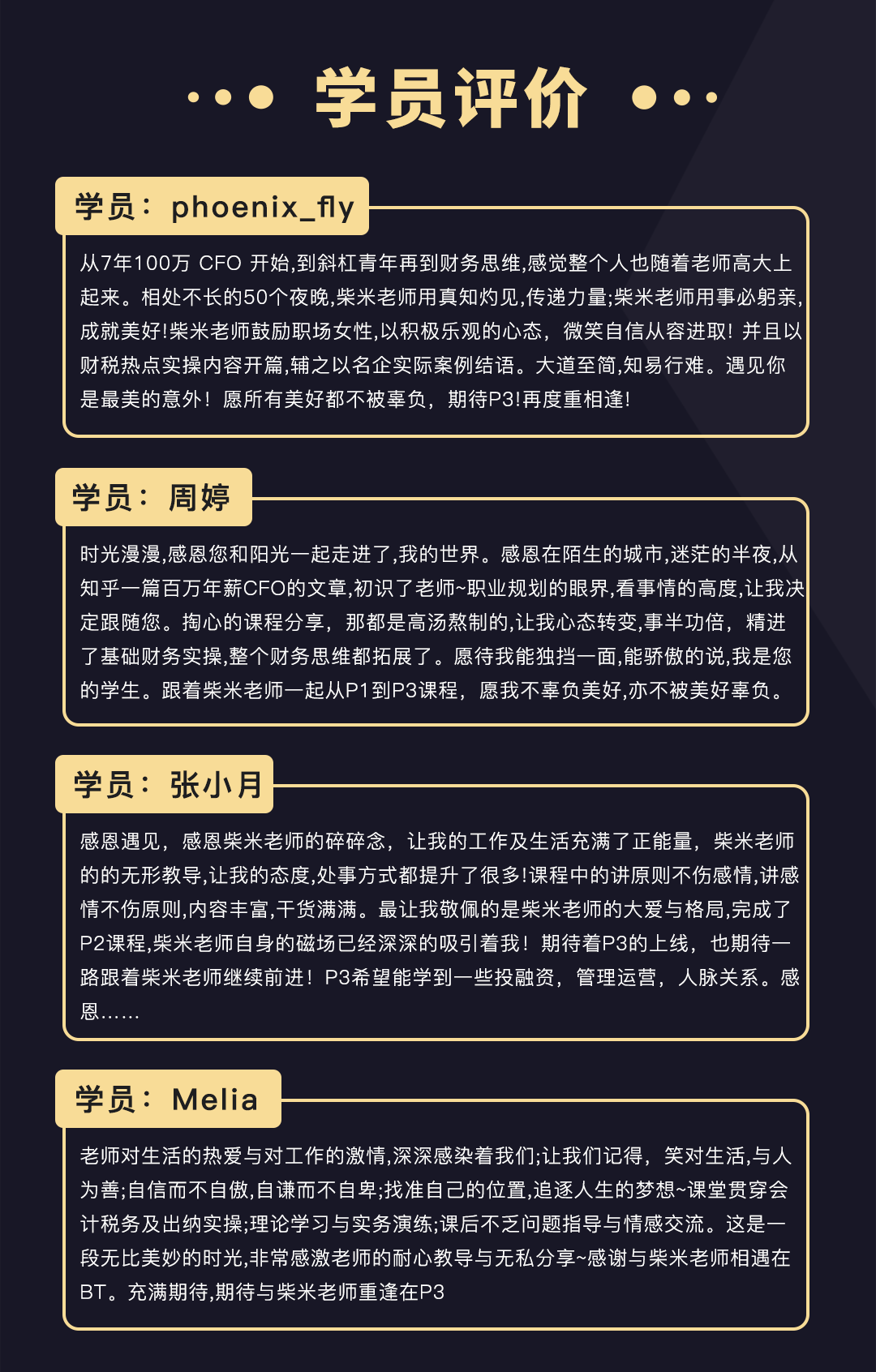 答:P3财务经理训练营针对有一定基础的财会人,终身学习打造财会人进阶财务经理的实操基础和职场软实力,享受柴米老师一对一交流咨询。P3财务经理必修课是为财务主管进修的中级课程。P3学员均为财务经理同盟会会员,柴米老师会倾注业内资源给到所有会员。