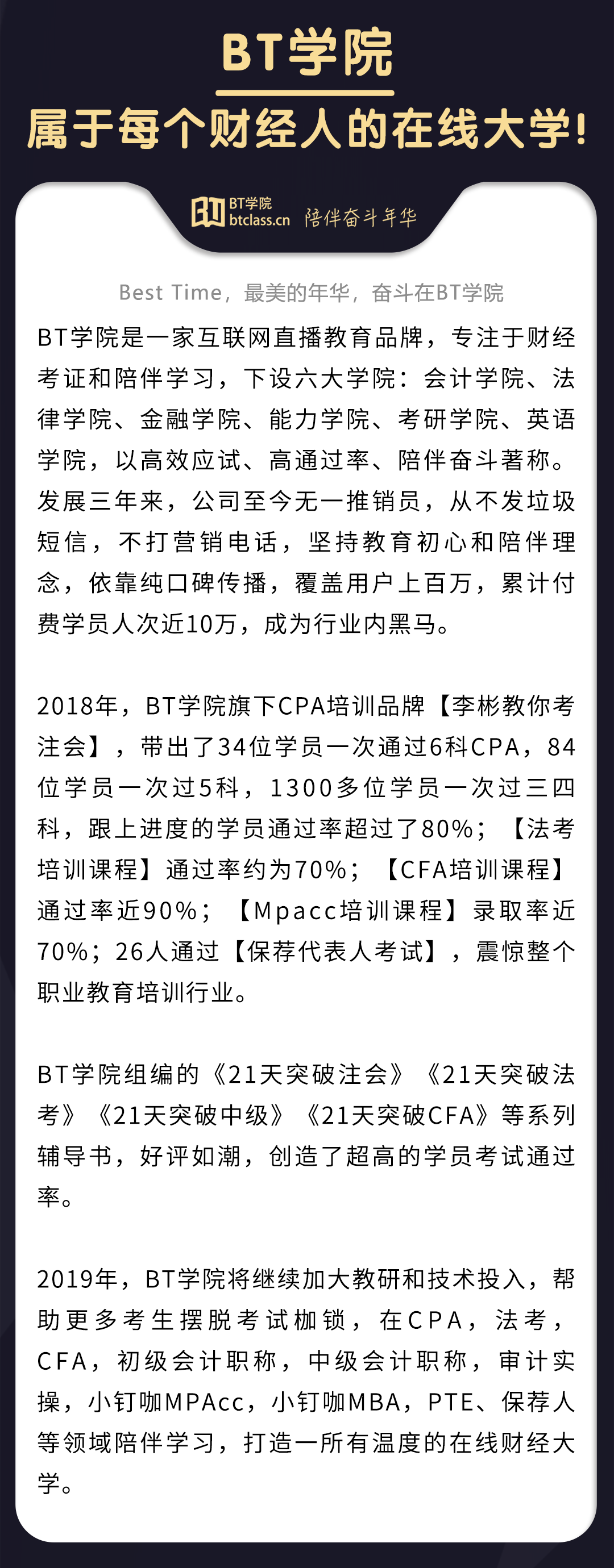 请务必关注微信公众号【BT研习社】,接受上课通知和添加会计实操小助手。