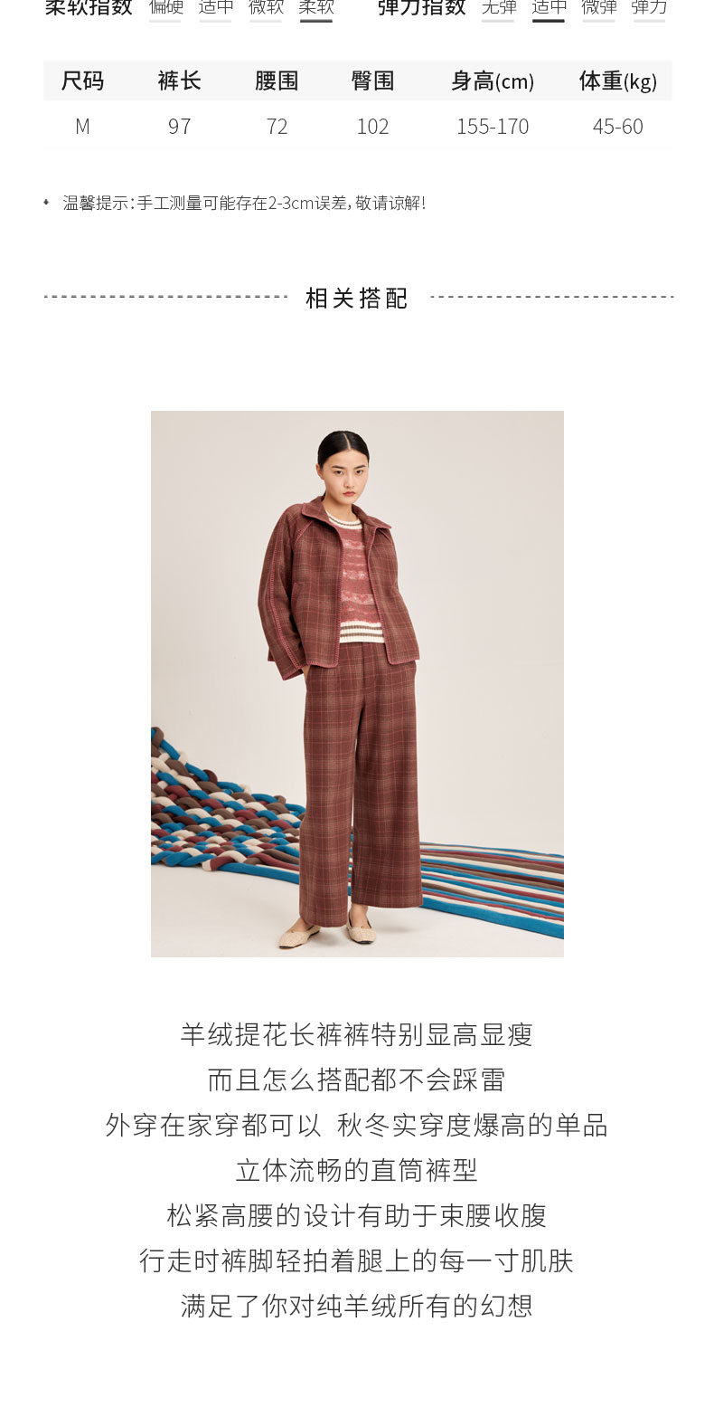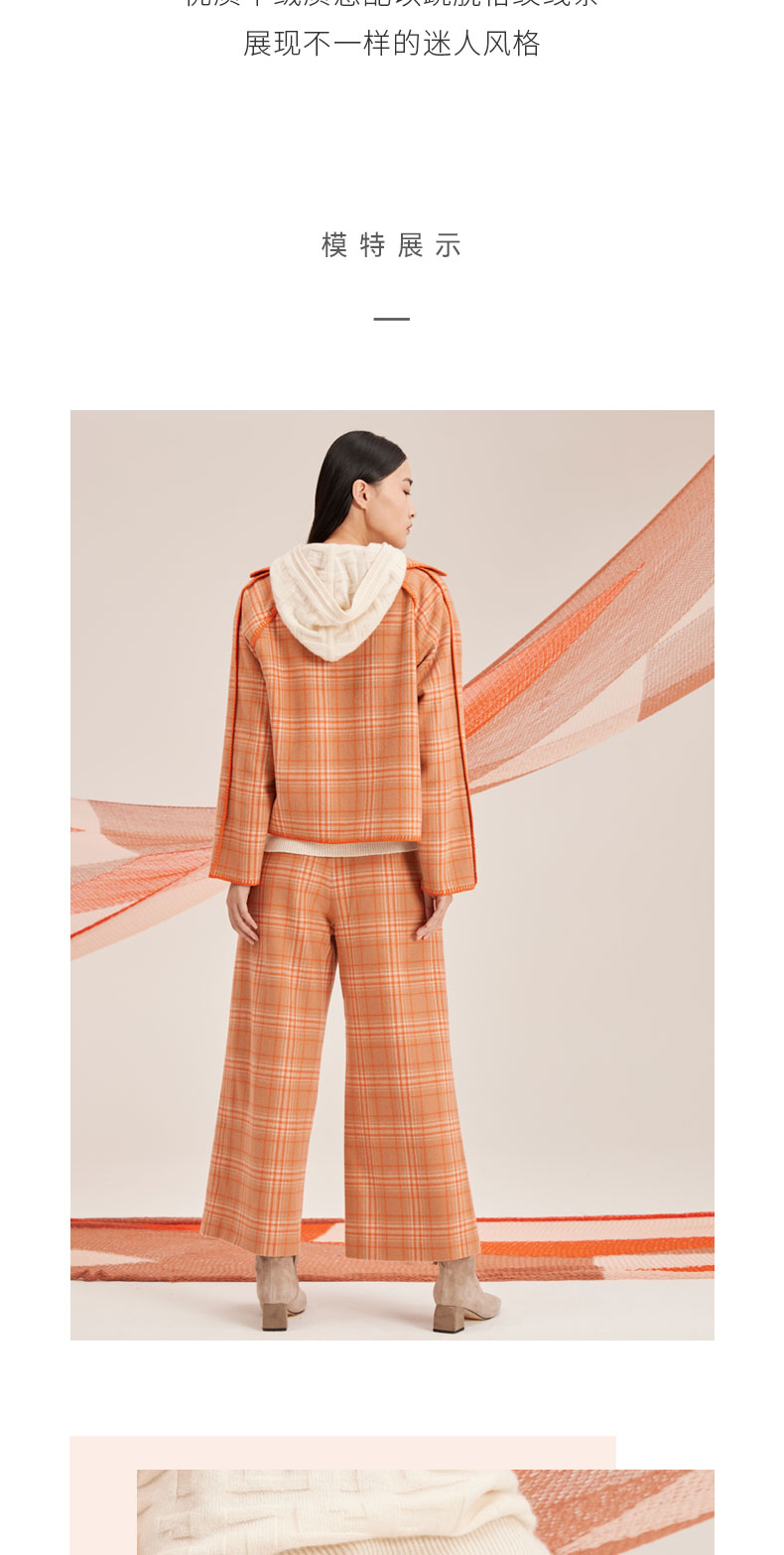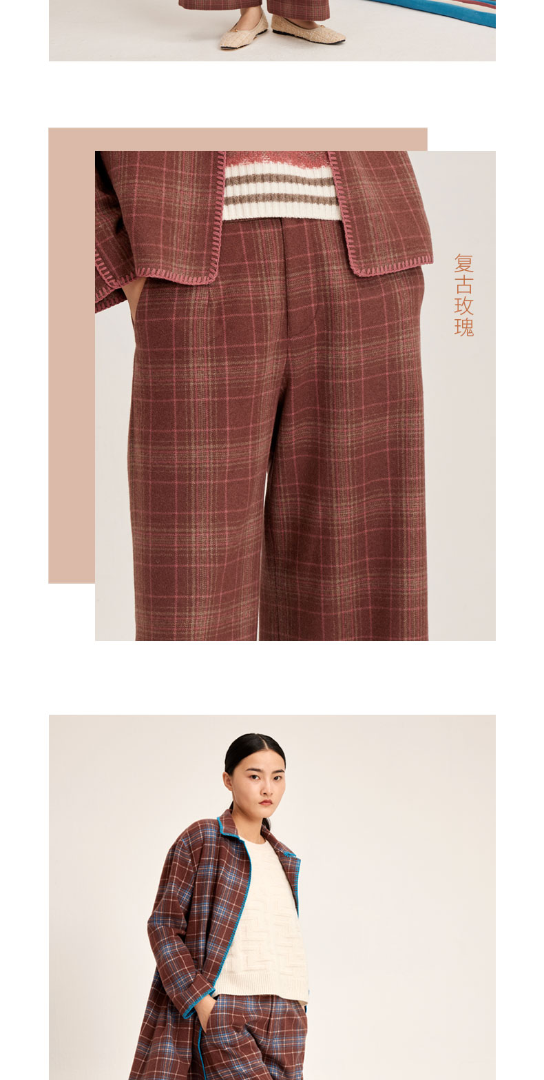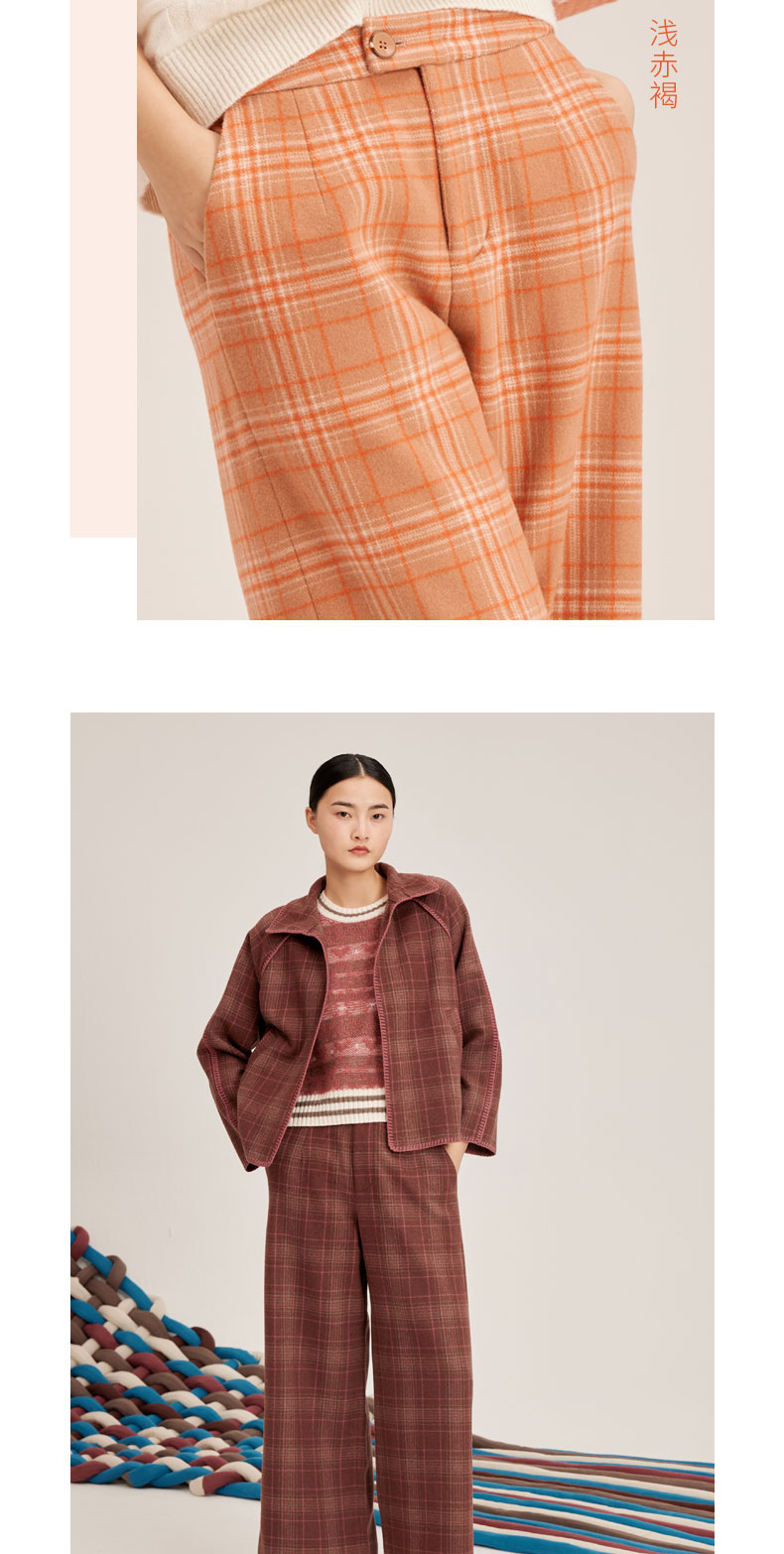 羊绒格纹提花女长裤SJF95W347W