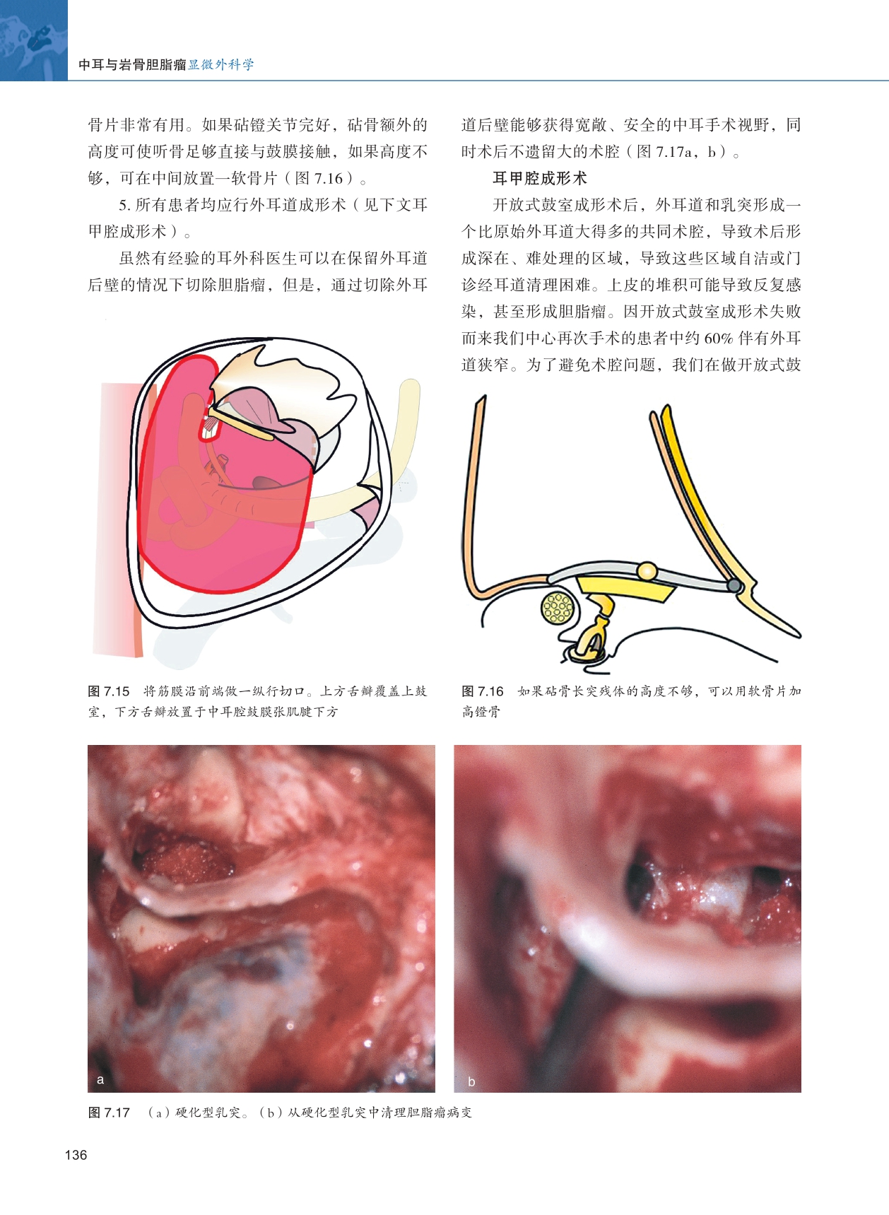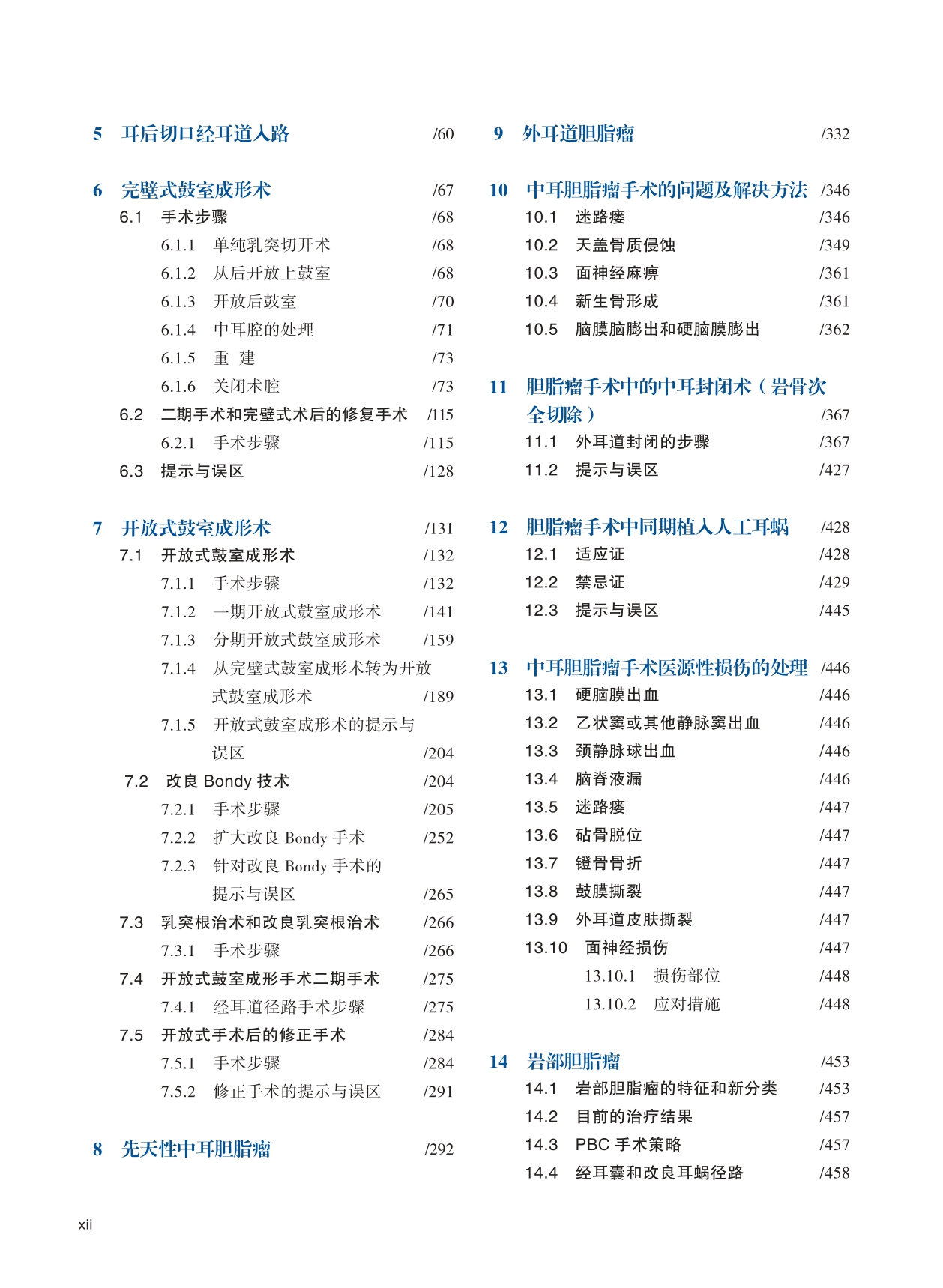 胆脂瘤,严格地说是囊肿而不是癌症,但是呈扩张性和破坏性生长模式,可能引起严重的症状和后果,包括死亡。中耳与岩骨胆脂瘤治疗的最大挑战是要在保持中耳和小骨头的听力和其他关键功能的同时,要尊重重要的神经和血管结构以及复杂的三维关系,根除病态的生长。本书凝结了30多年的中耳及岩骨胆脂瘤的临床经验和成果,展示了大量的典型临床病例,图文并茂,深入浅出。书中除介绍了包括完壁式鼓室成形术、开放式鼓室成形术、乳突根治术或改良乳突根治术、改良Bondy手术等多种传统手术技术外,还详细介绍了岩骨次全切除术,以及同期人工耳蜗植入等岩部胆脂瘤手术的适应证、禁忌证、手术要点、注意事项及术后处理等。