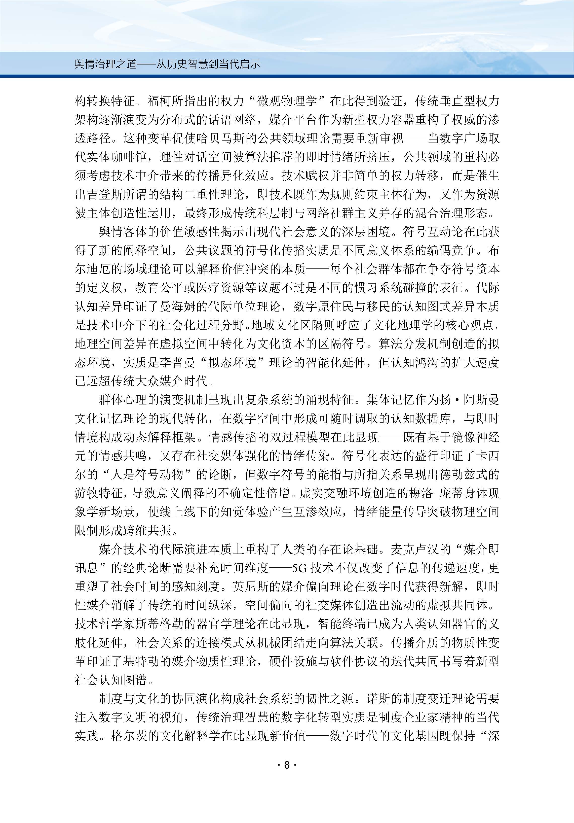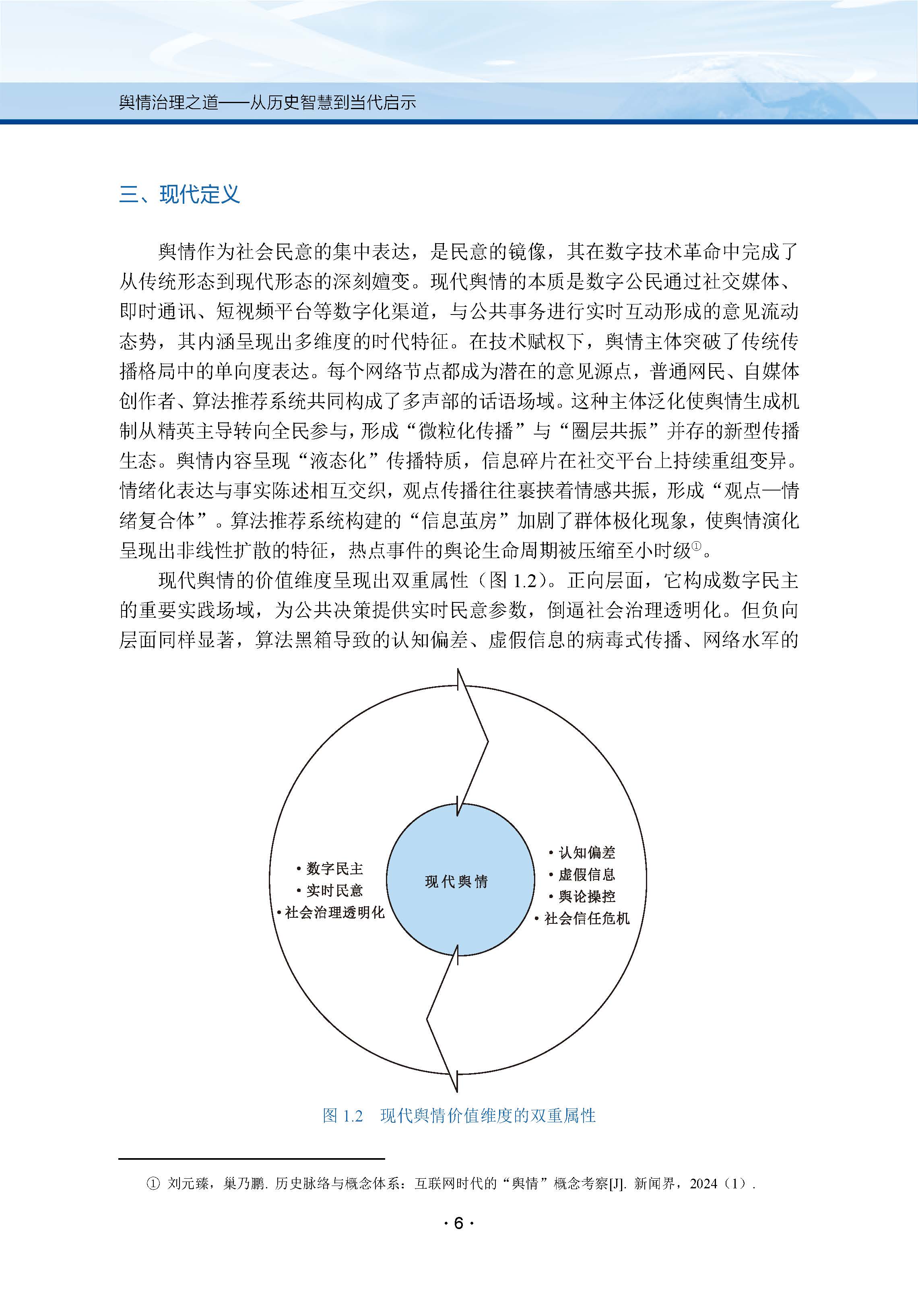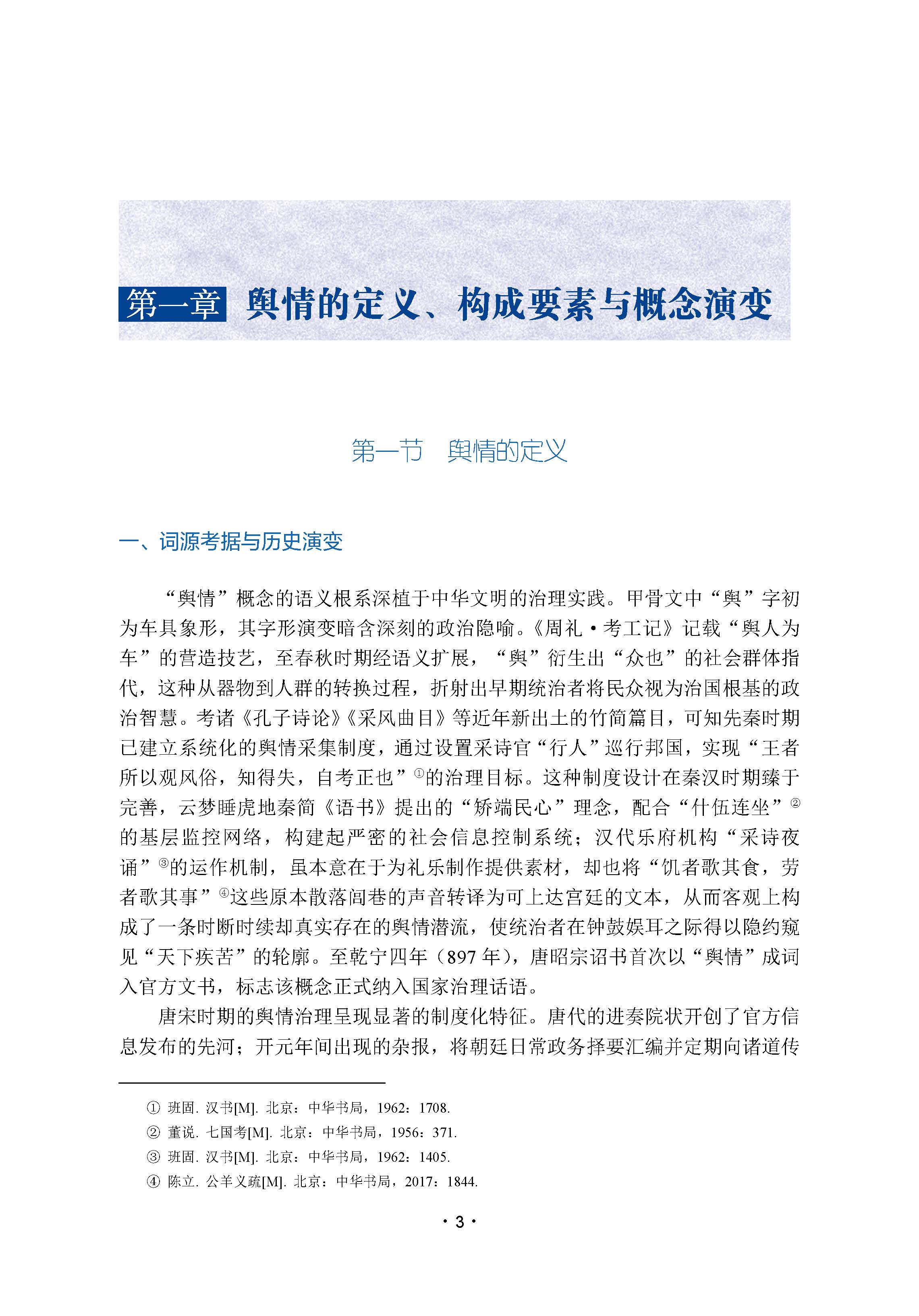 本书系统梳理了舆情从古至今的内涵演变、历史脉络及未来展望。全书分为三篇:第一篇剖析舆情的内涵演变,包括其定义、构成要素及古今概念范畴的演变,并总结了现代舆情研究的四大流派;第二篇凭史探源,以朝代为主线,分析先秦至近代舆情的时代特点、传播形式及典型案例,揭示历史舆情的现实价值;第三篇面向未来,探讨舆情发展的新趋势及研究展望。本书将历史视角与现代理论相结合,既注重舆情的理论建构,又通过丰富的历史案例提供实践启示,为理解舆情与社会治理的关系提供了全新视角。