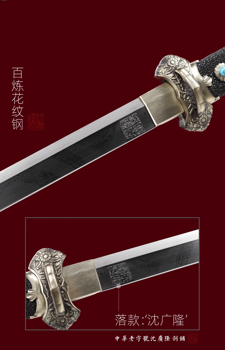 璟瑞唐横刀剑 传统手工宝剑 龙泉沈广隆花纹钢剑仿古刀剑 未开刃