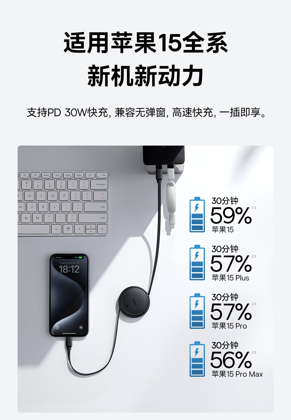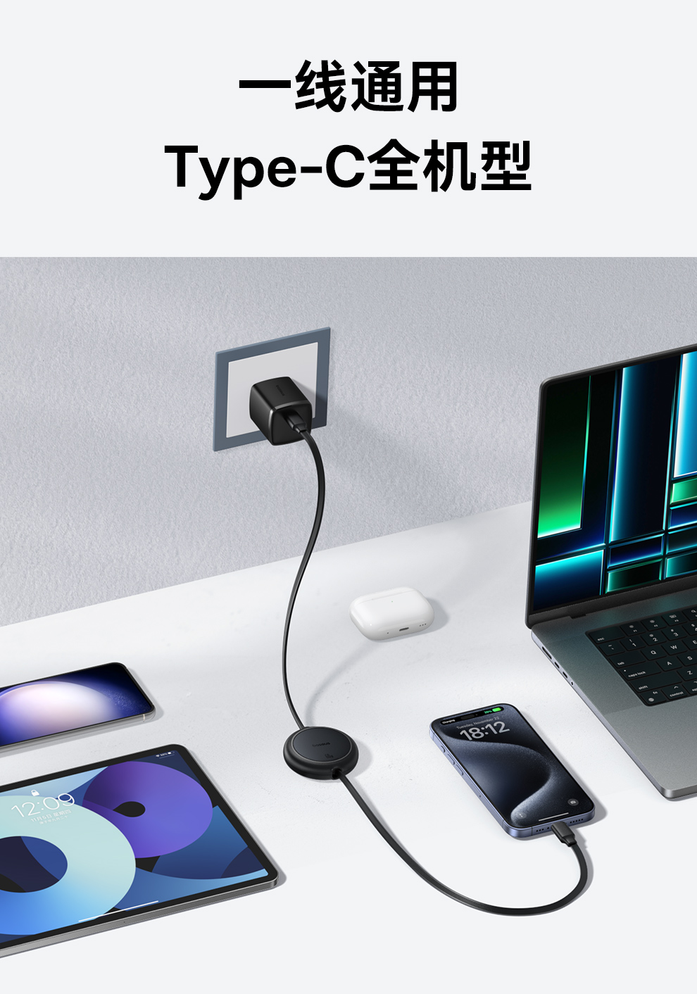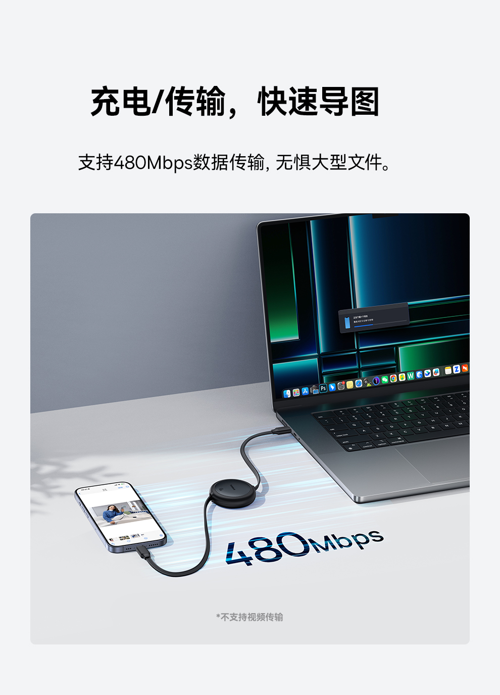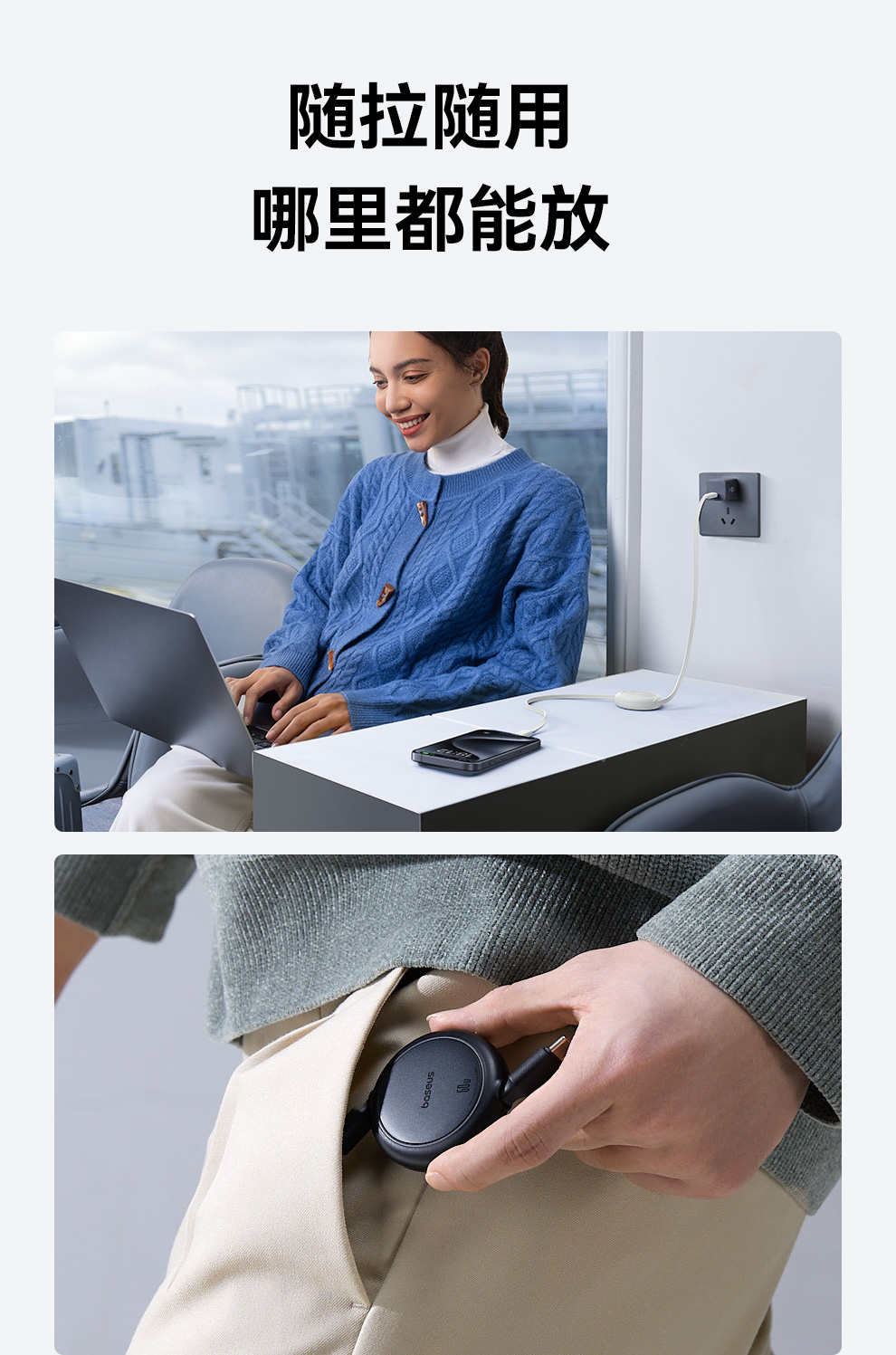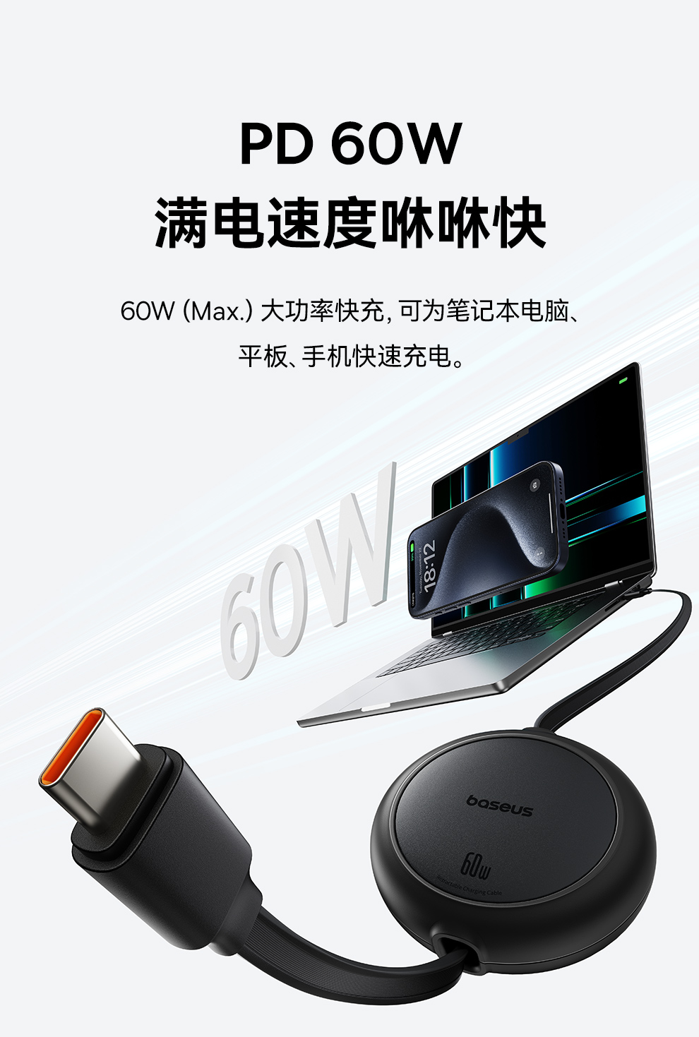 【69元3件】倍思 明镜Mini系列 随意拉伸快充数据线 Type-C to Type-C 60W