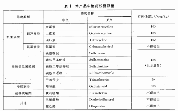 解析:在《无公害水产品 渔药残留限量标准》里面,药物残留的标准如下: