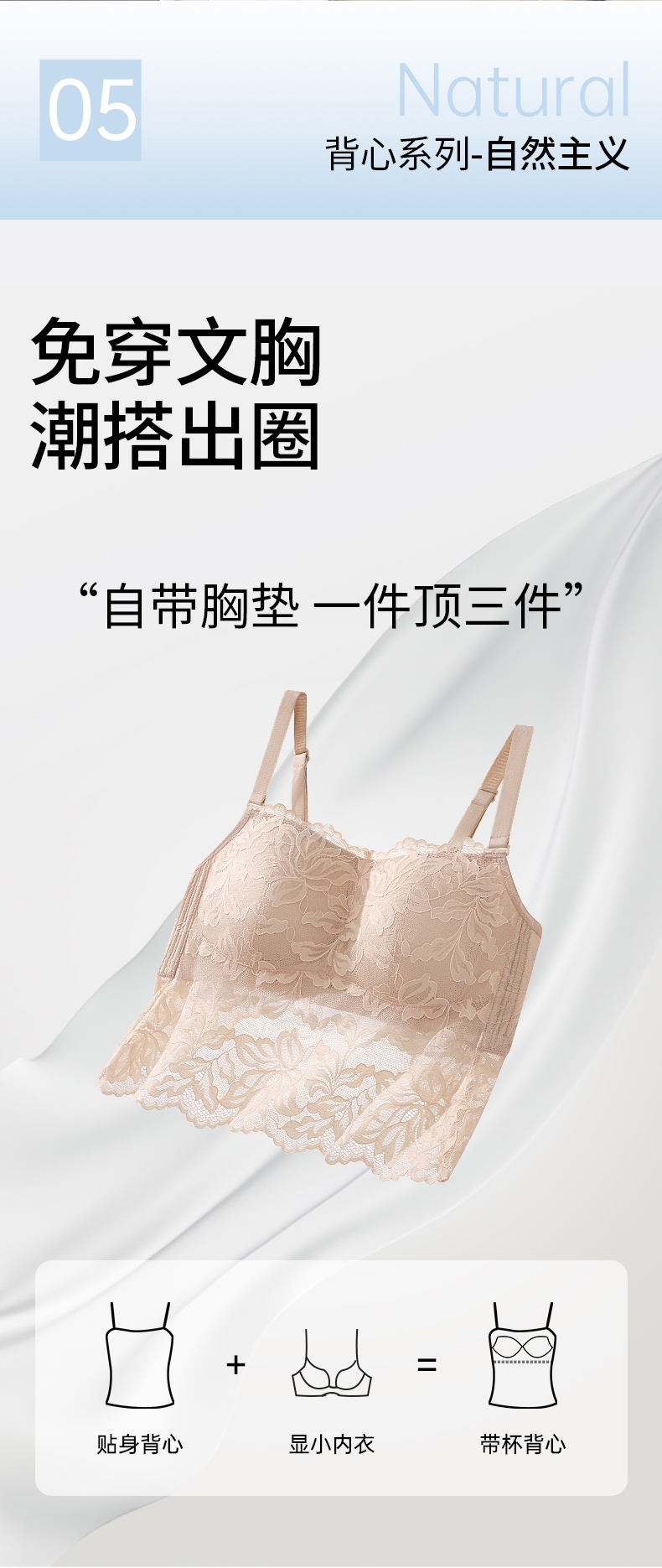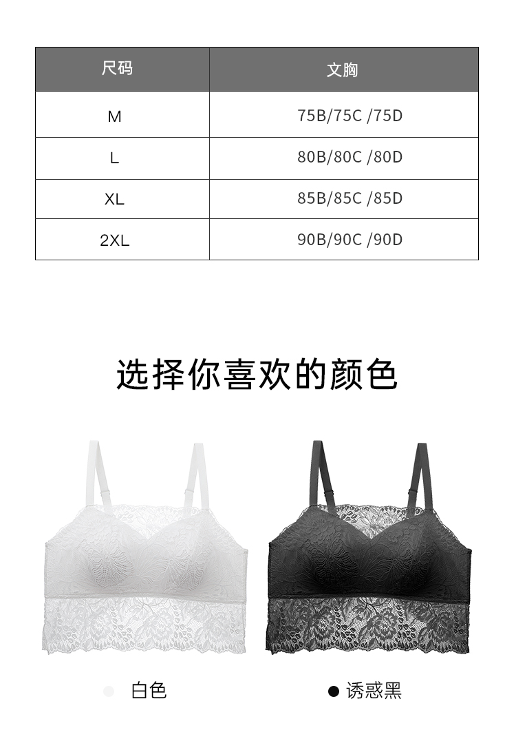 D3-【B-D杯】【蝴蝶蕾丝美背防走光抹胸】大胸显小薄款文胸性感吊带背心内衣女 梦幻蕾语/云舒纷纷