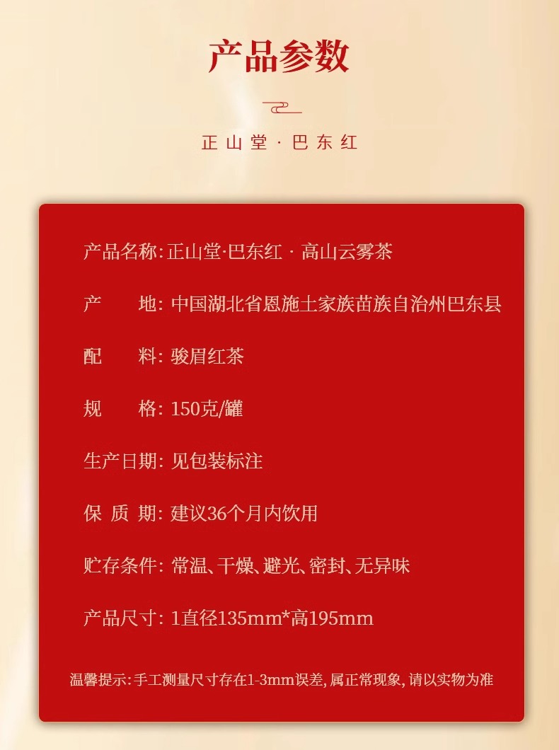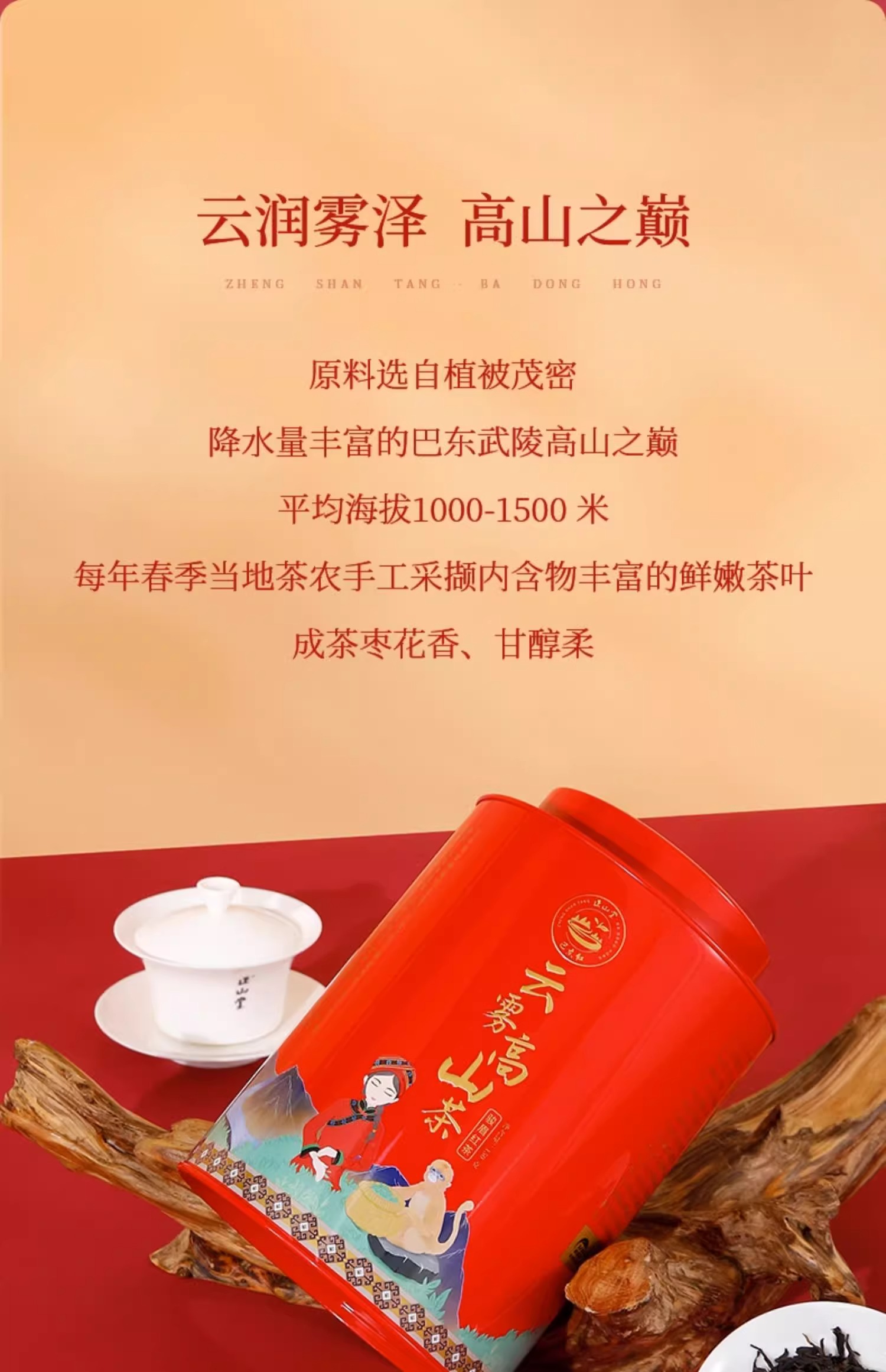 正山堂骏眉中国 巴东红云雾高山茶 特级红茶罐装茶叶骏眉工艺150g