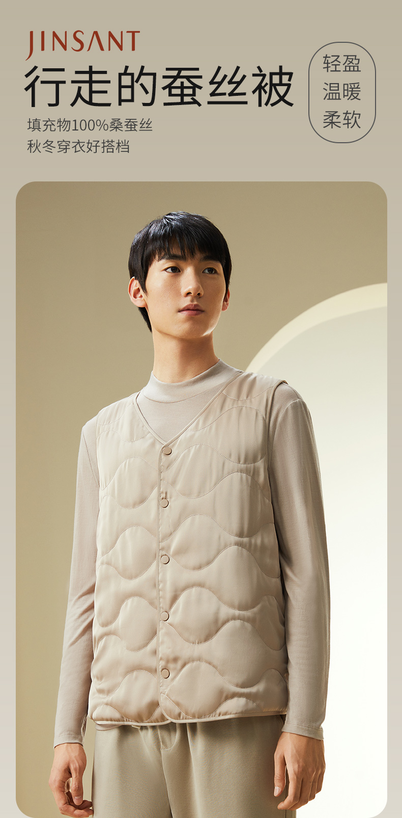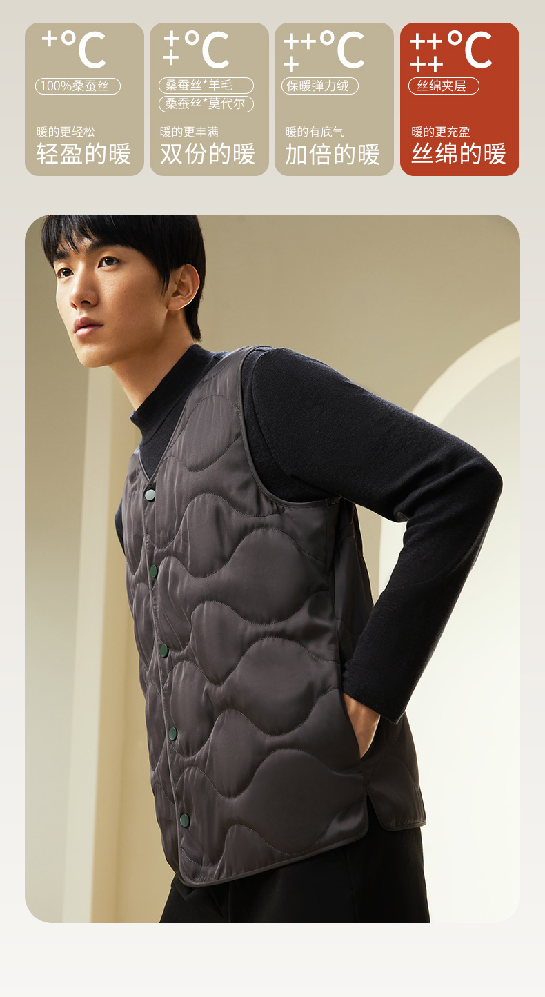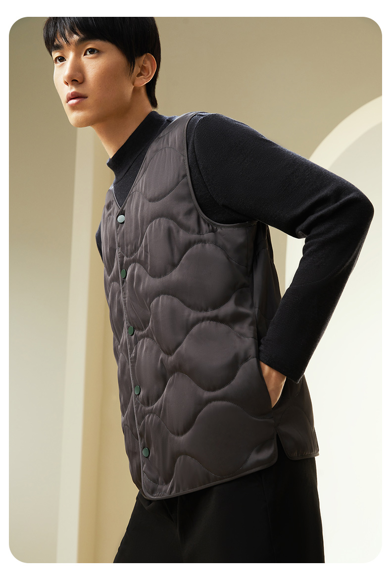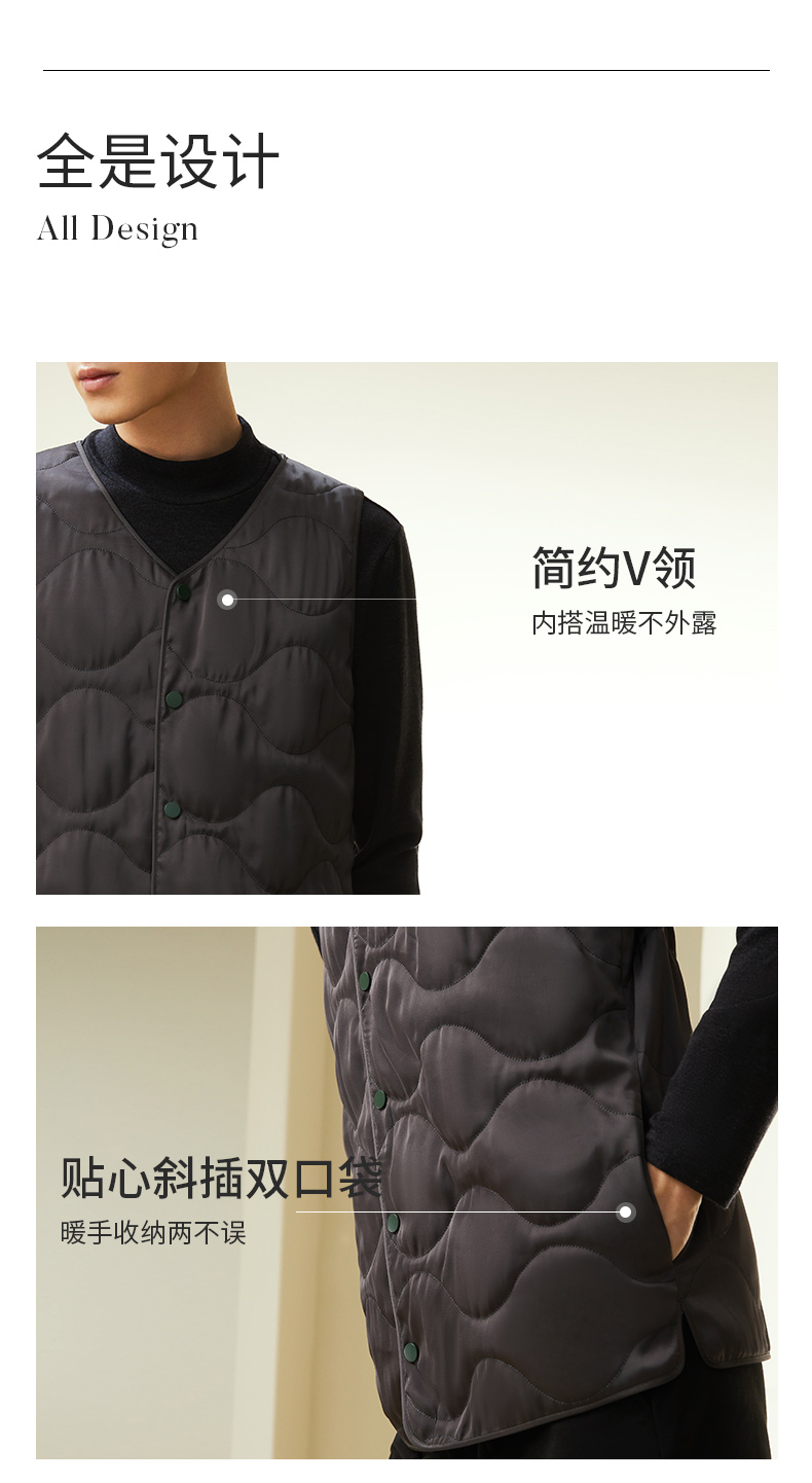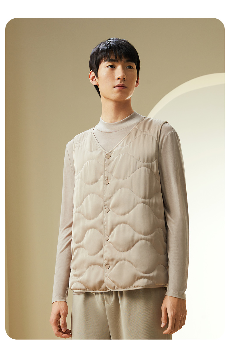 金三塔桑蚕丝填充保暖背心男简约v领舒适可外穿冬季马甲棉袄棉衣 NSMDD730