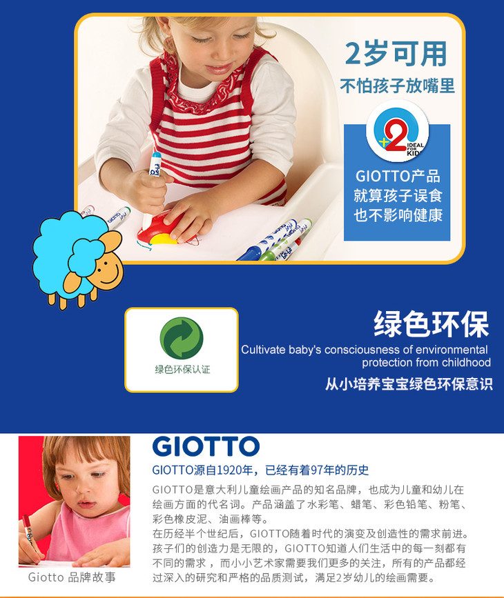 2. 意大利Giotto Bebe可水洗彩色笔 1盒