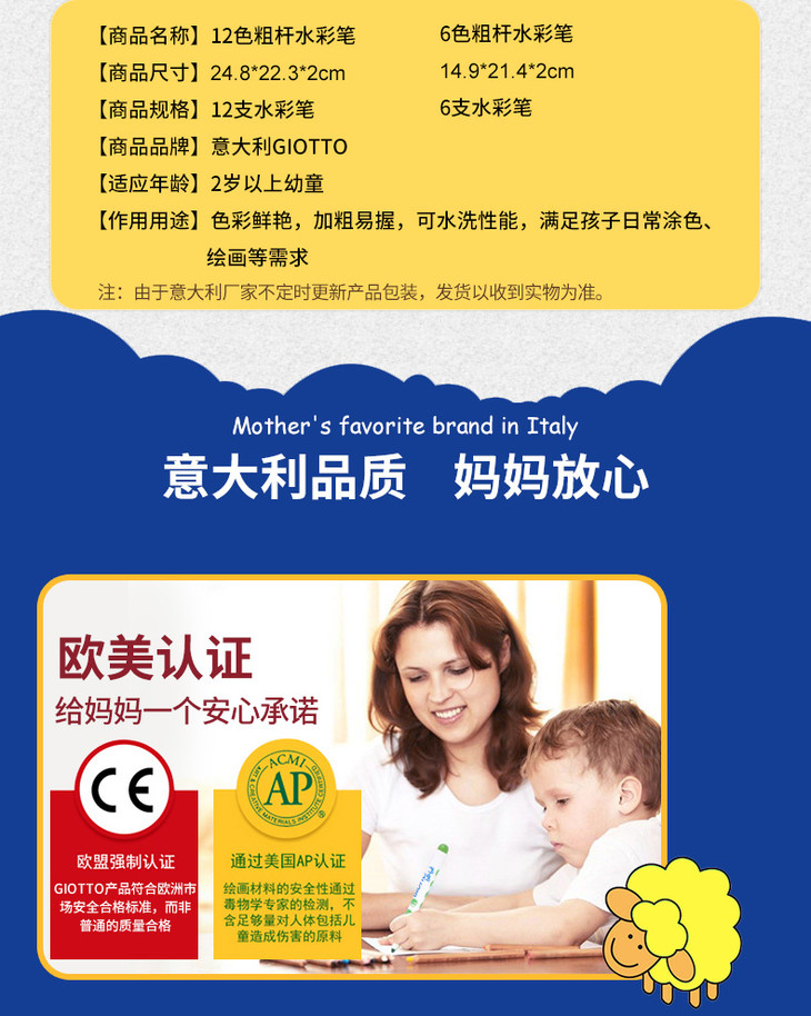 3. 意大利Giotto Bebe可水洗彩色笔 1盒