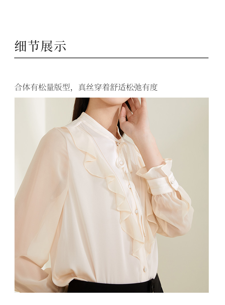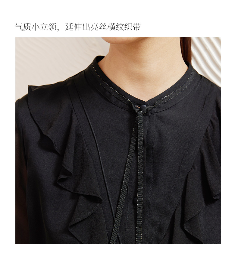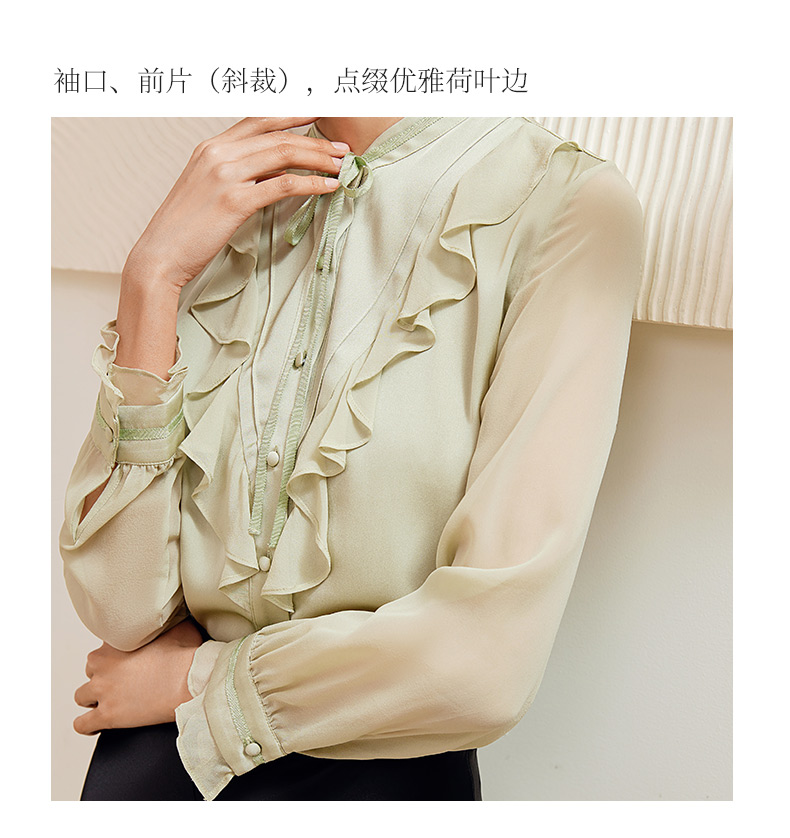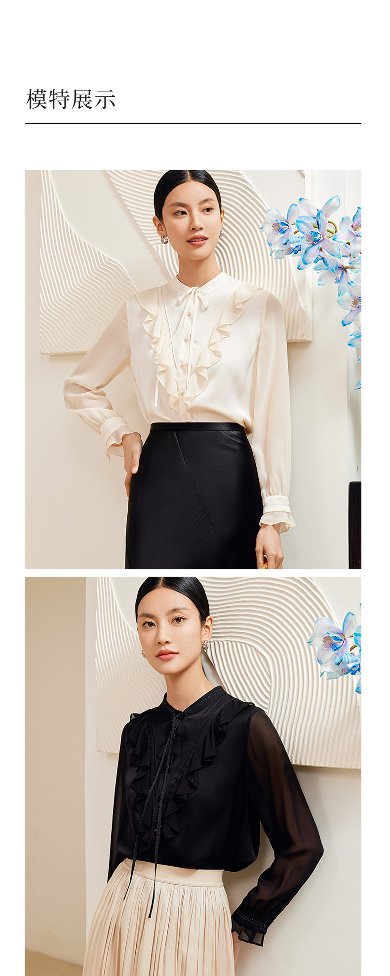玳莎荷叶边真丝衬衫桑蚕丝时尚气质百搭长袖女士衬衣 CA31307