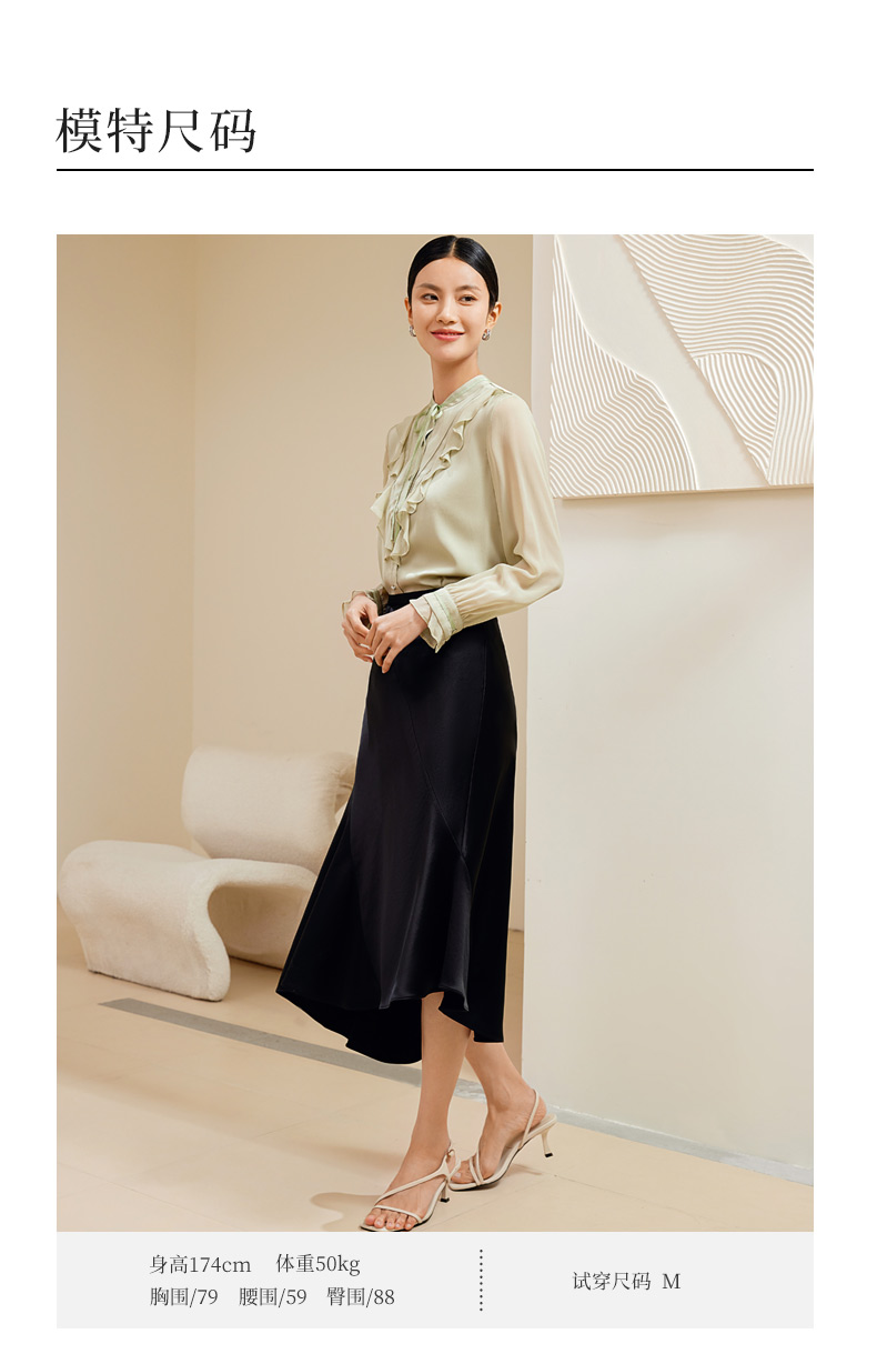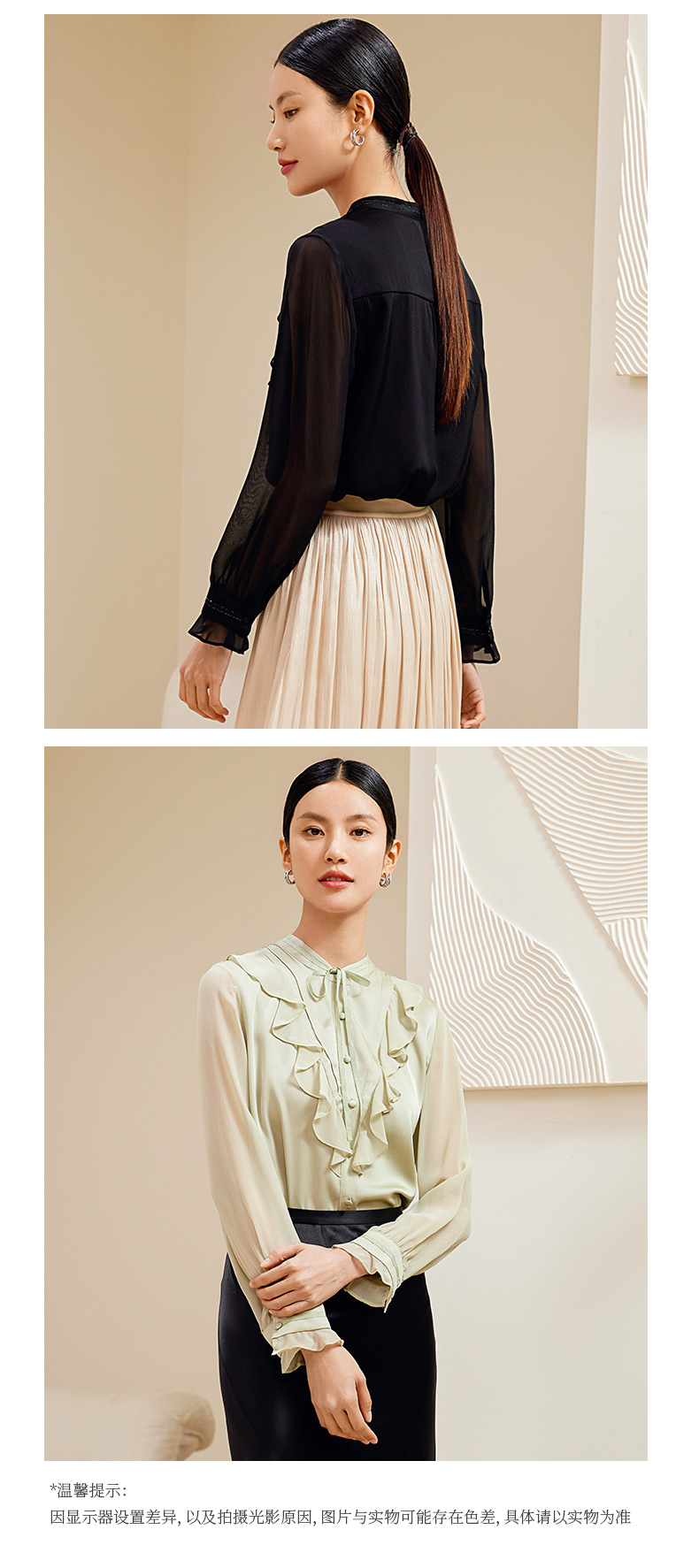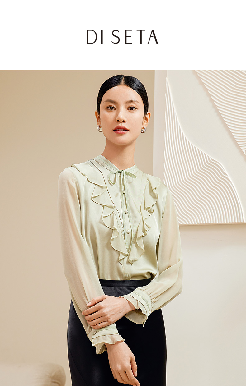 玳莎荷叶边真丝衬衫桑蚕丝时尚气质百搭长袖女士衬衣 CA31307