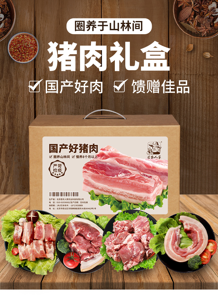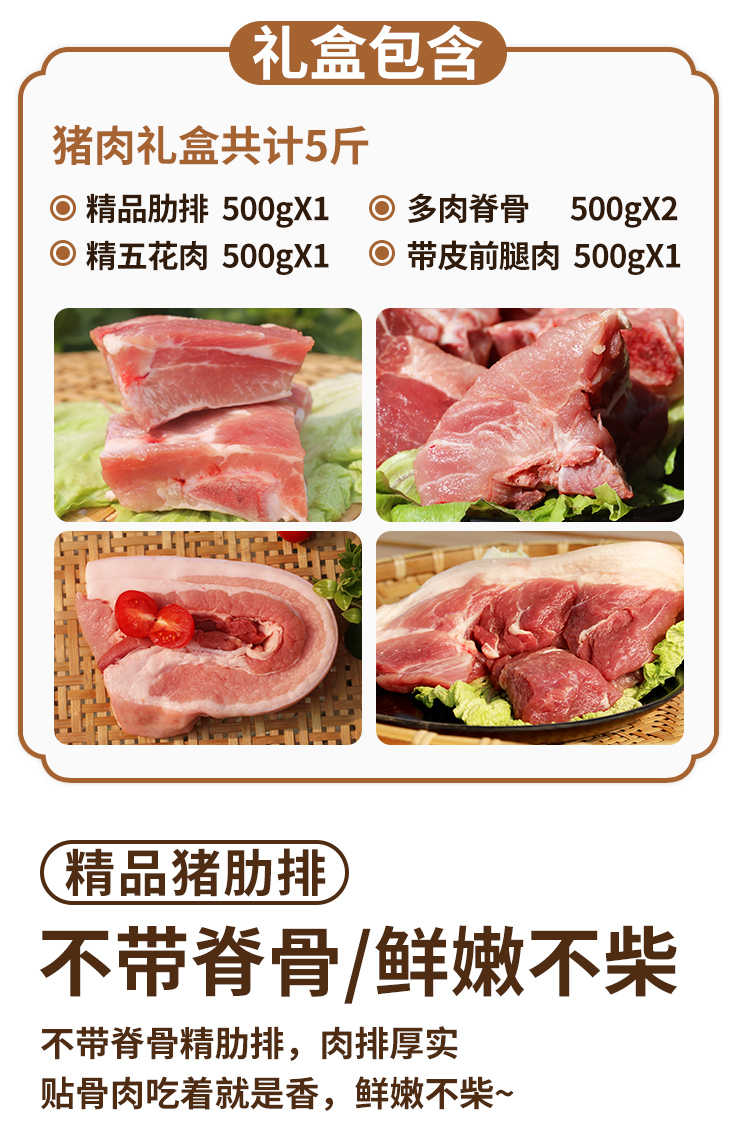 【元旦送礼必备】无抗慢养猪肉礼盒 猪肉肋排 腔骨五花肉前腿5斤 礼盒装 送人优选
