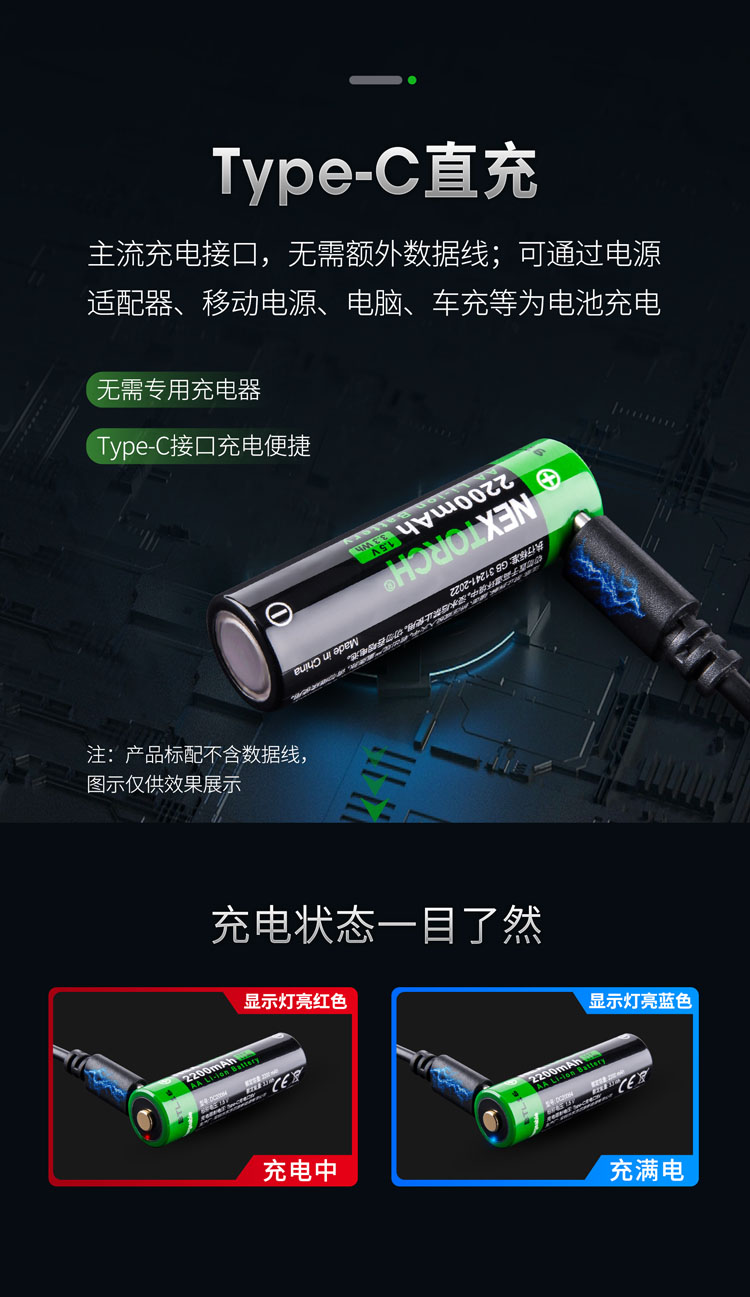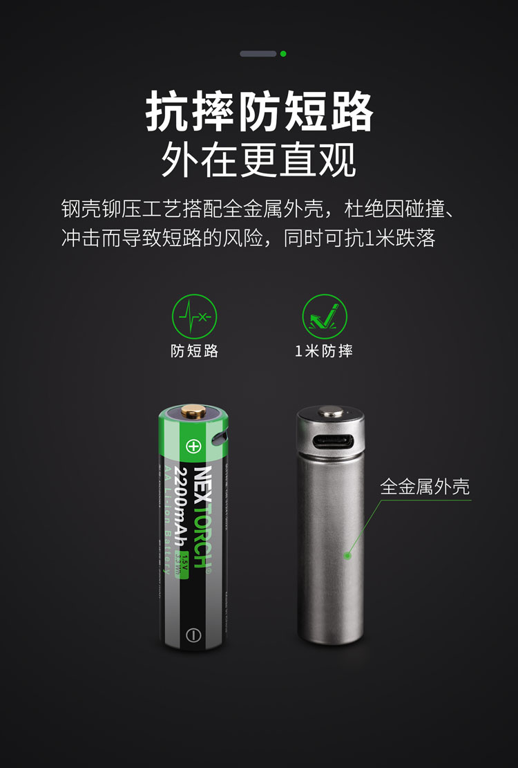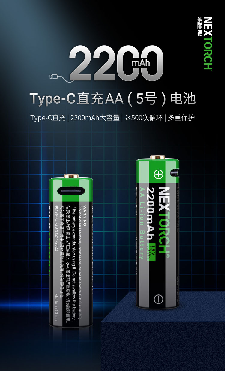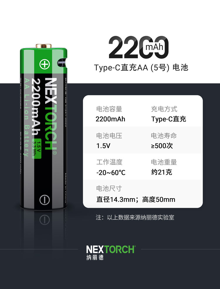 纳丽德 AA5号锂电池Type-C单充2200毫安可循环使用