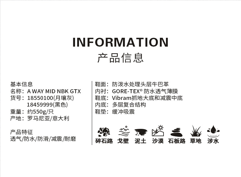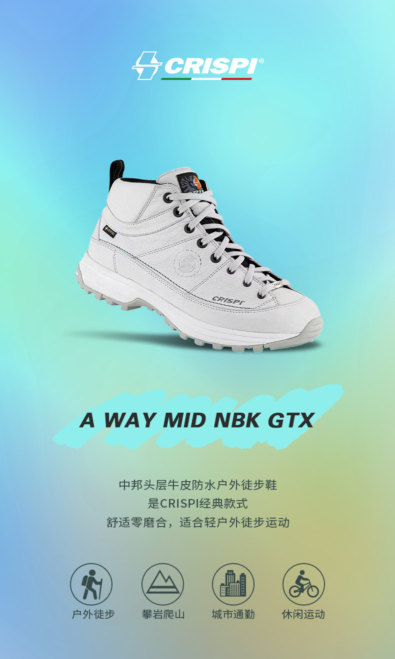 CRISPI意大利春秋户外防水耐磨透气徒步登山鞋靴女A Way Mid NBK GTX 18550100