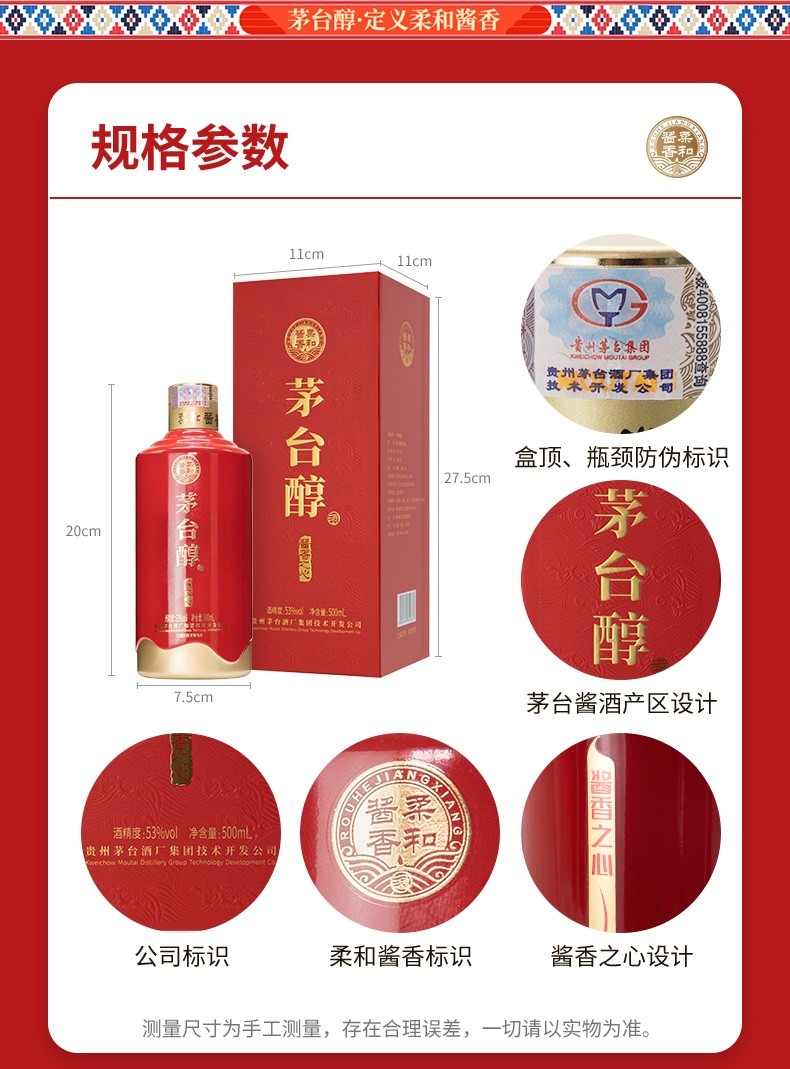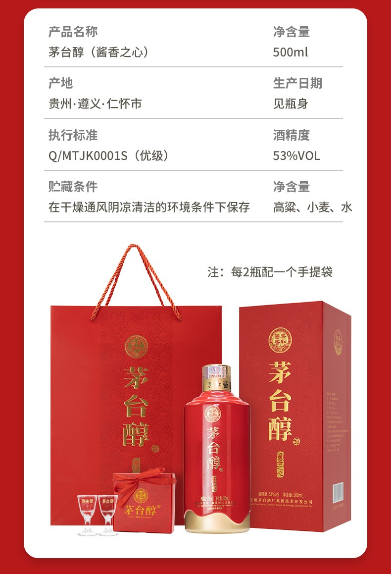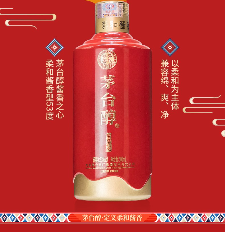 茅台醇 酱香之心 53度 500ml 酱香型白酒 送礼 宴请 收藏 接待 送亲友长辈必备好酒