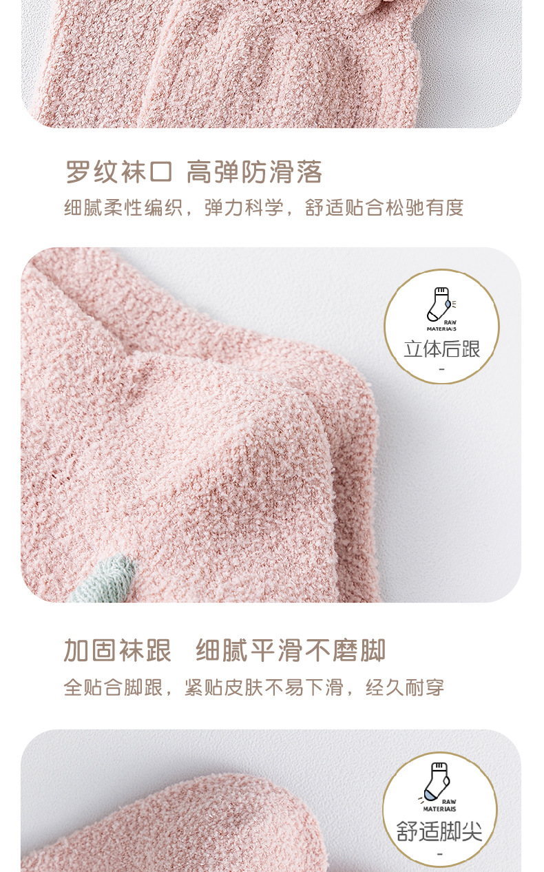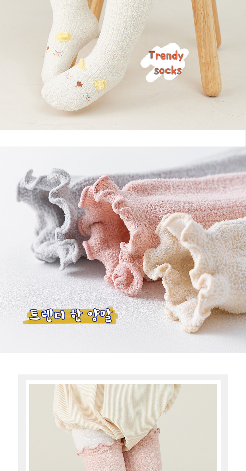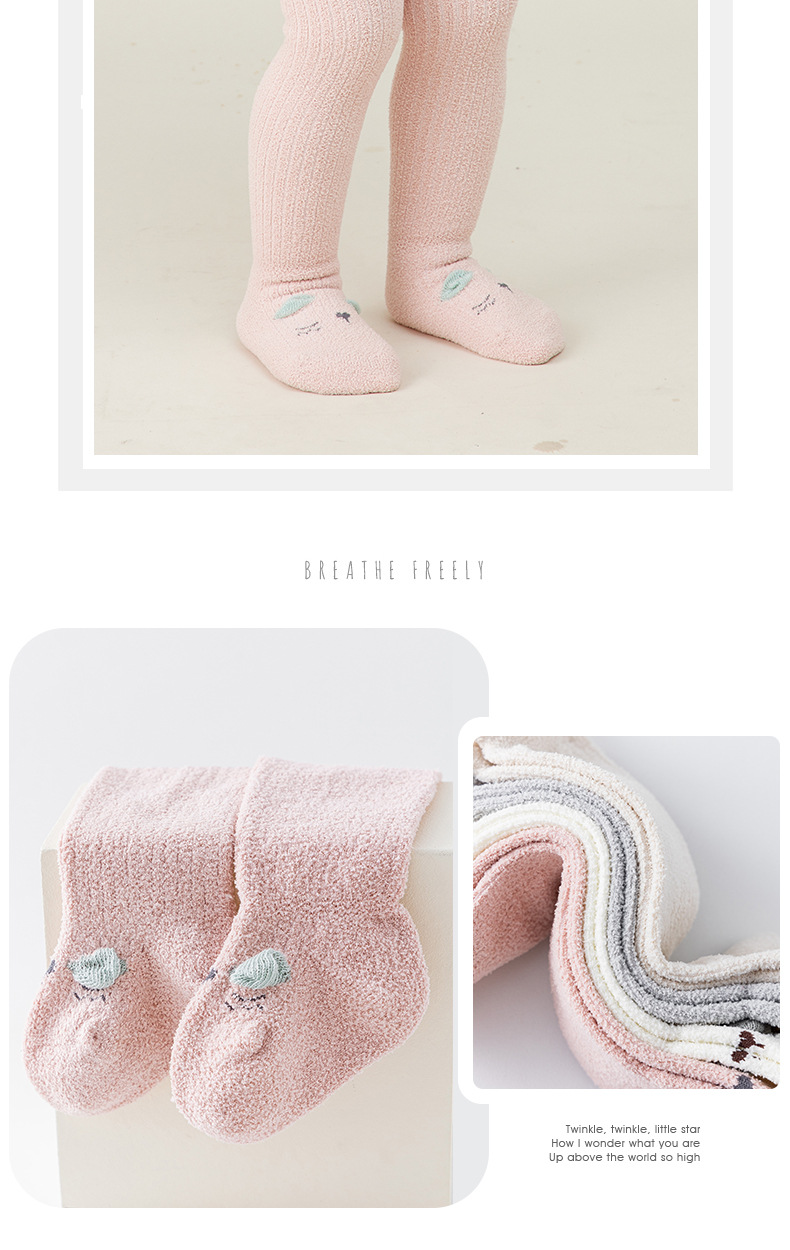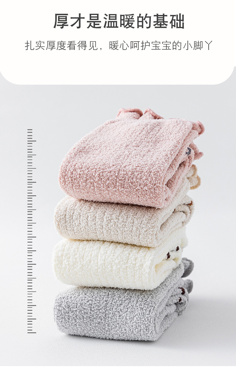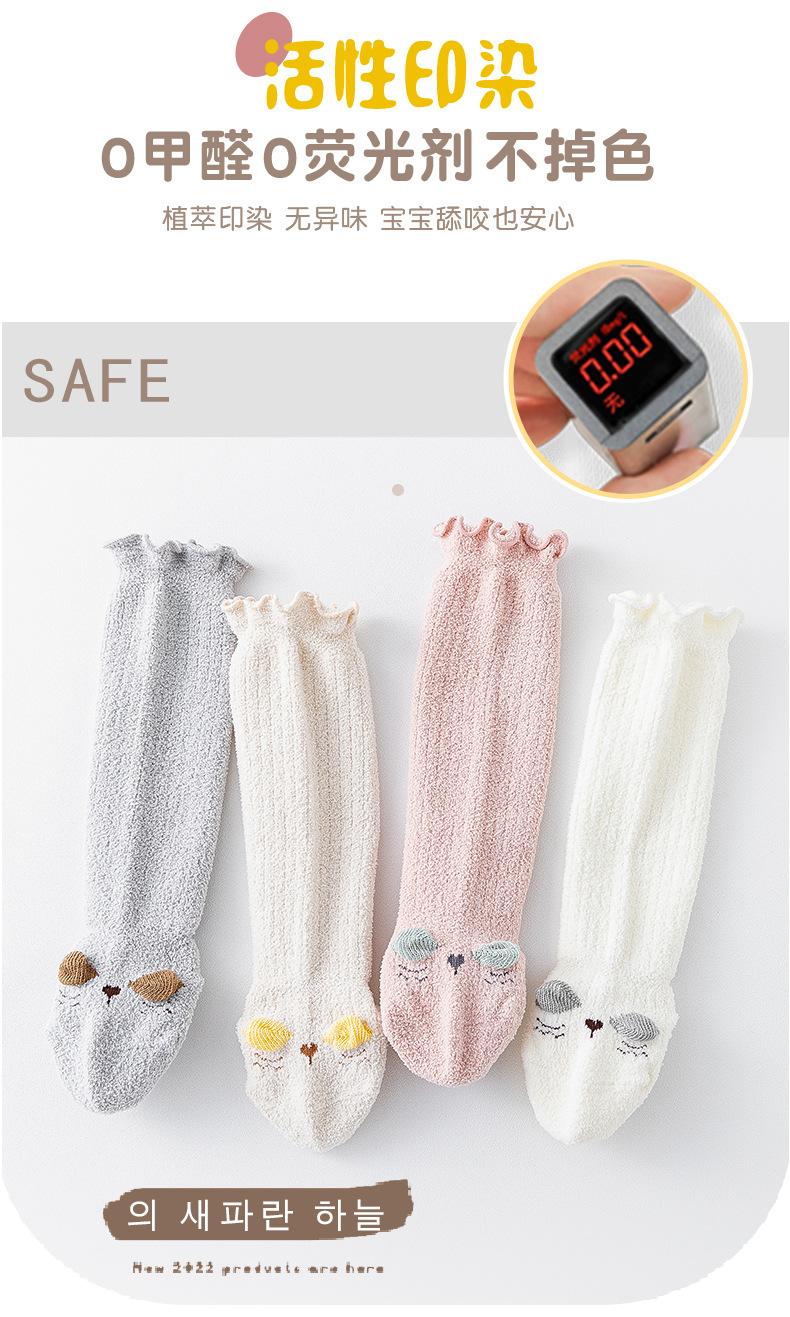 【2双装 蓄热毛圈 加厚加绒过膝袜】秋冬珊瑚绒加厚婴儿长筒袜木耳边松口宝宝袜子男女a类新生儿