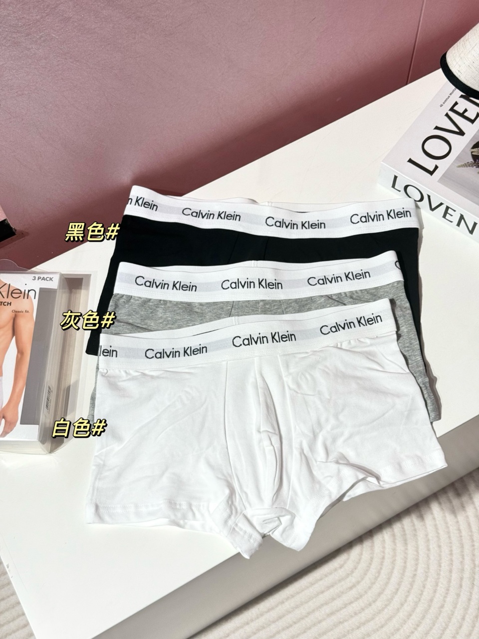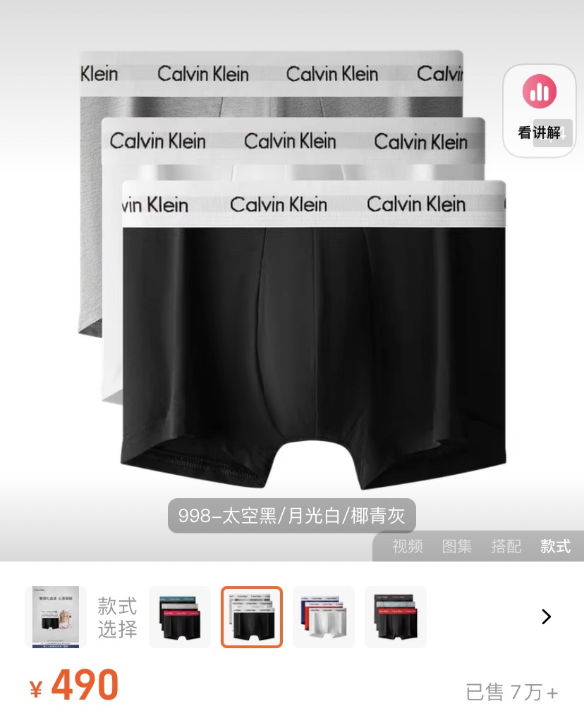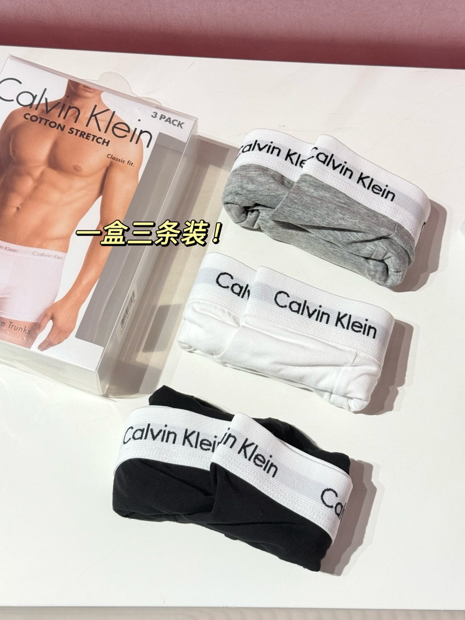 C*K |男士四角内裤来了哈,一盒三条装的,在售同步,7W+的销量!爆款推荐哈!一盒将近五百,经典黑白灰,日常最实穿的颜色。代工厂直出哈,全Y的❗品质拉满,全套包装的,自留送人都OK!贴身物品必须经常换哈,呵护家人健康!咱的价格多囤两盒也不心疼,柜子一盒500块了,和咱们的没有丝毫区别。这款腰身位置是松紧logo织带工艺的,很有辨识度,舒适贴合没有紧绷感,不挑年龄的,给家里人安排起来吧!