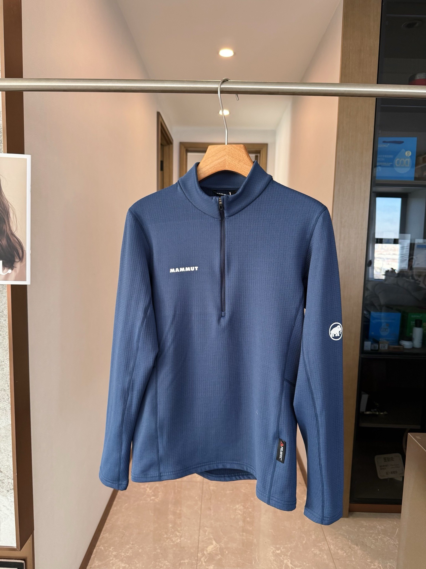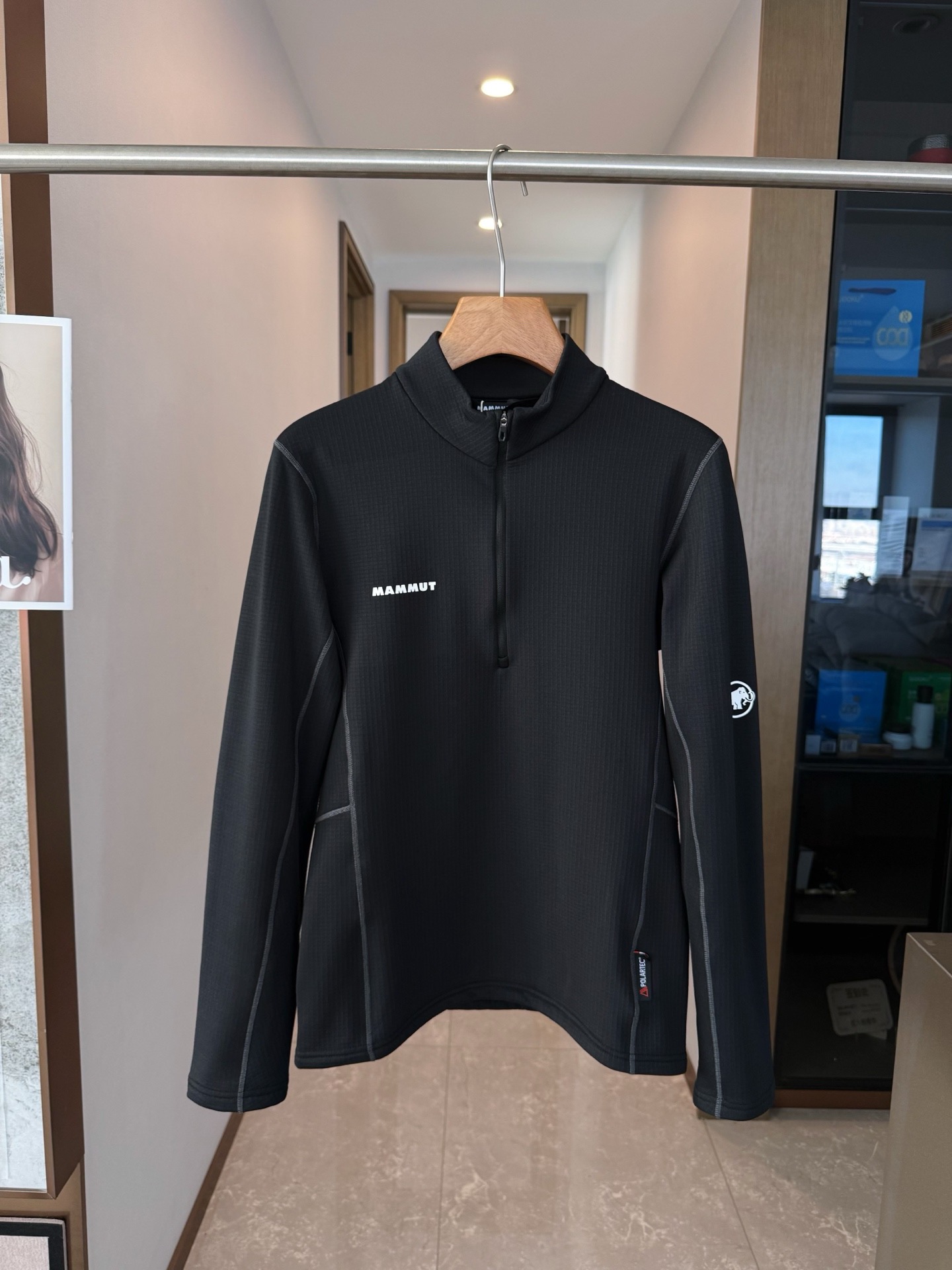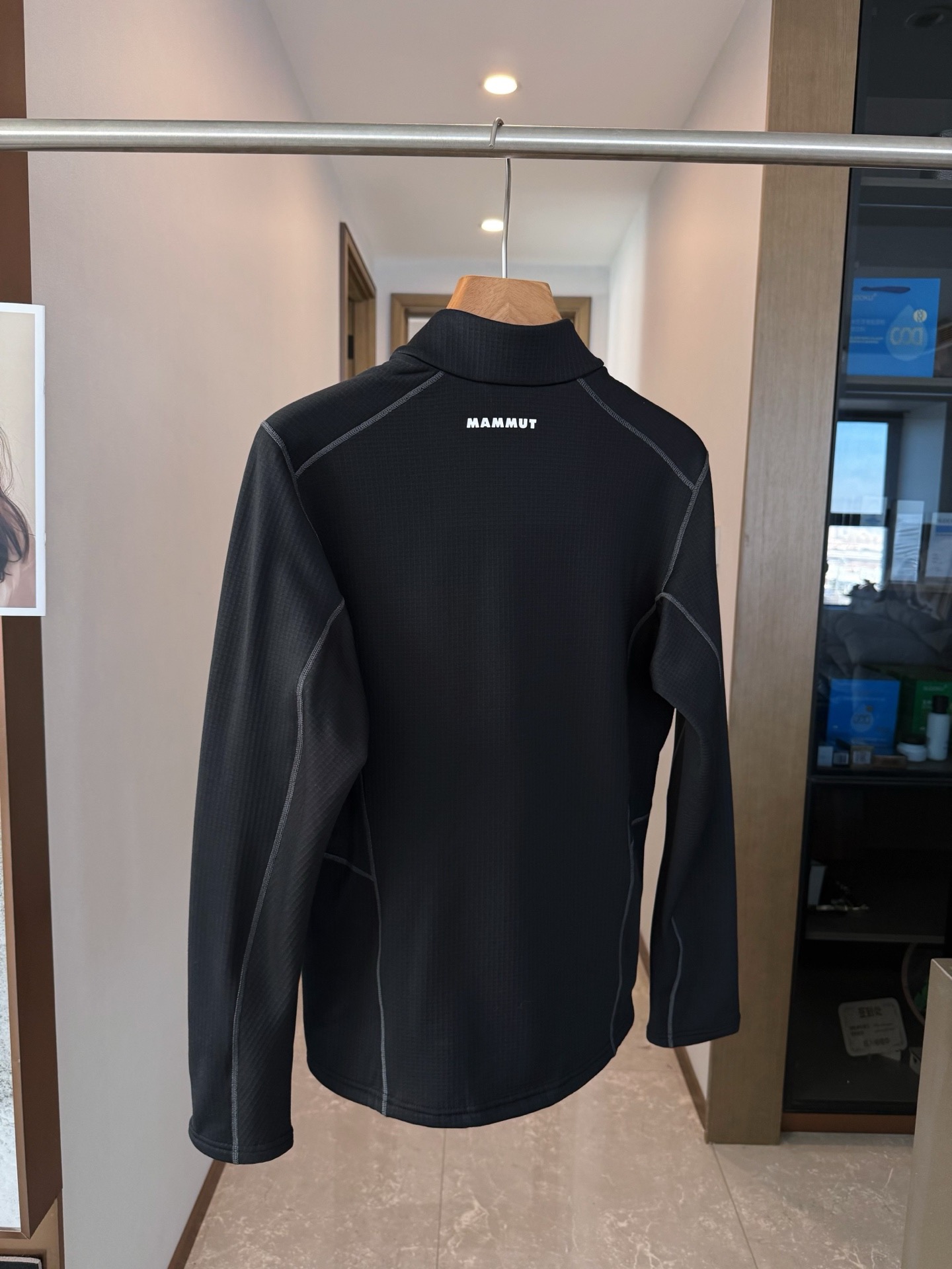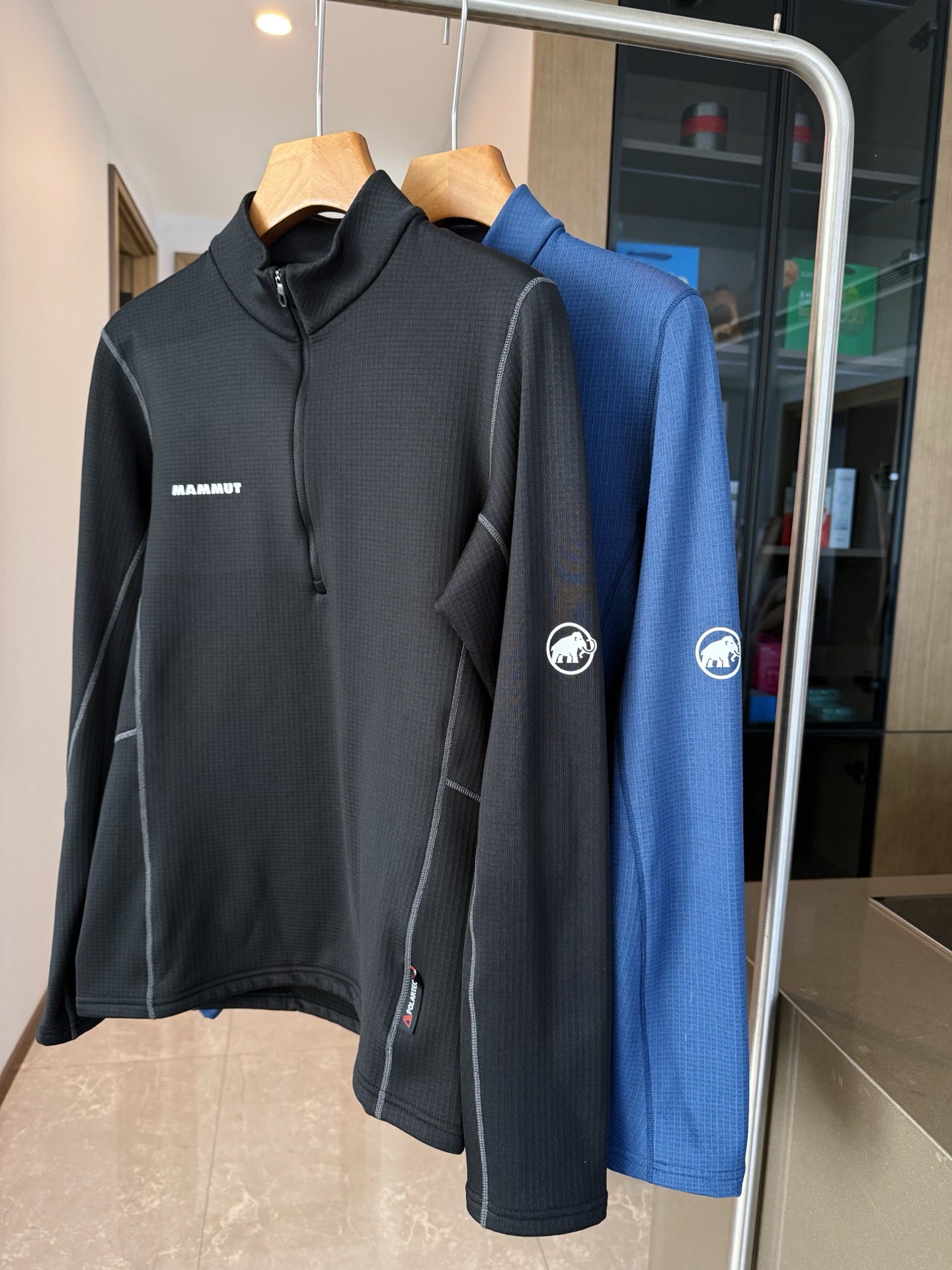 半拉链的设计干练利落,又不失时髦,尤其是它的领子恰到好处的修饰脖颈比例,户外防钻风。腋下也是分片剪裁的,大幅度运动没有束缚感!太赞!采用三针五线迹拼缝,双面绷缝平整结实不易炸线。客订YKK定制拉链门襟开合很顺滑,带有印花logo,很有辨识度!