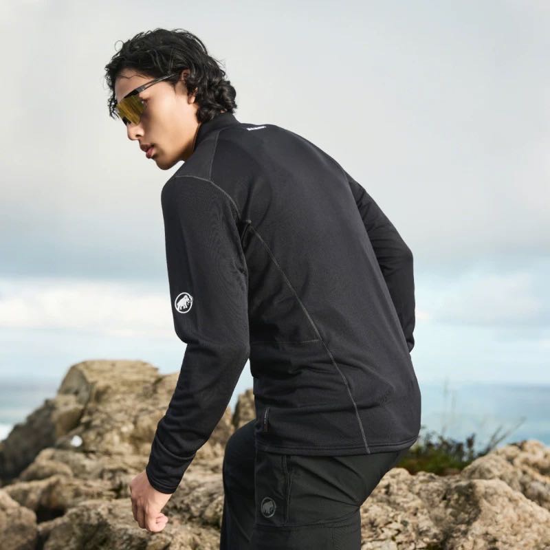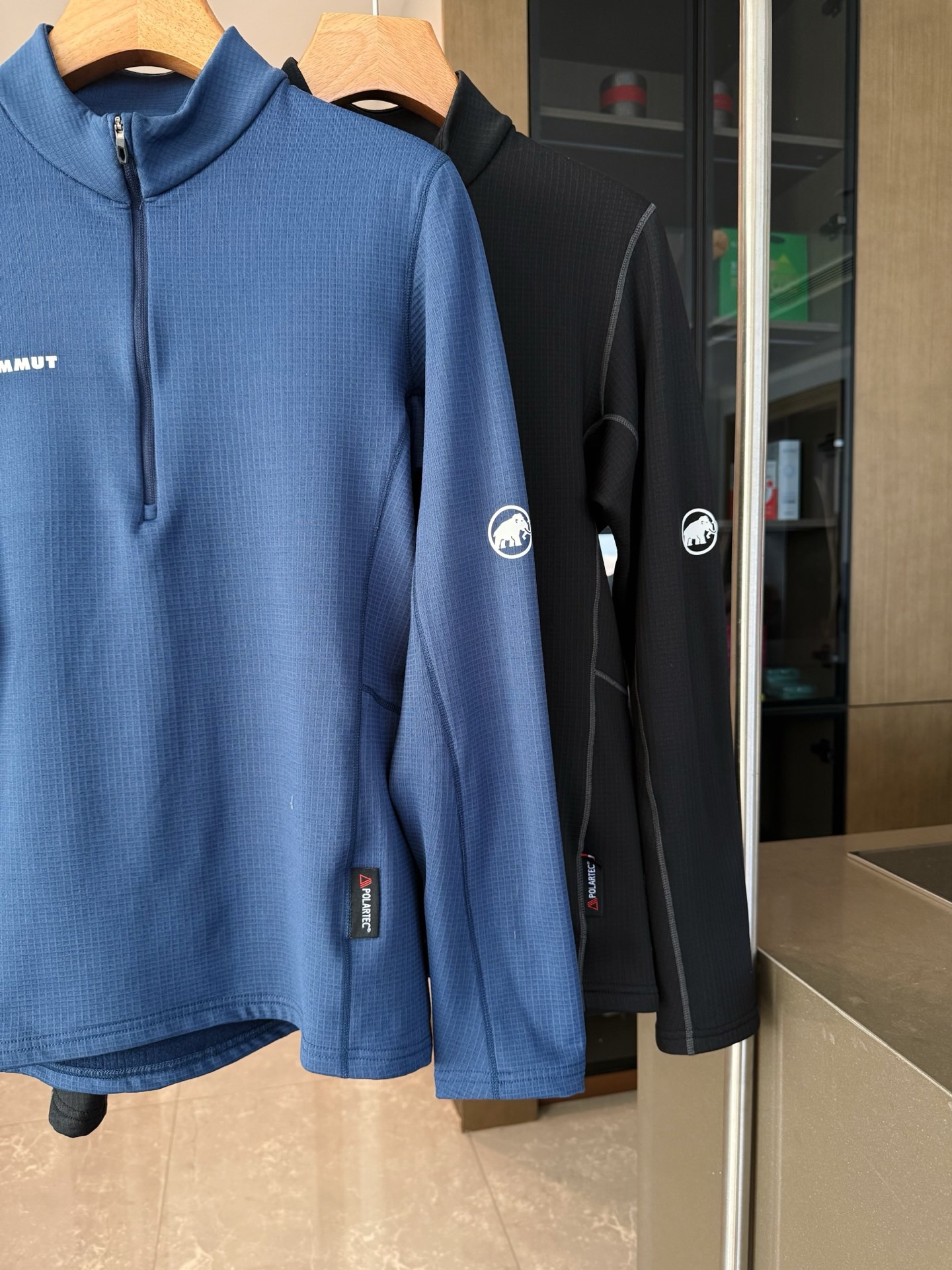 大象🐘Aenergy男士户外吸湿速干排汗半拉链舒适骑行长袖T恤,采用轻量高弹的Polartec®Power Grid™M易于穿脱且面料,提升穿着舒适度,前襟半拉链设计,可快速通风!专为全年登山运动和滑雪旅行设计的半拉链套头长袖,具备吸湿速干排汗且透汽性能!
